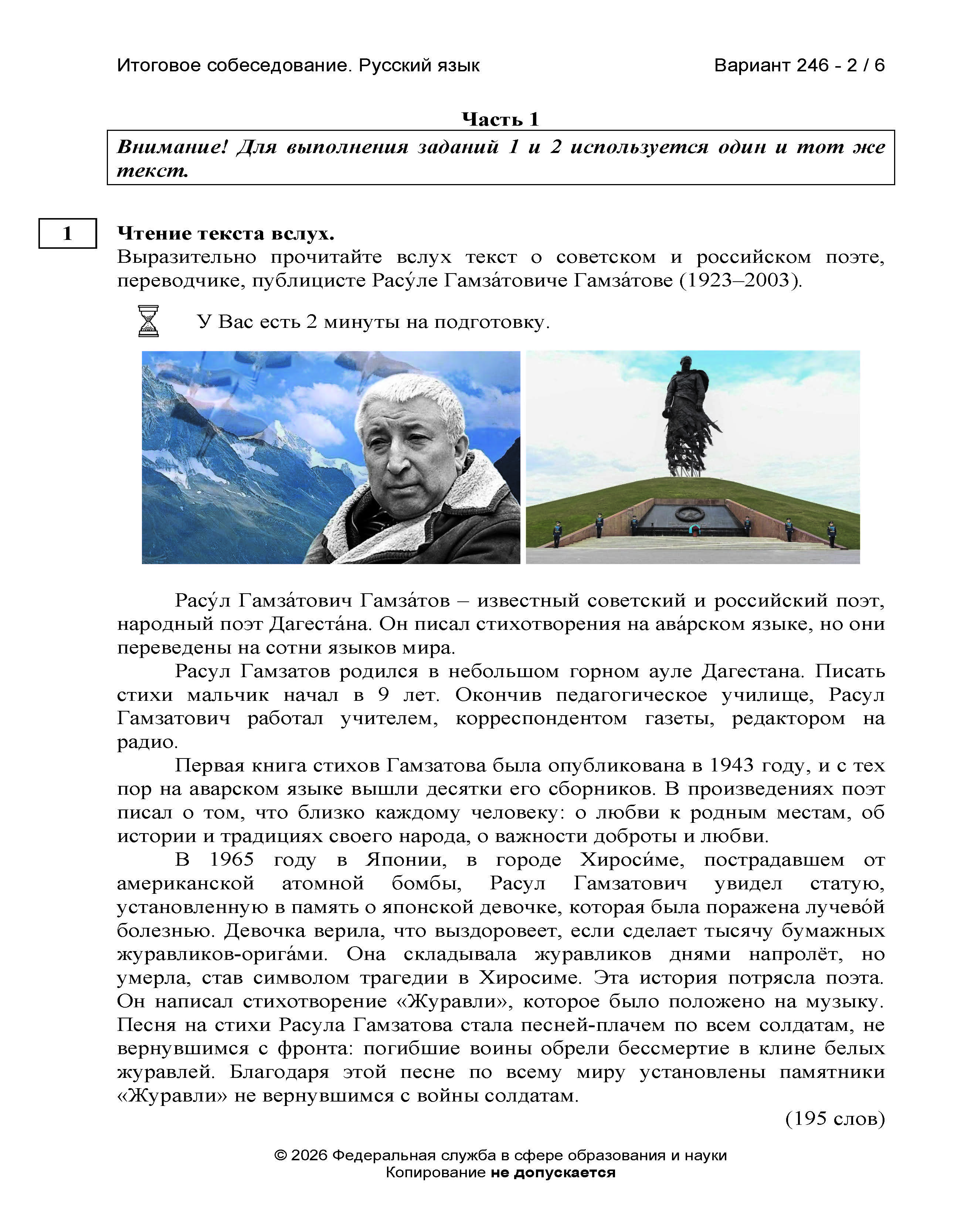 • Официальные (реальные) варианты итогового собеседования, которые были у учеников 11 февраля 2026 года