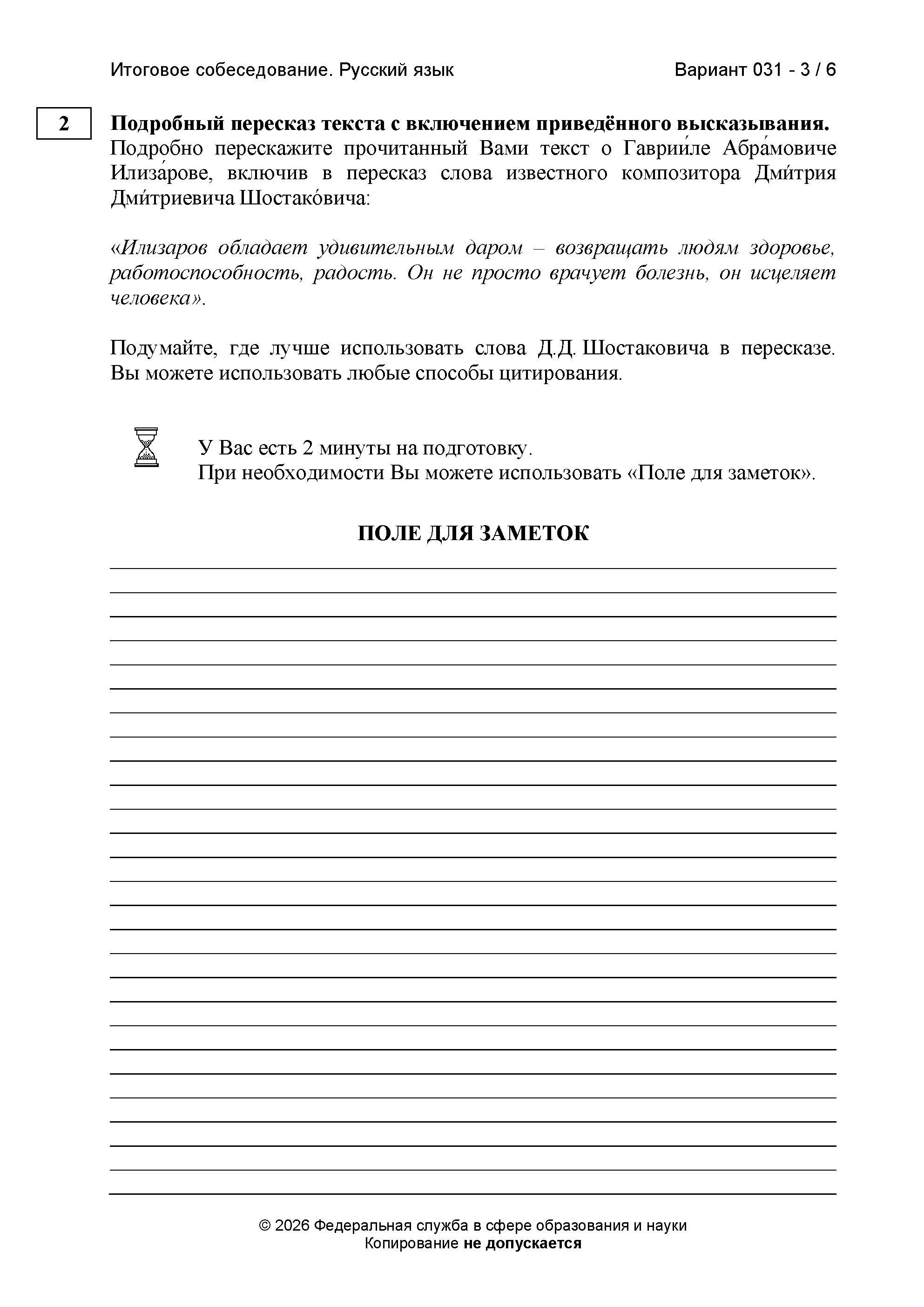 Итоговое (устное) собеседование 11 февраля 2026. Часовая зона МСК+7 (задания и ответы)