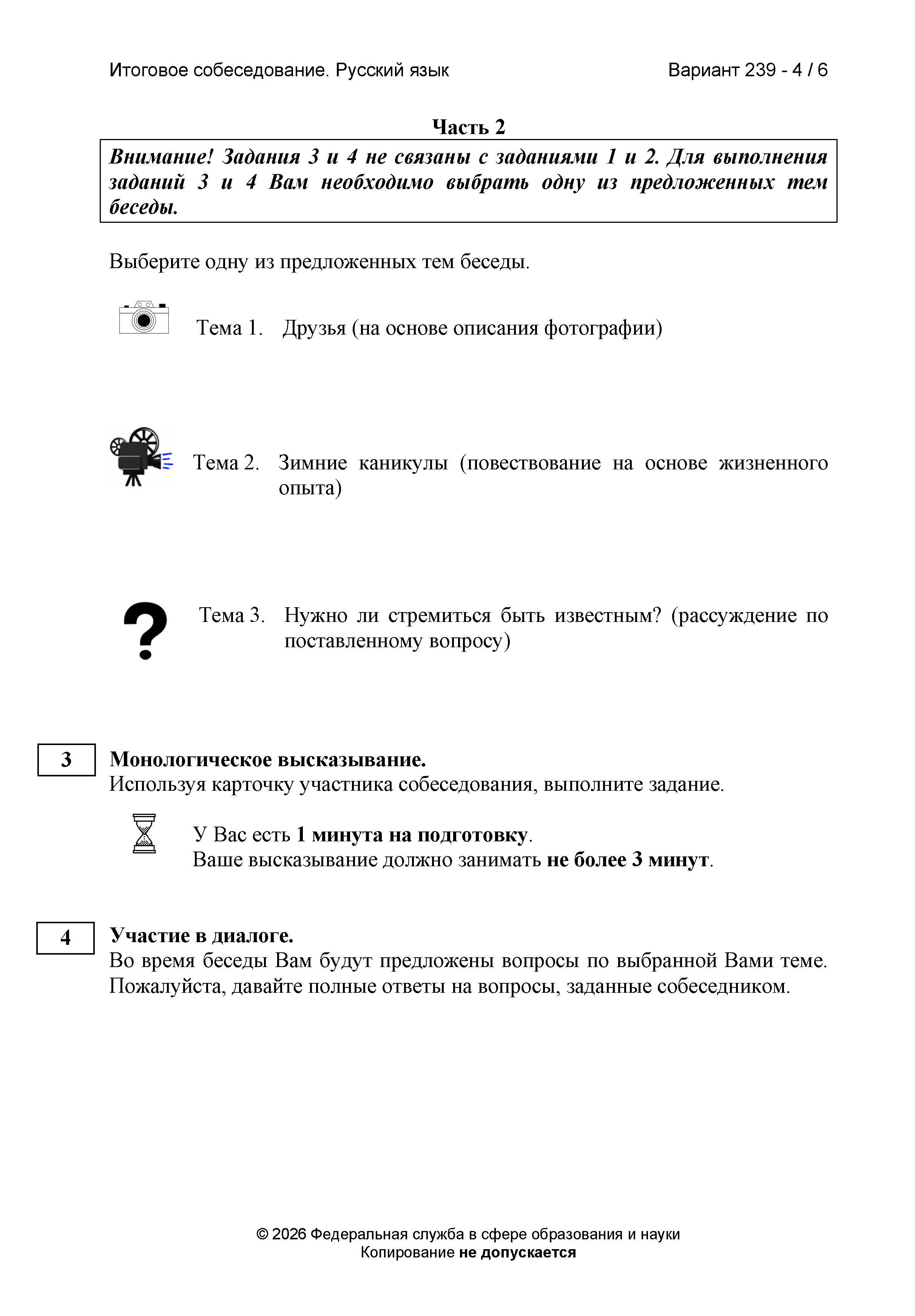 • Официальные (реальные) варианты итогового собеседования, которые были у учеников 11 февраля 2026 года