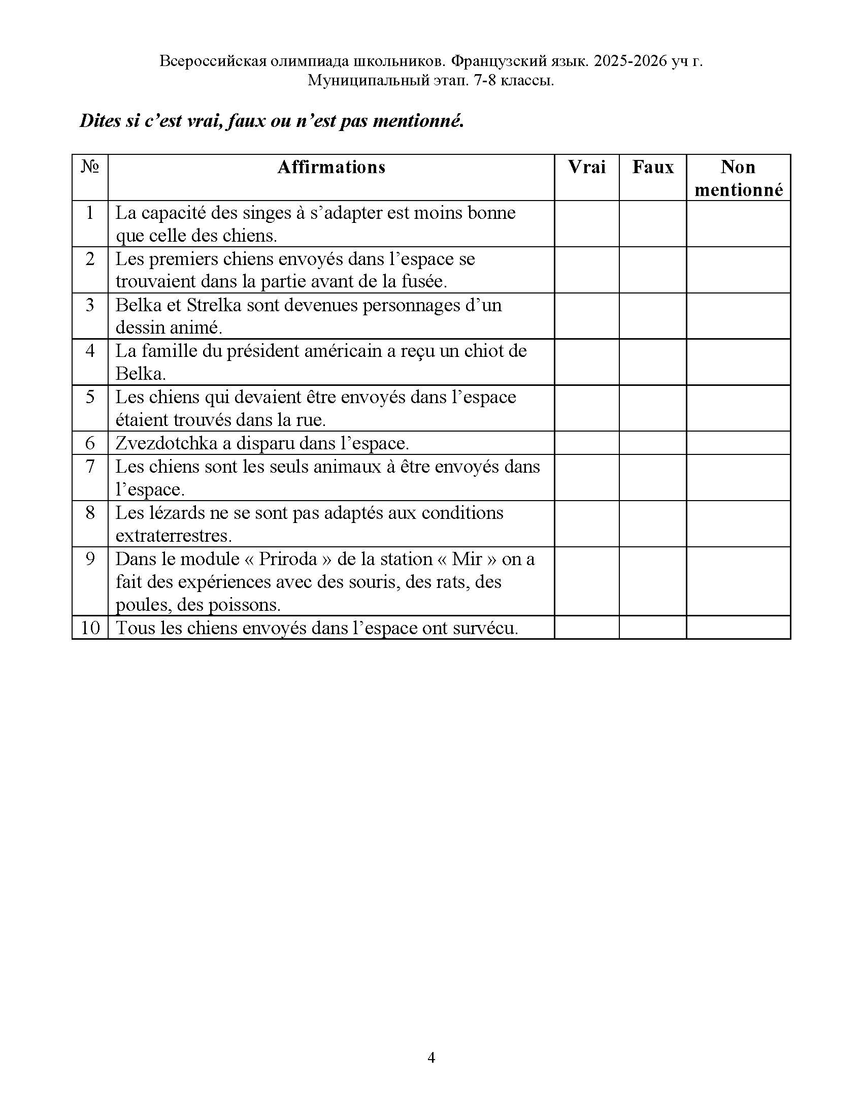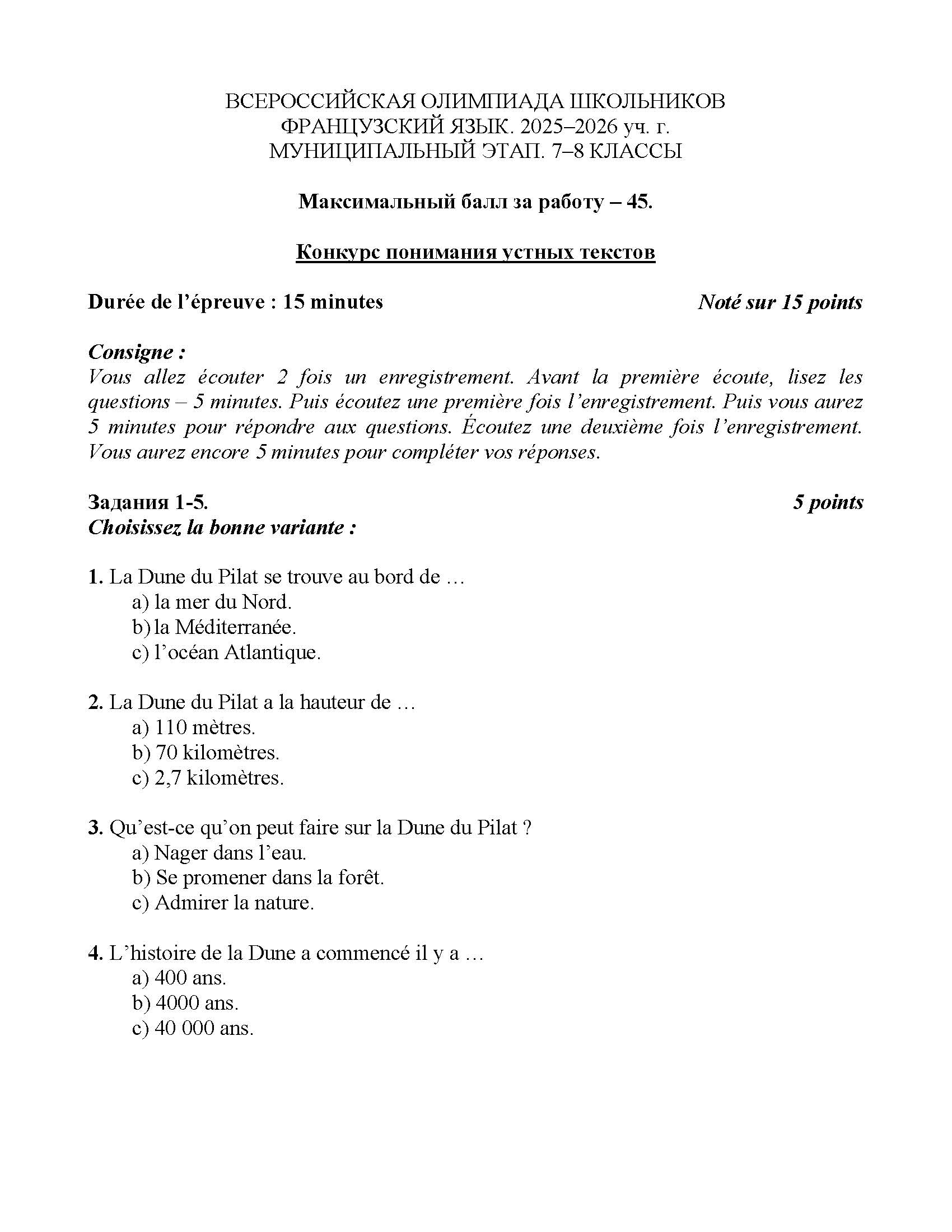 Задания, ответы и решения на этой страницы предоставлены в ознакомительных целях и лишь показывают специфику и структуру олимпиады по Французскому языку. Вы можете использоваться ими как тренажёром для подготовки к предстоящей олимпиаде. Тренируйся, участвуй и побеждай!