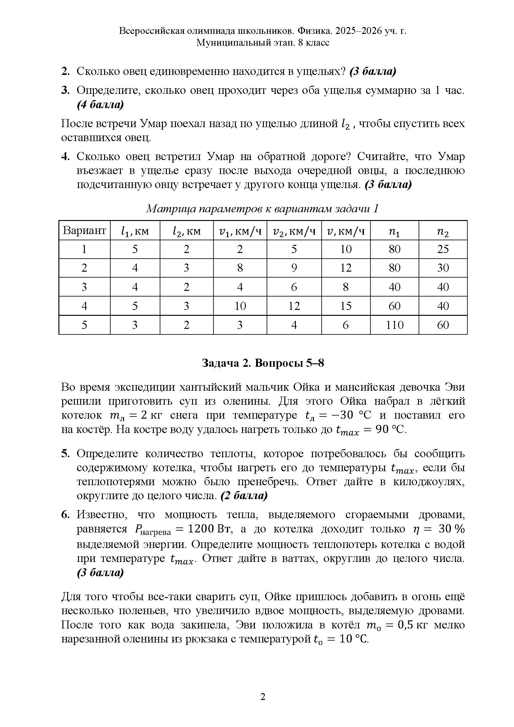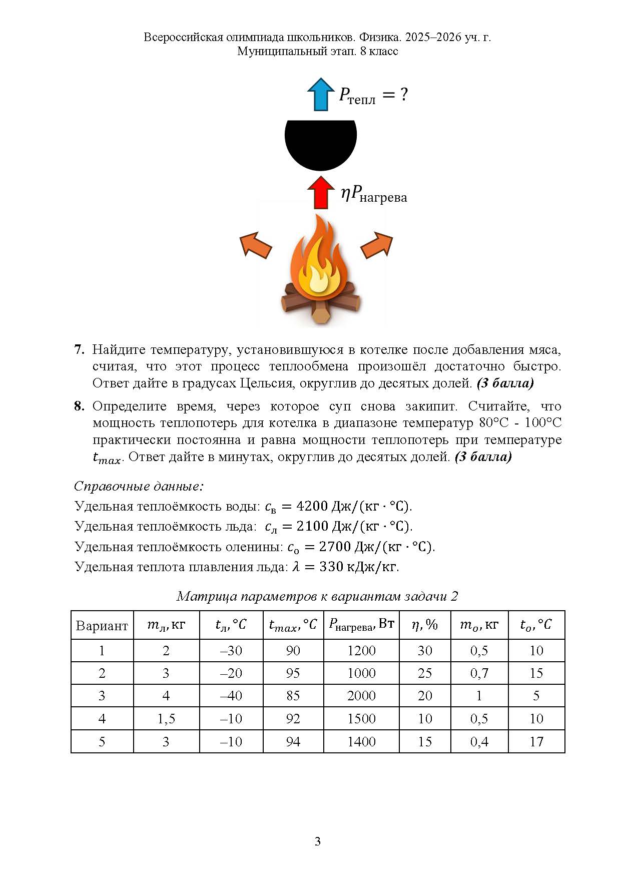 Всероссийская олимпиада школьников (ВсОШ) муниципального этапа по Физике. Официальные задания, ответы и решения для 8 (восьмого) класса (задания и ответы)