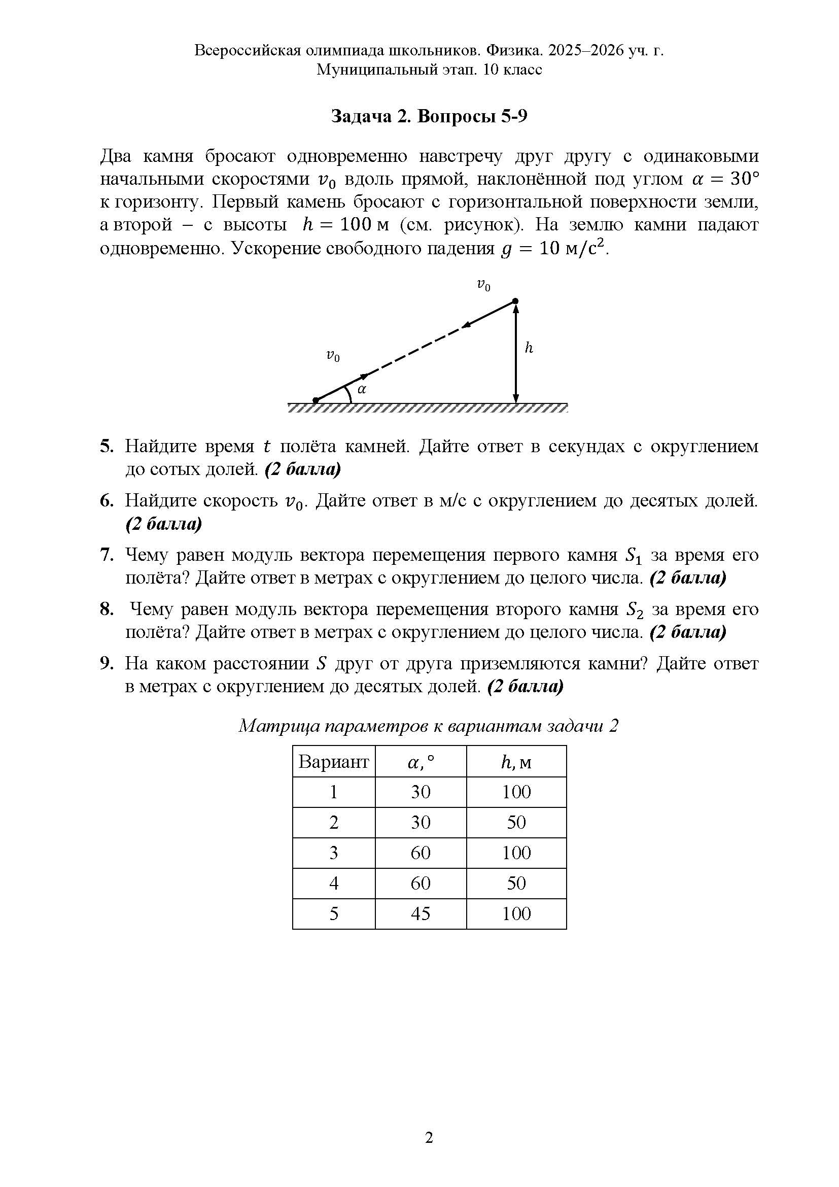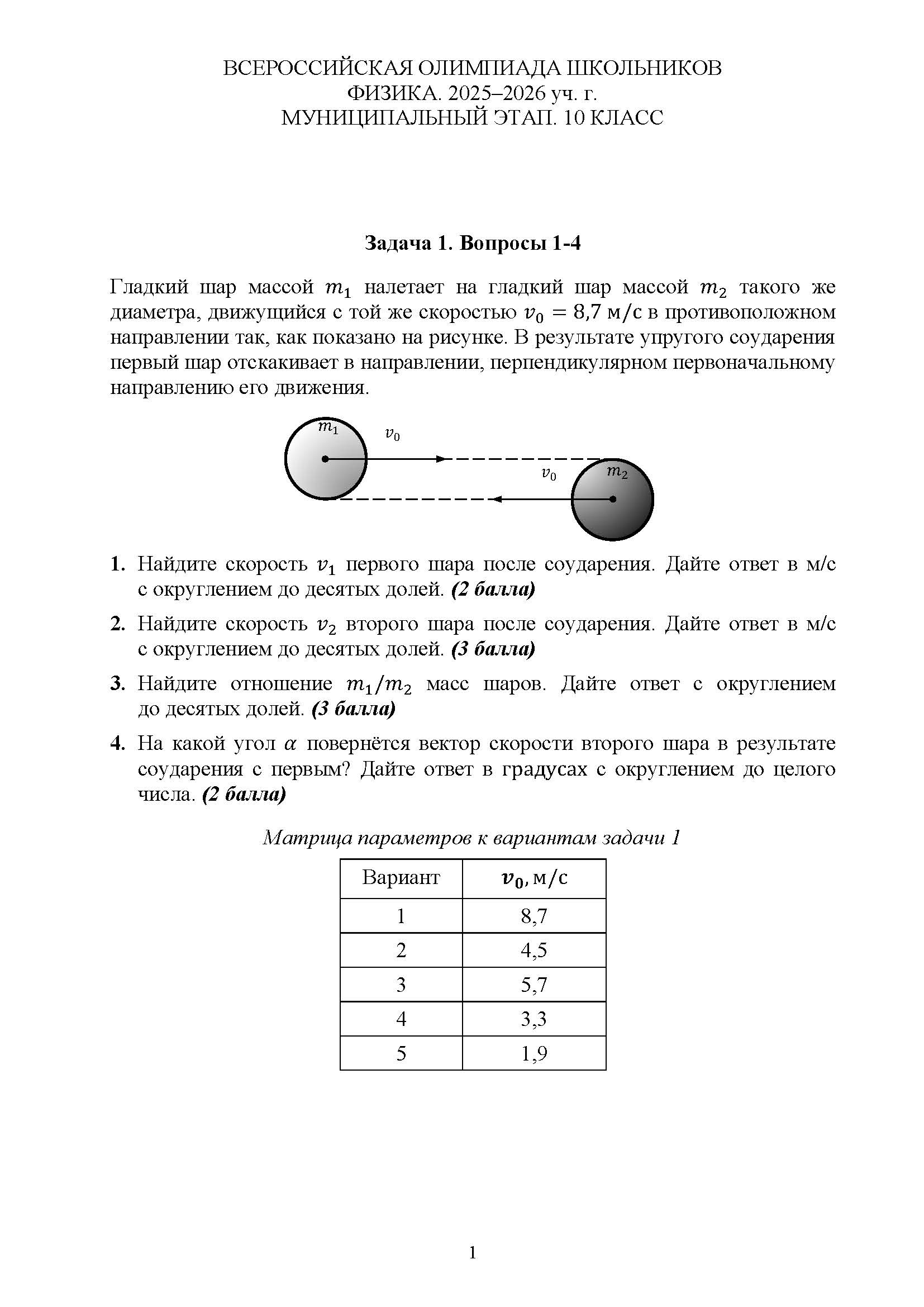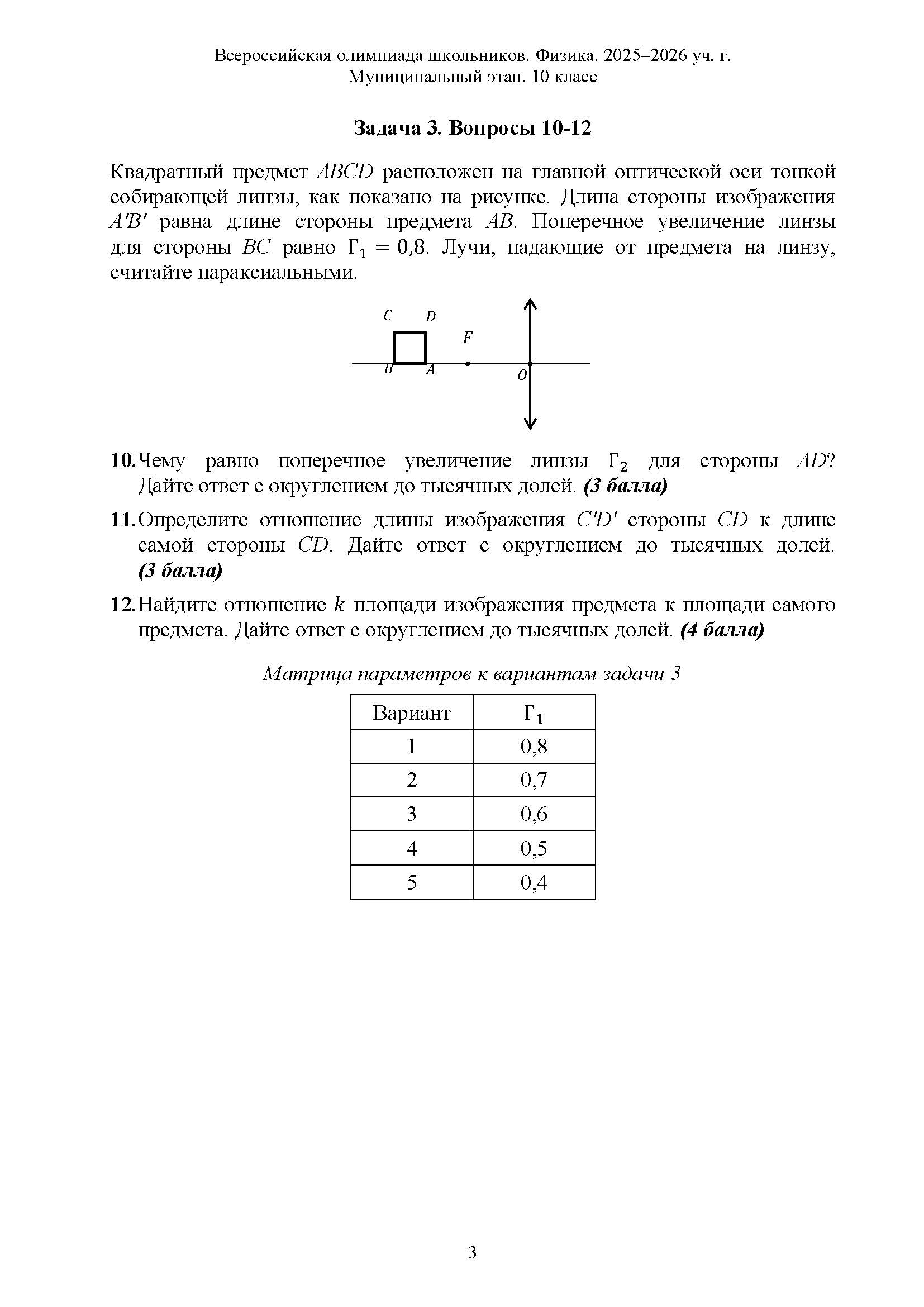 Всероссийская олимпиада школьников (ВсОШ) муниципального этапа по Физике. Официальные задания, ответы и решения для 10 (десятого) класса (задания и ответы)