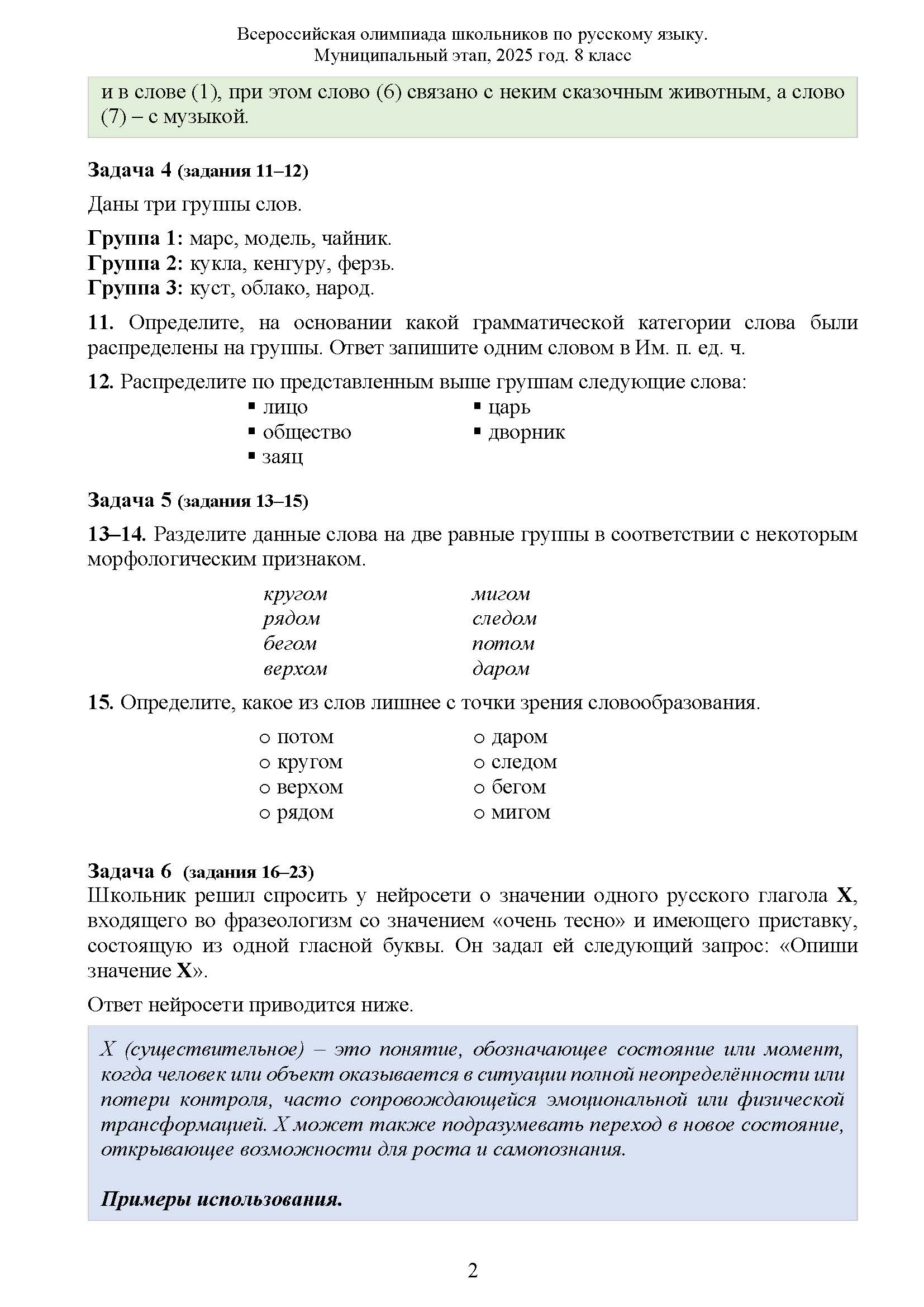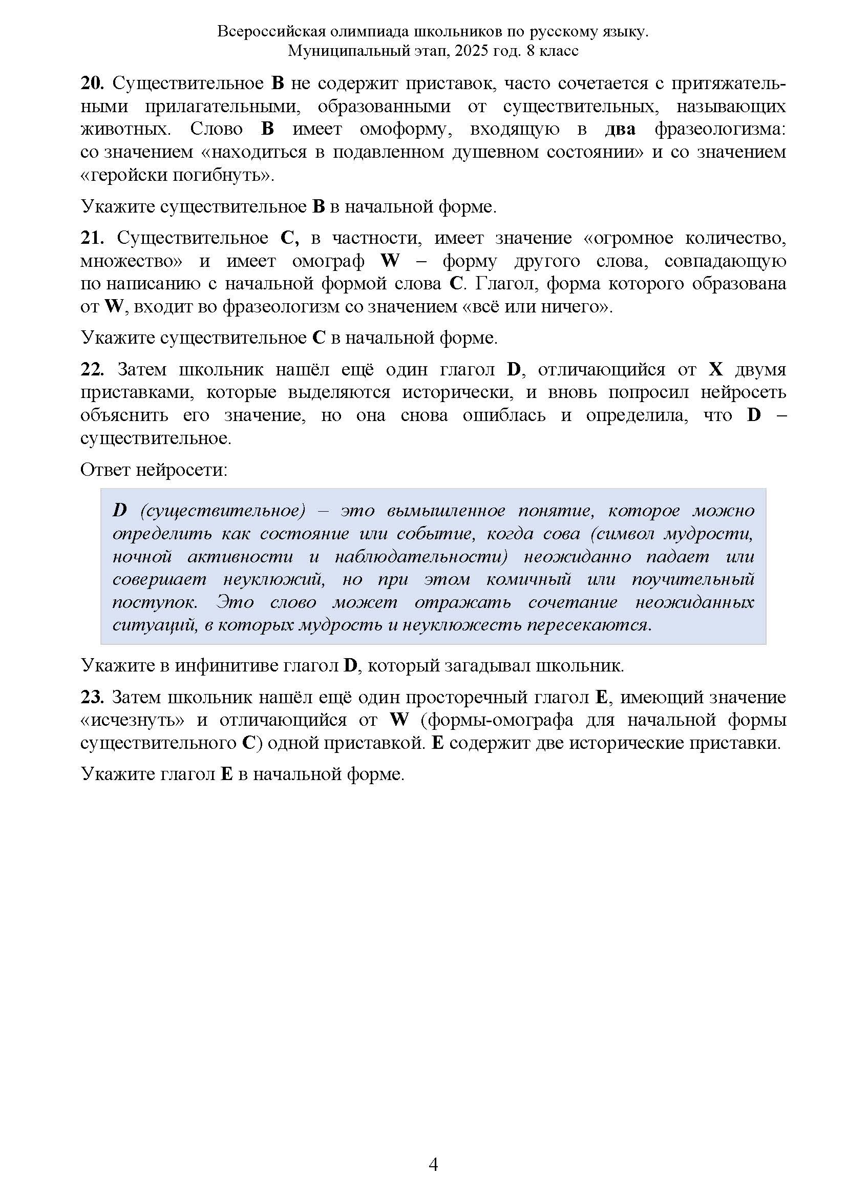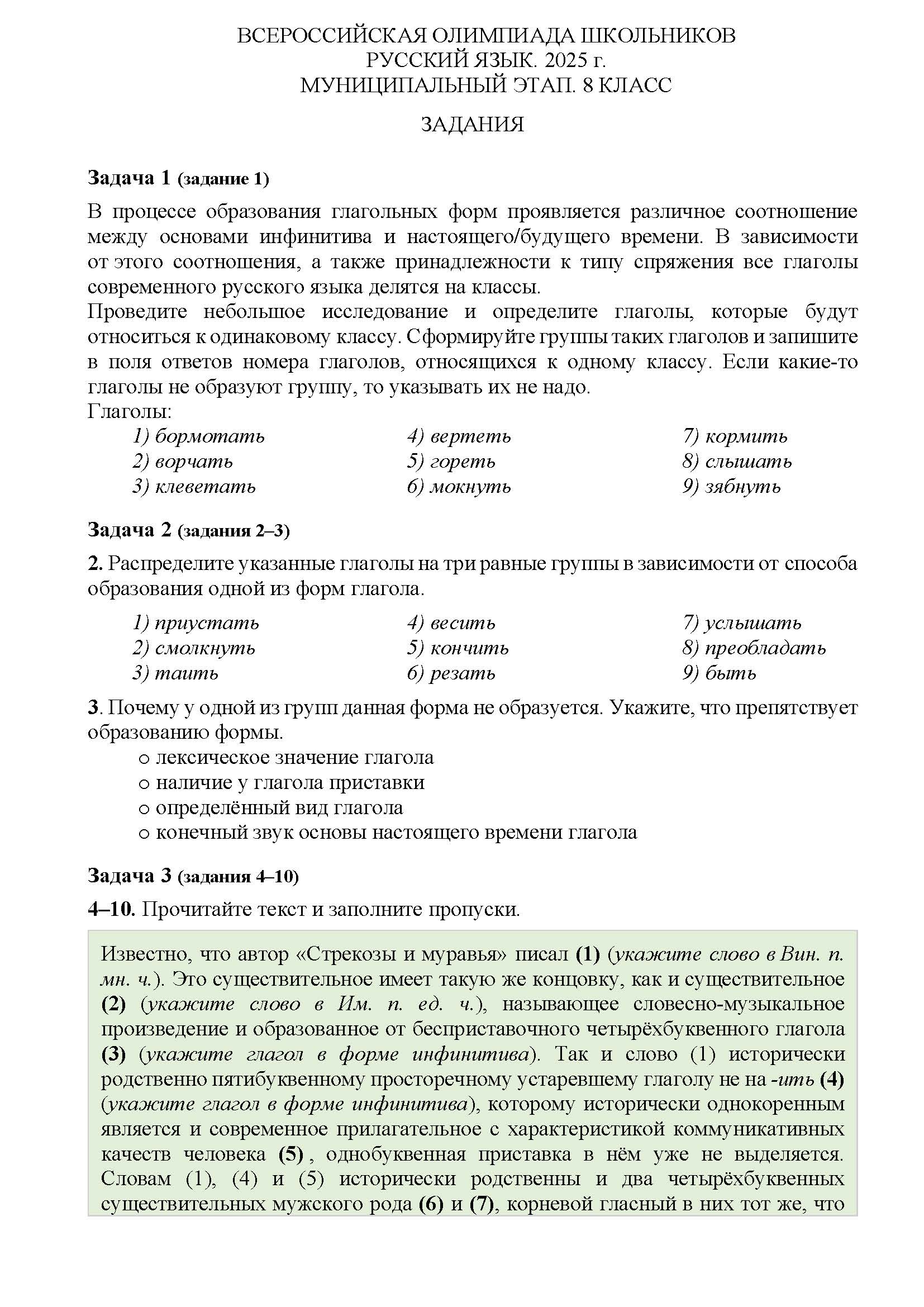 Задания, ответы и решения на этой страницы предоставлены в ознакомительных целях и лишь показывают специфику и структуру олимпиады по Русскому языку. Вы можете использоваться ими как тренажёром для подготовки к предстоящей олимпиаде. Тренируйся, участвуй и побеждай!