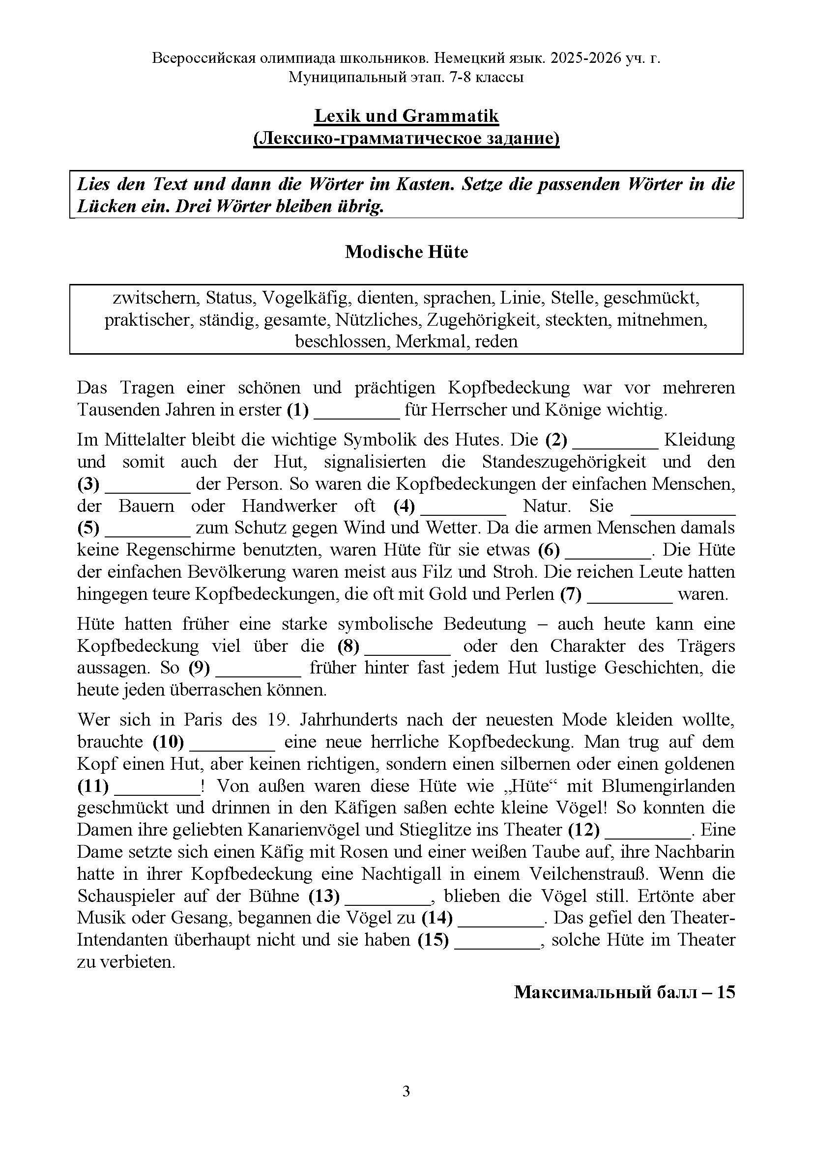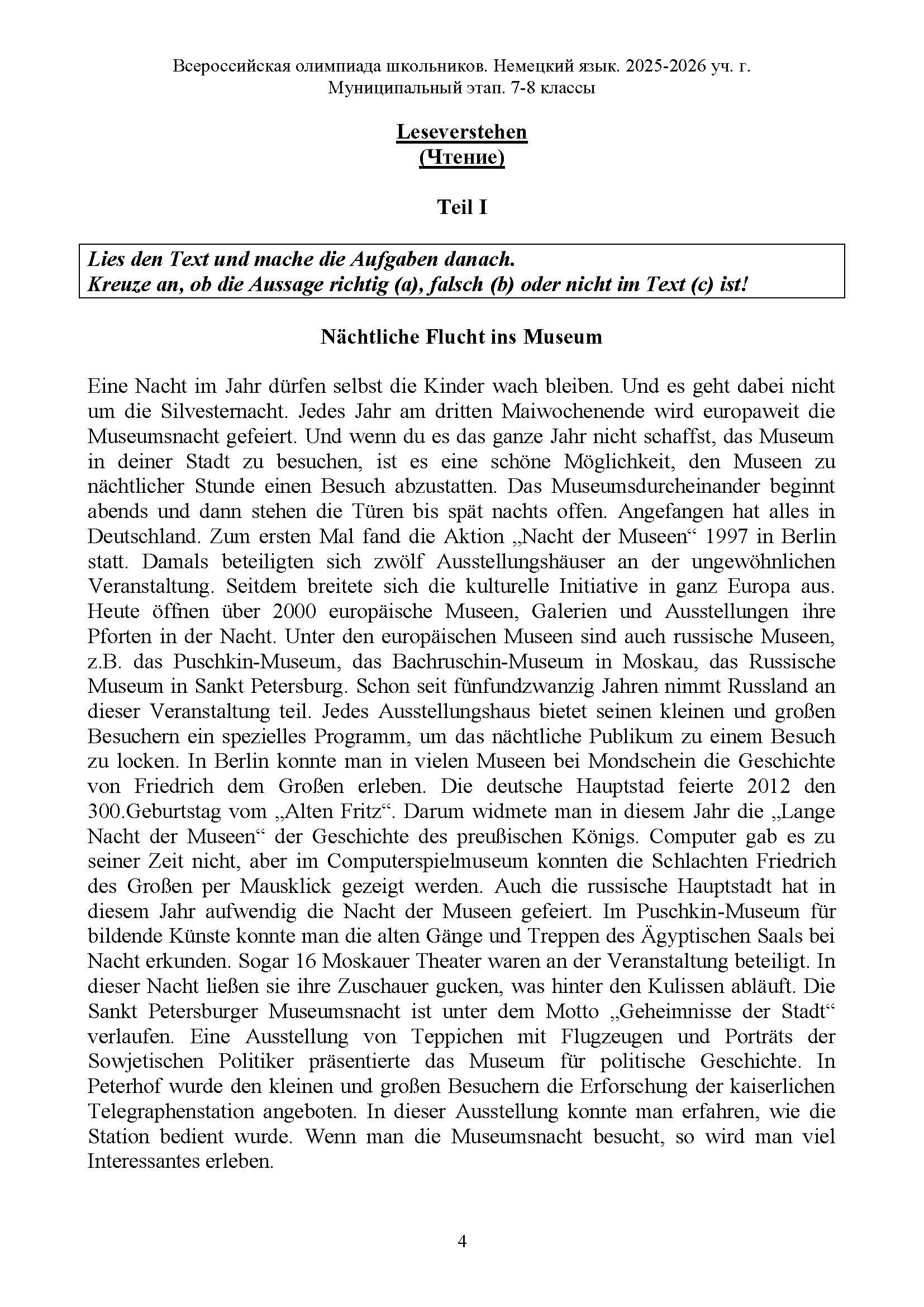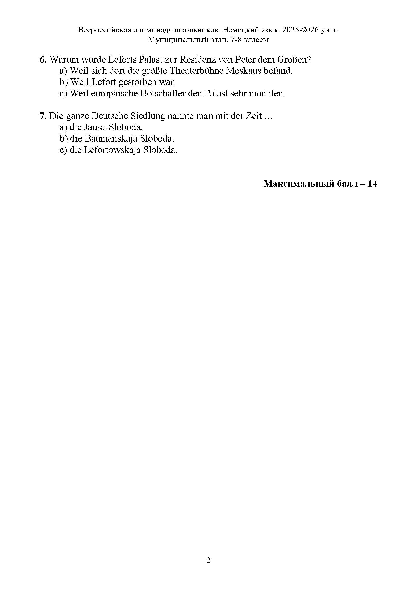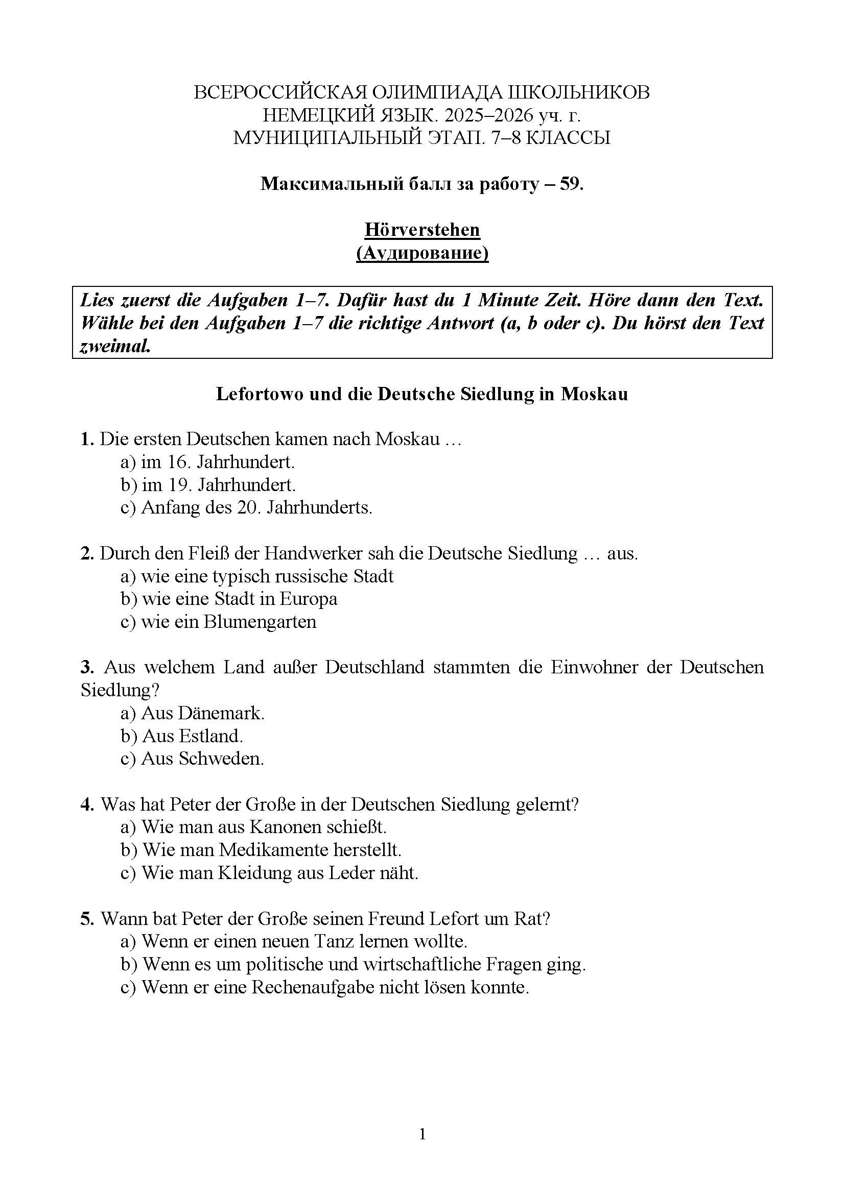 Всероссийская олимпиада школьников (ВсОШ) муниципального этапа по Немецкому языку. Официальные задания, ответы и решения для 7 (седьмого) класса (задания и ответы)
