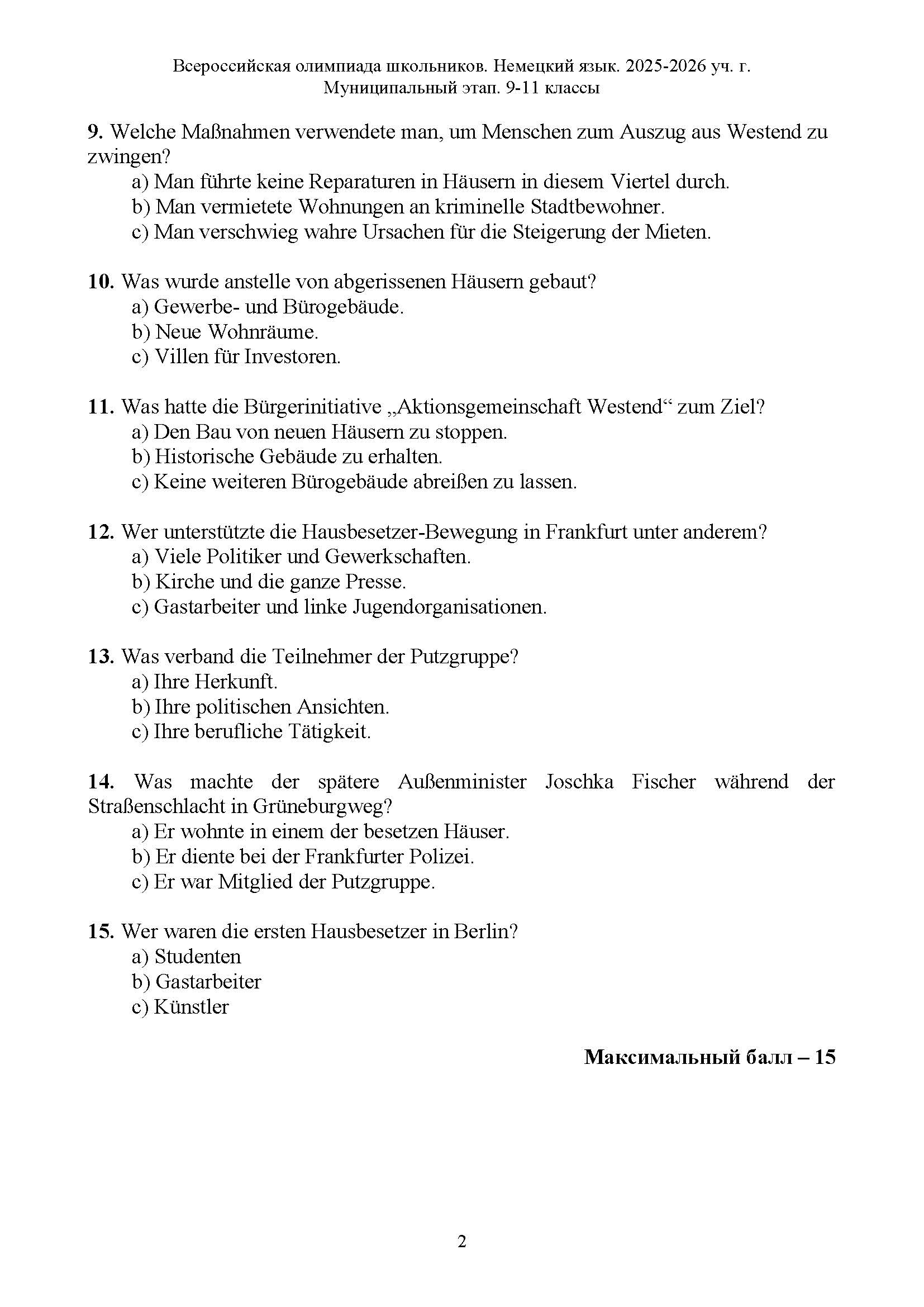 Всероссийская олимпиада школьников (ВсОШ) муниципального этапа по Немецкому языку. Официальные задания, ответы и решения для 10 (десятого) класса (задания и ответы)