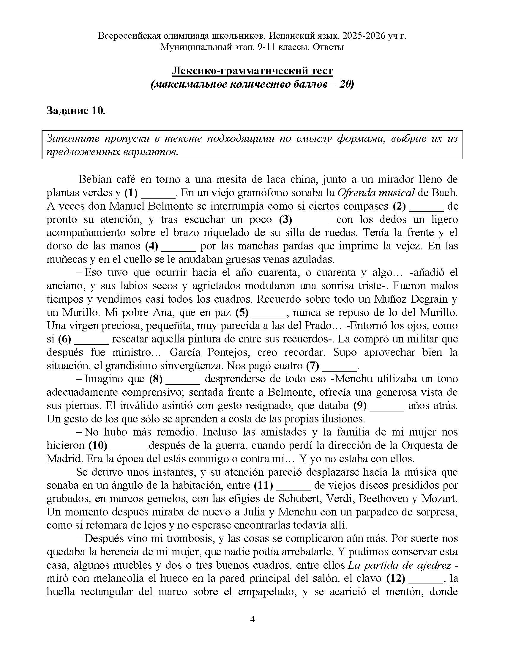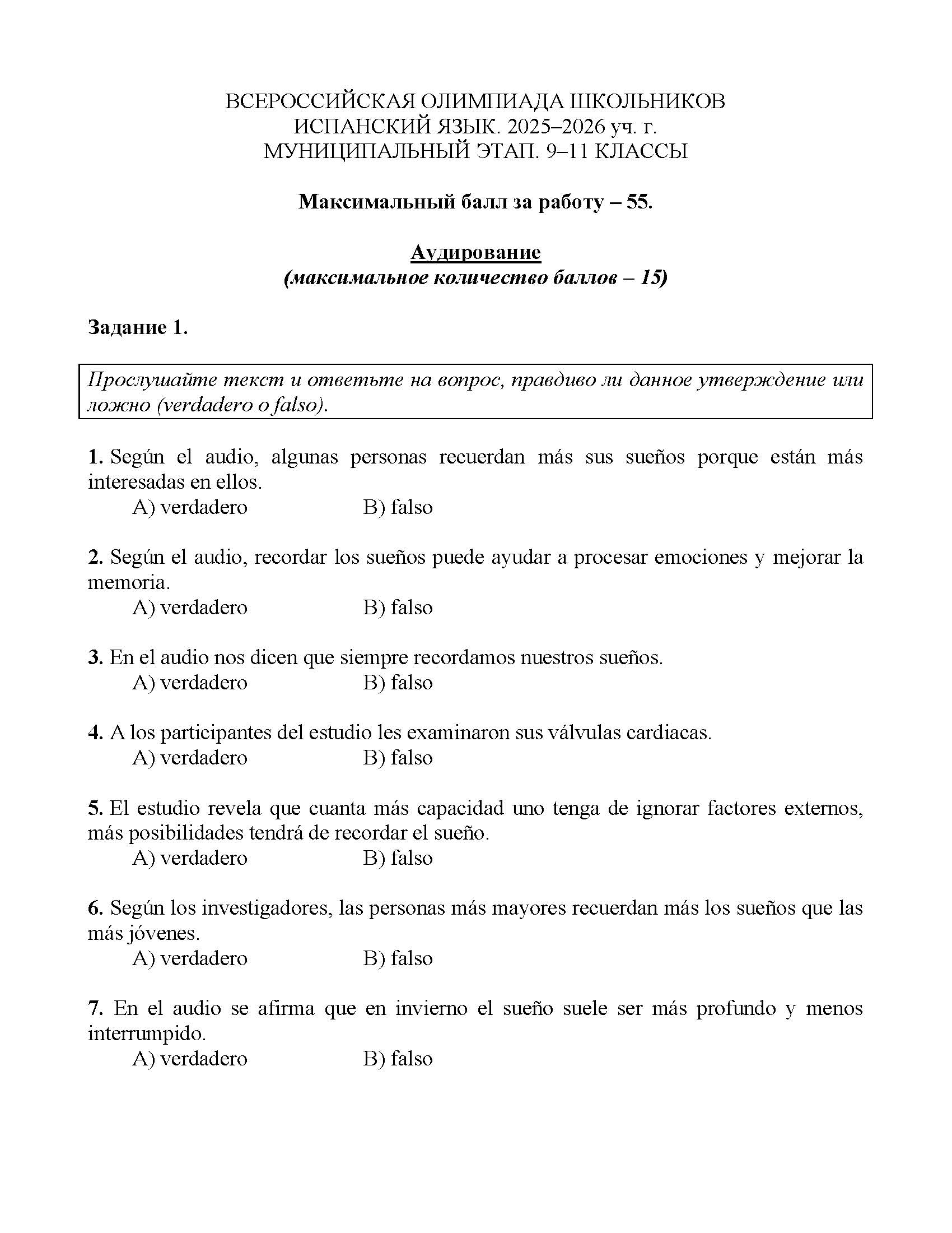 Задания, ответы и решения на этой страницы предоставлены в ознакомительных целях и лишь показывают специфику и структуру олимпиады по Испанскому языку. Вы можете использоваться ими как тренажёром для подготовки к предстоящей олимпиаде. Тренируйся, участвуй и побеждай!