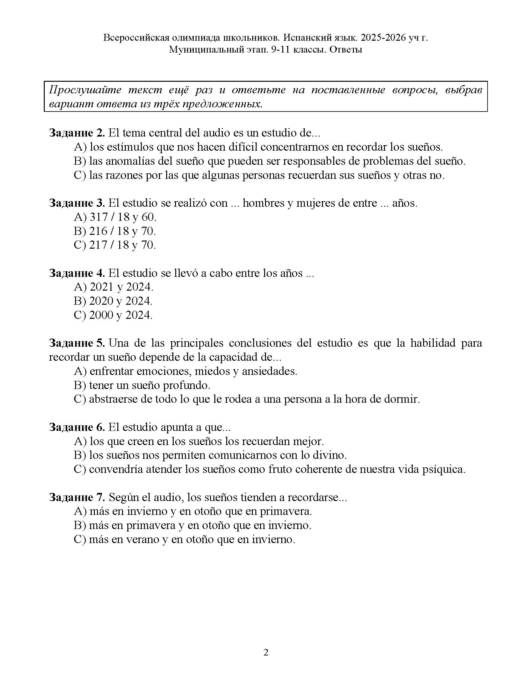 Задания, ответы и решения на этой страницы предоставлены в ознакомительных целях и лишь показывают специфику и структуру олимпиады по Испанскому языку. Вы можете использоваться ими как тренажёром для подготовки к предстоящей олимпиаде. Тренируйся, участвуй и побеждай!