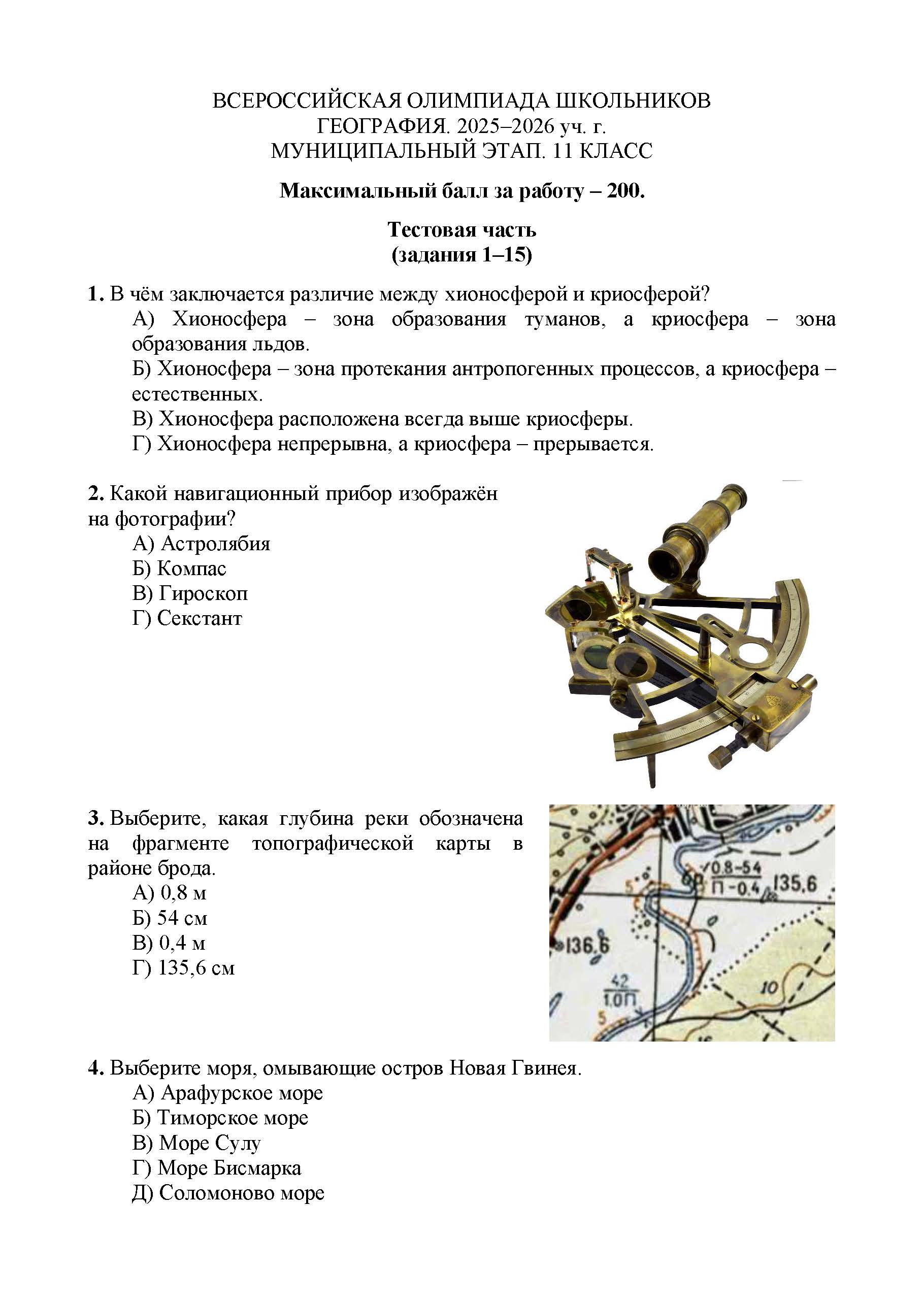 Задания, ответы и решения на этой страницы предоставлены в ознакомительных целях и лишь показывают специфику и структуру олимпиады по Географии. Вы можете использоваться ими как тренажёром для подготовки к предстоящей олимпиаде. Тренируйся, участвуй и побеждай!