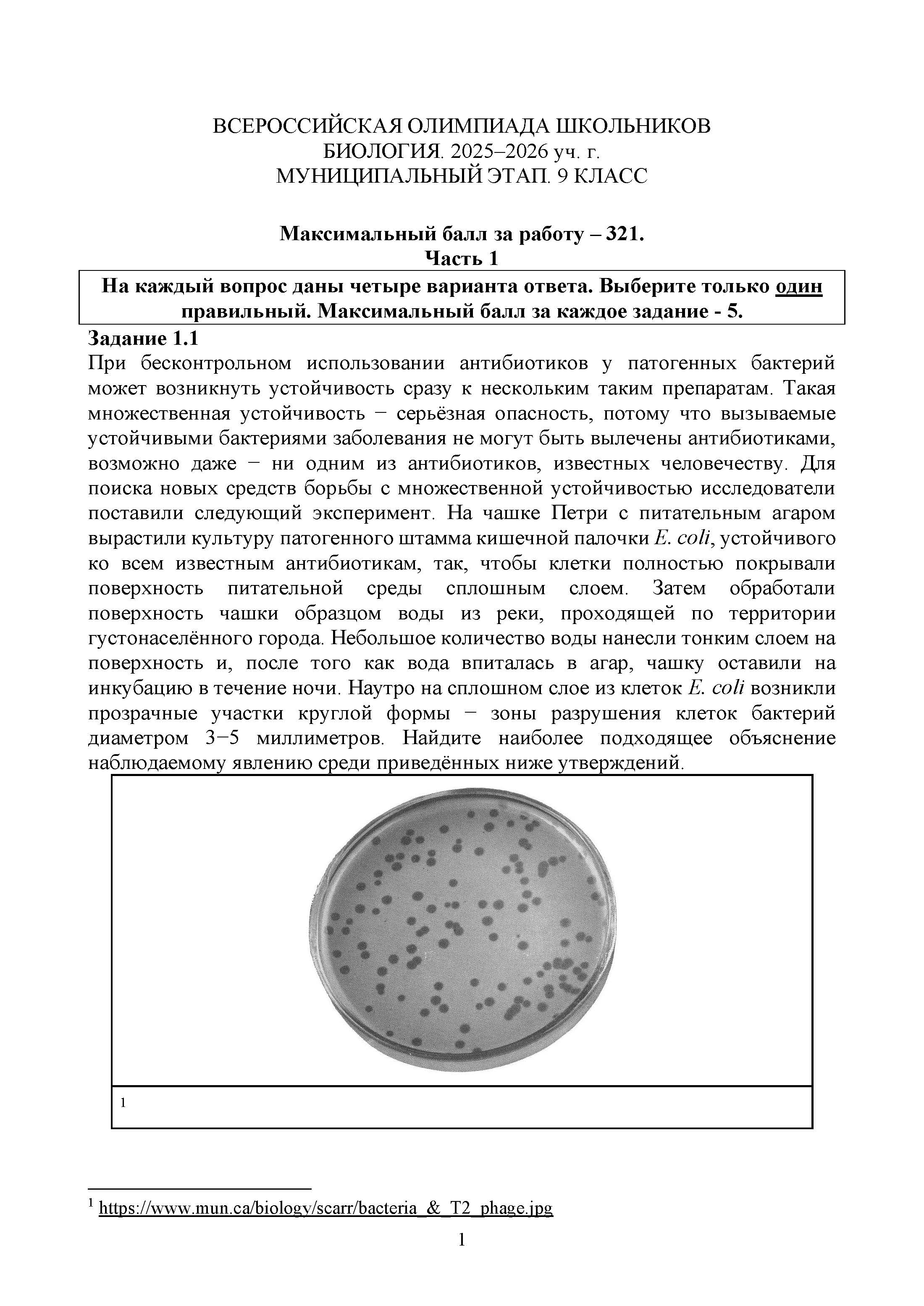 Всероссийская олимпиада школьников (ВсОШ) муниципального этапа по Биологии. Официальные задания, ответы и решения для 9 (девятого) класса (задания и ответы)