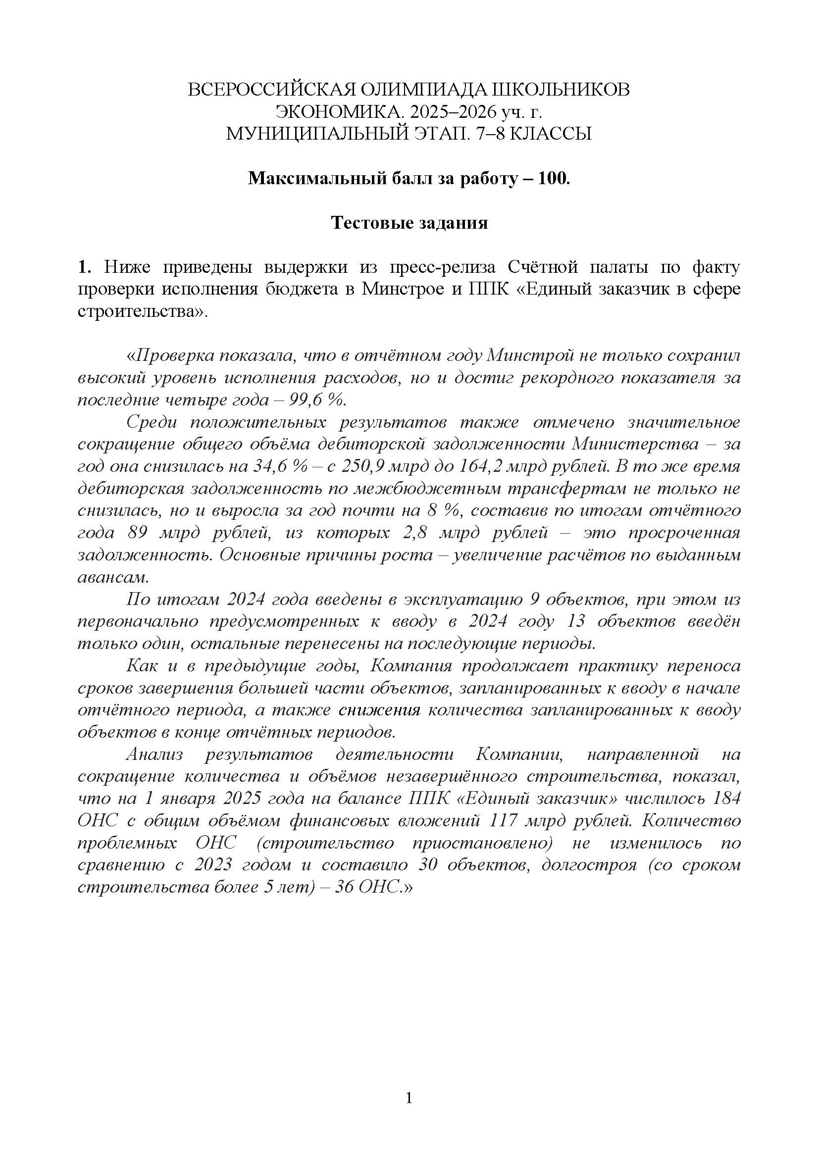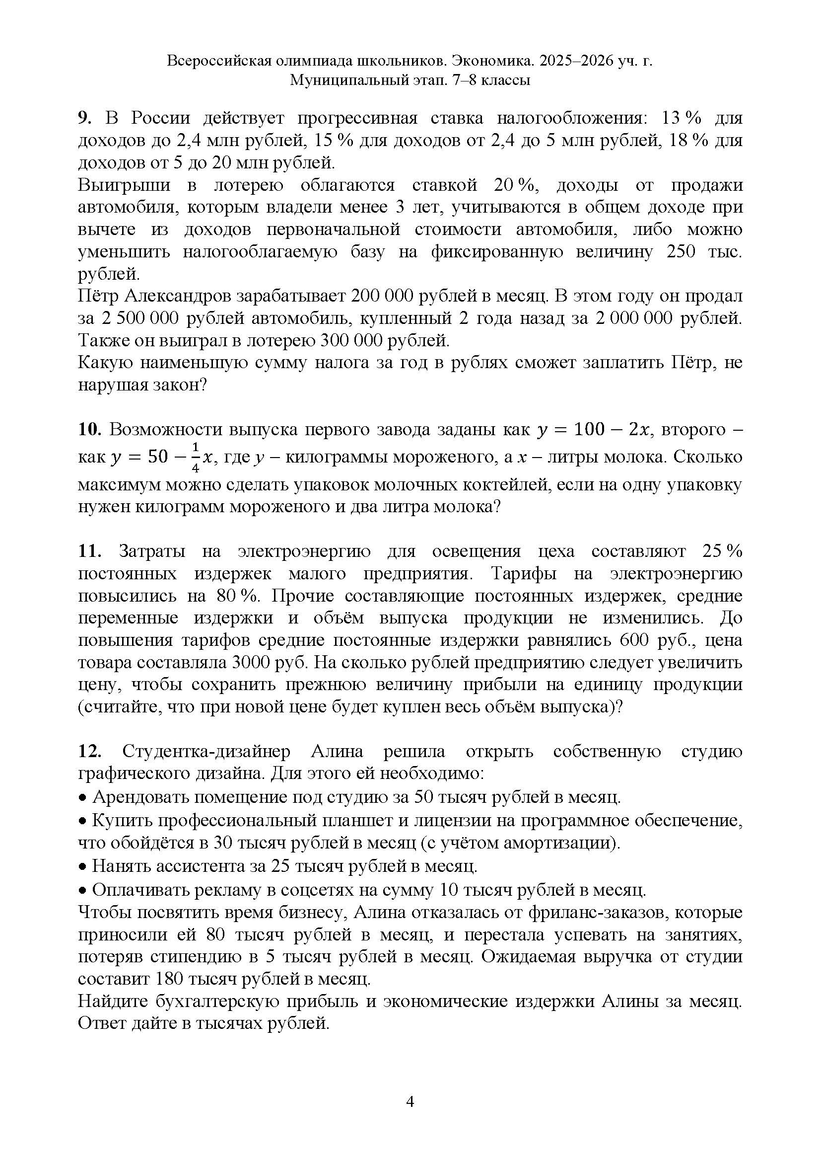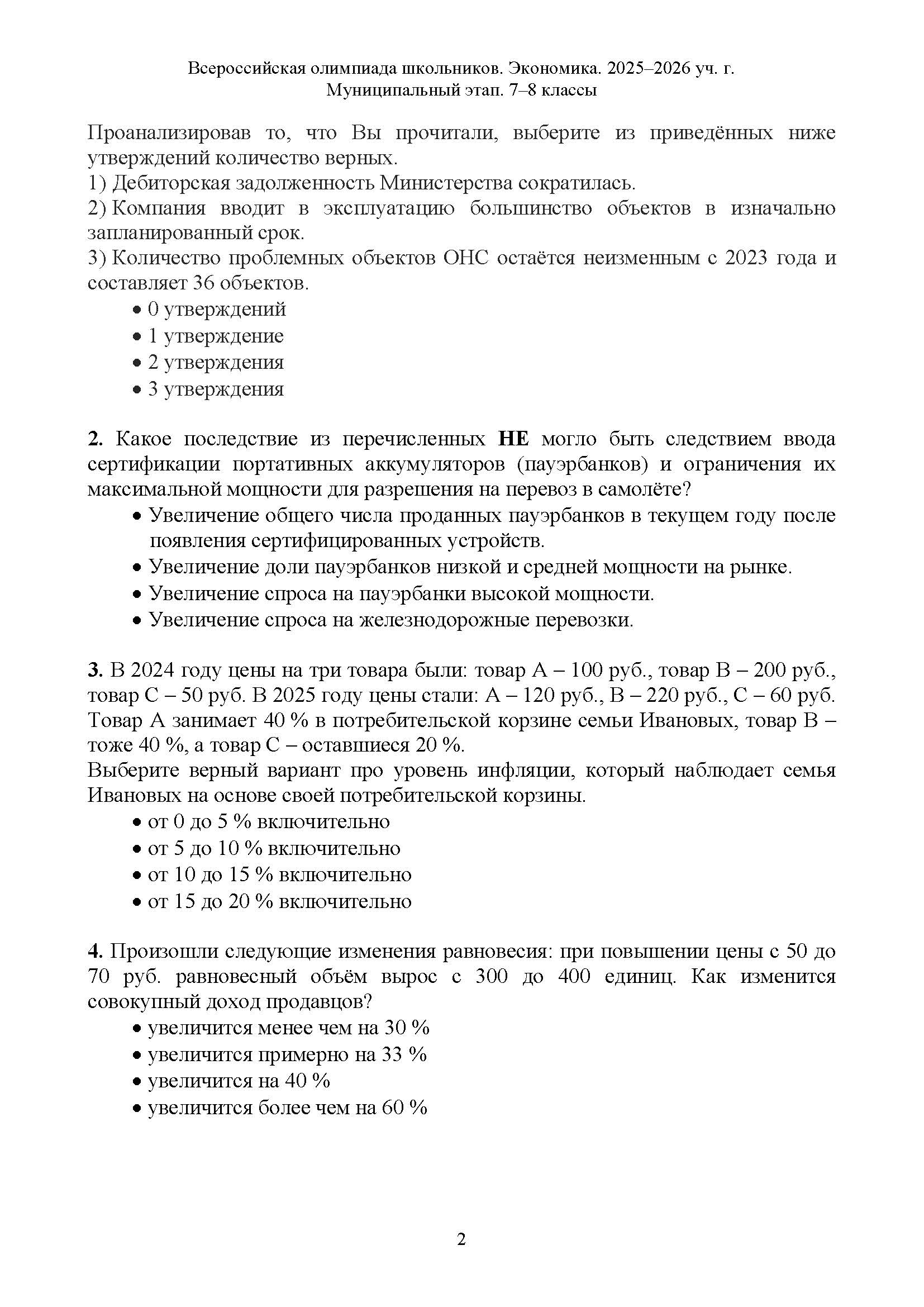 Всероссийская олимпиада школьников (ВсОШ) муниципального этапа по Экономике. Официальные задания, ответы и решения для 7 (седьмого) класса (задания и ответы)