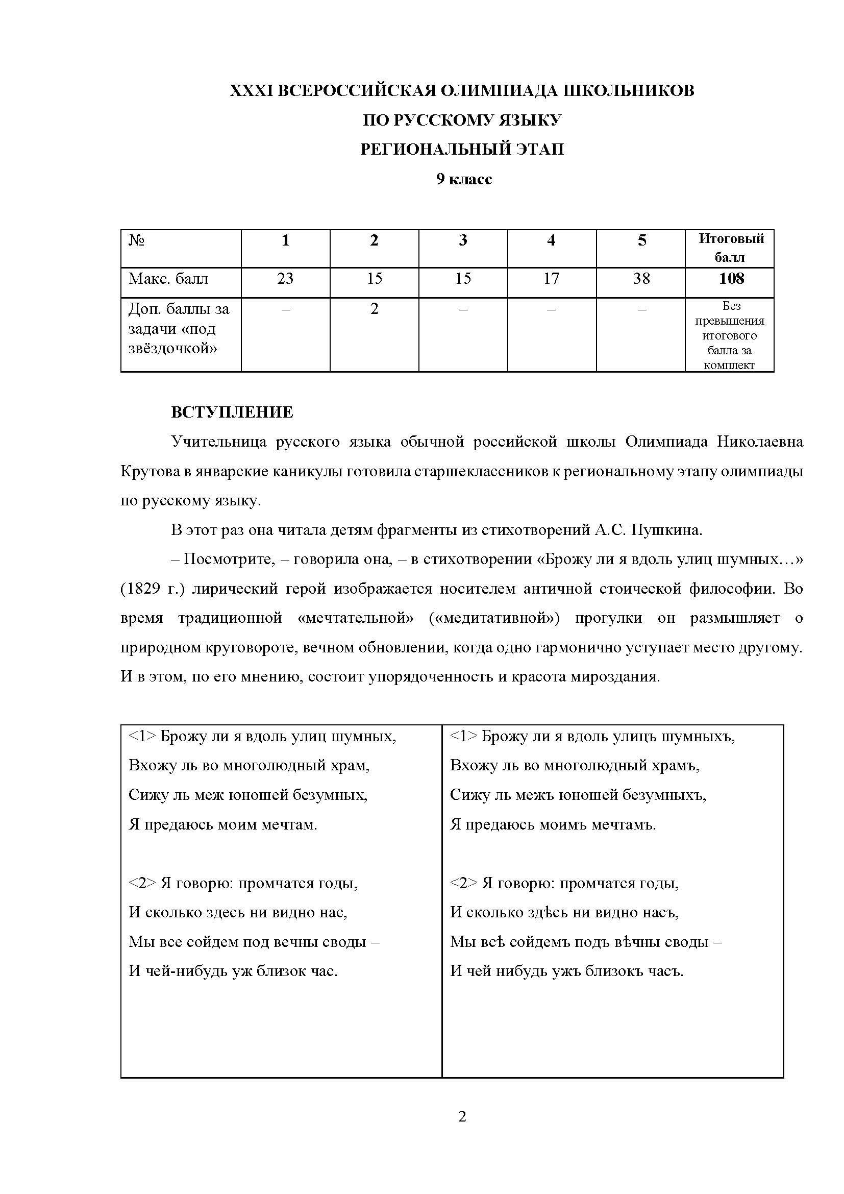 Всероссийская олимпиада школьников (ВсОШ) регионального этапа по Русскому языку. Официальные задания, ответы и решения для 9 (девятого) класса (задания и ответы)