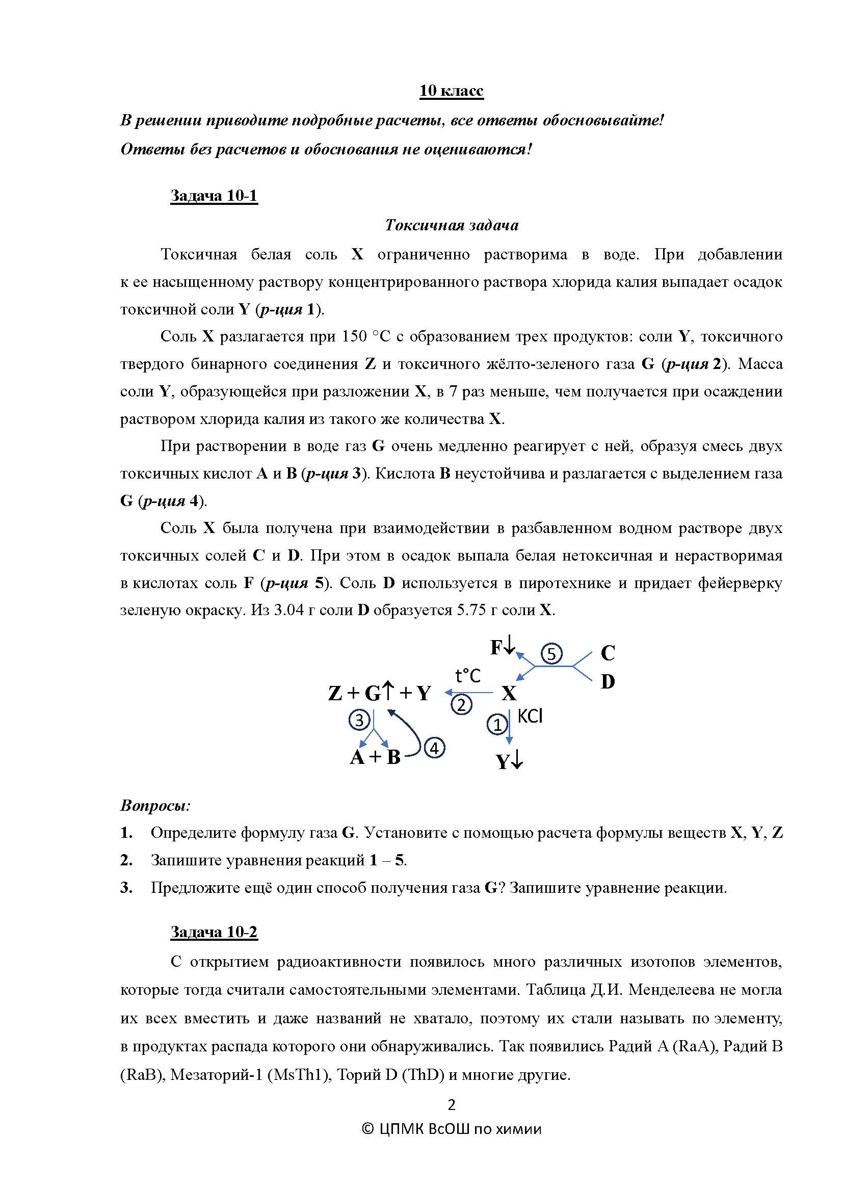 Всероссийская олимпиада школьников (ВсОШ) регионального этапа по Химии. Официальные задания, ответы и решения для 10 (десятого) класса (задания и ответы)