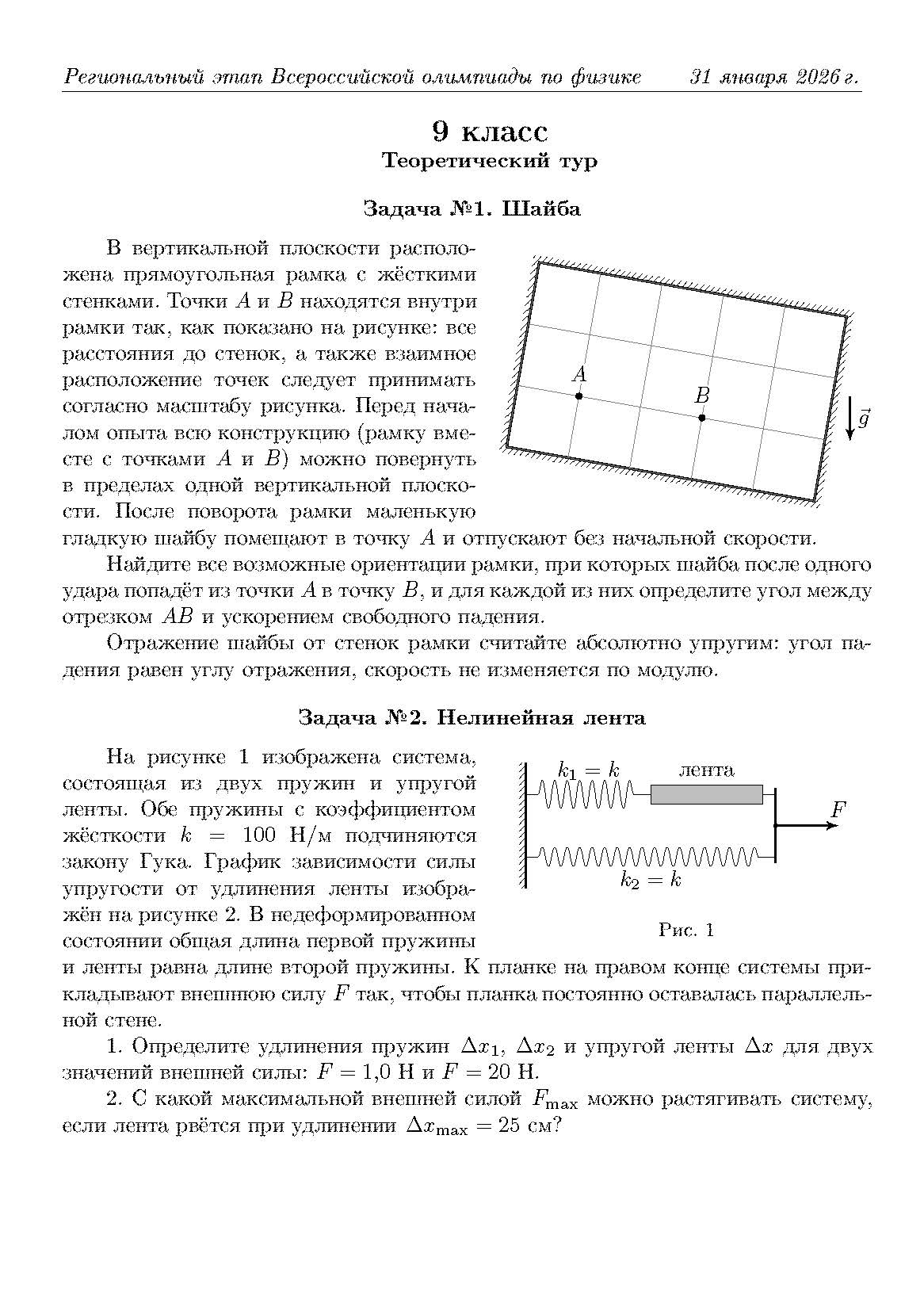 Всероссийская олимпиада школьников (ВсОШ) регионального этапа по Физике. Официальные задания, ответы и решения для 9 (девятого) класса (задания и ответы)