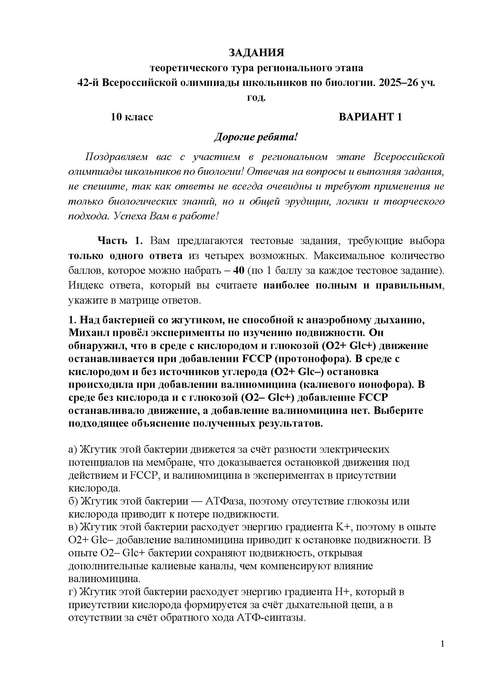 Всероссийская олимпиада школьников (ВсОШ) регионального этапа по Биологии. Официальные задания, ответы и решения для 10 (десятого) класса (задания и ответы)