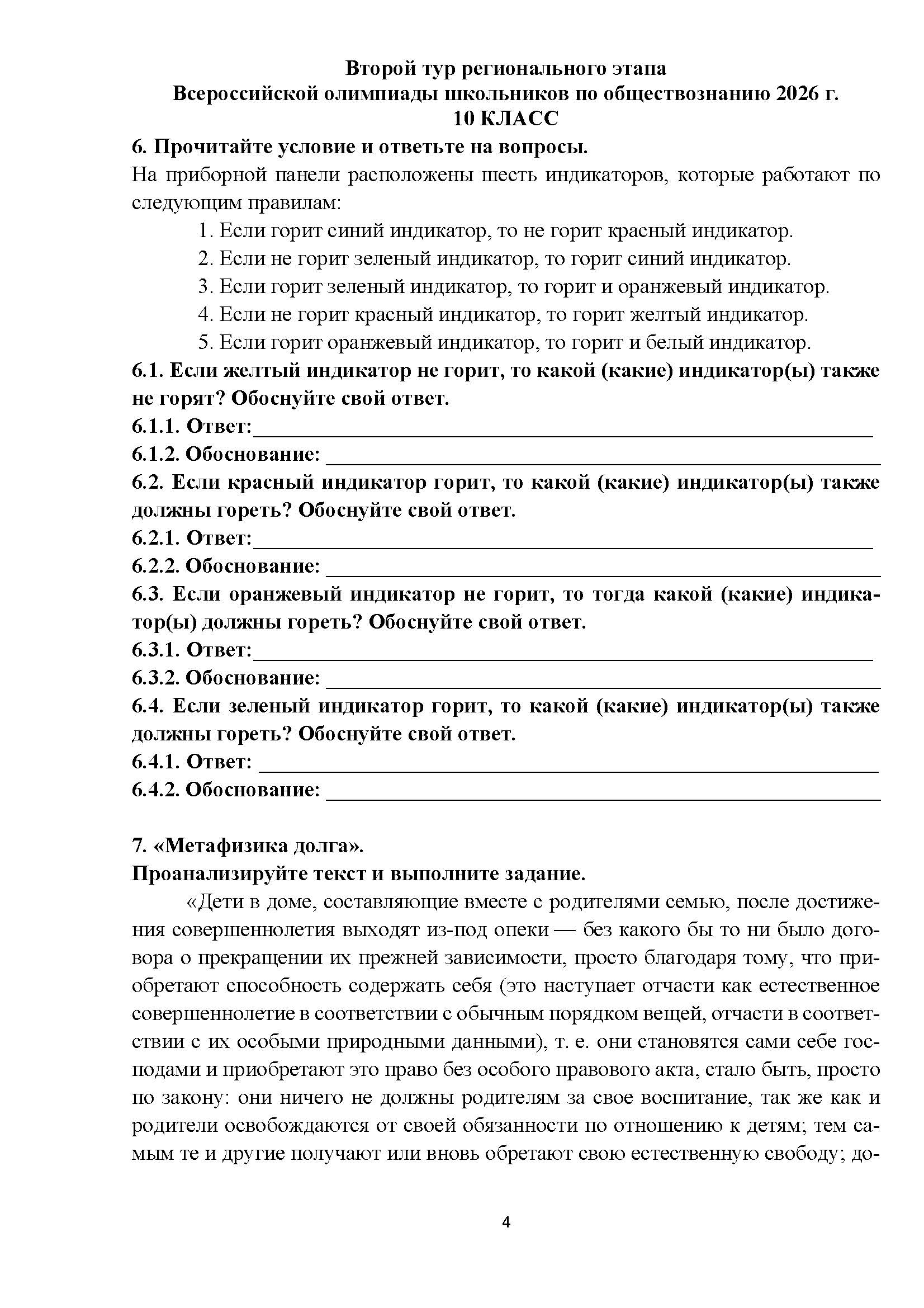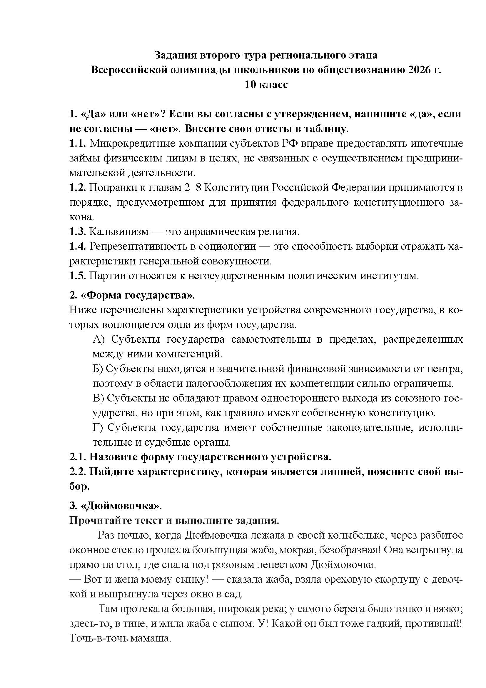 Всероссийская олимпиада школьников (ВсОШ) регионального этапа по Обществознанию. Официальные задания, ответы и решения для 10 (десятого) класса (задания и ответы)