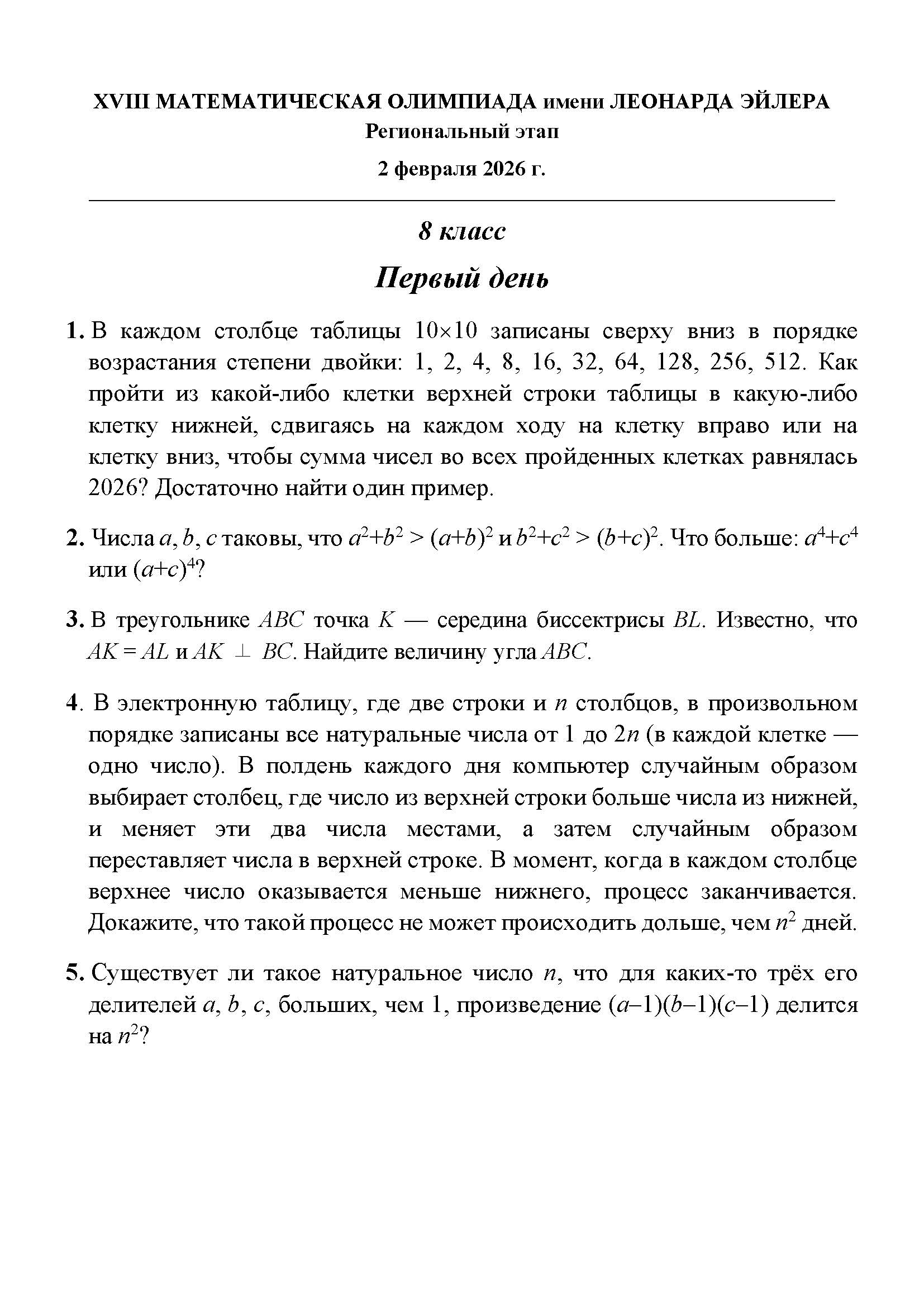 Всероссийская олимпиада школьников (ВсОШ) регионального этапа по Математике. Официальные задания, ответы и решения для 8 (восьмого) класса (задания и ответы)