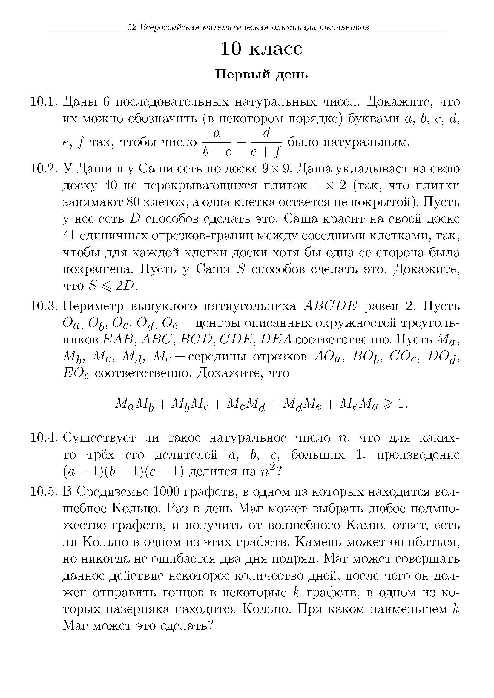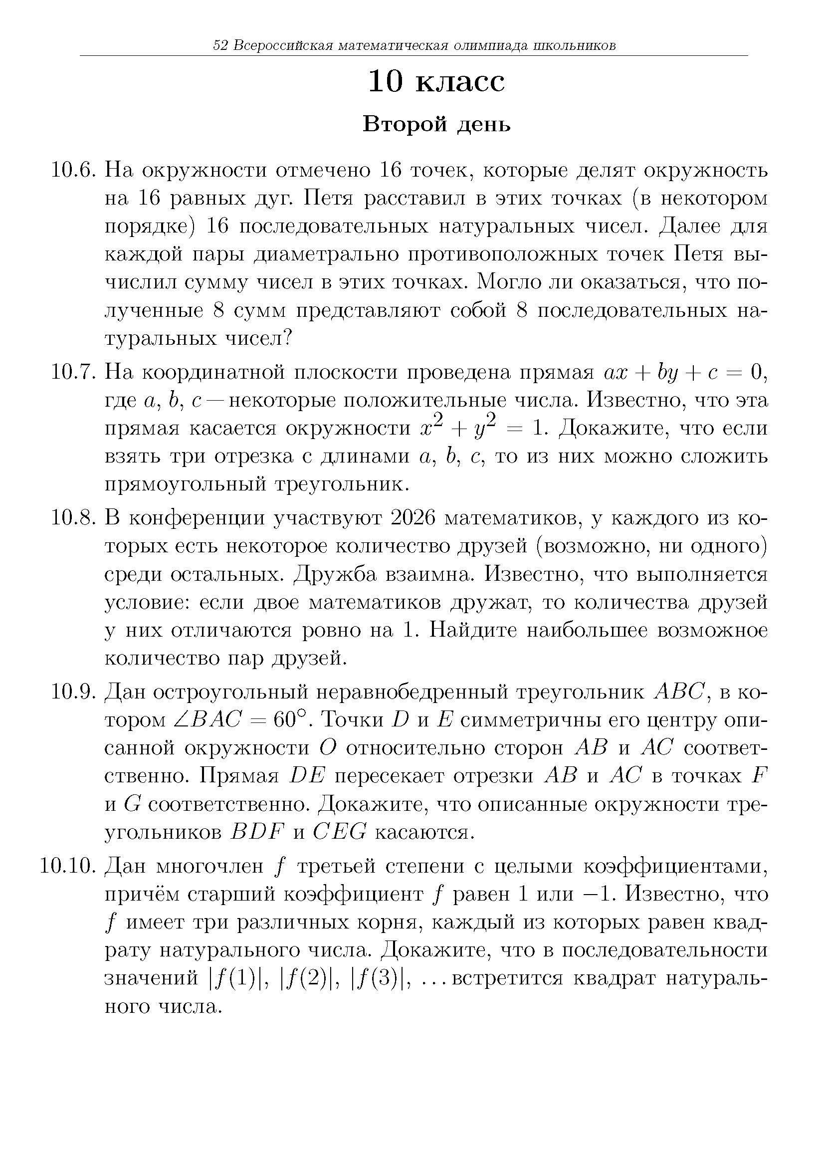Всероссийская олимпиада школьников (ВсОШ) регионального этапа по Математике. Официальные задания, ответы и решения для 10 (десятого) класса (задания и ответы)