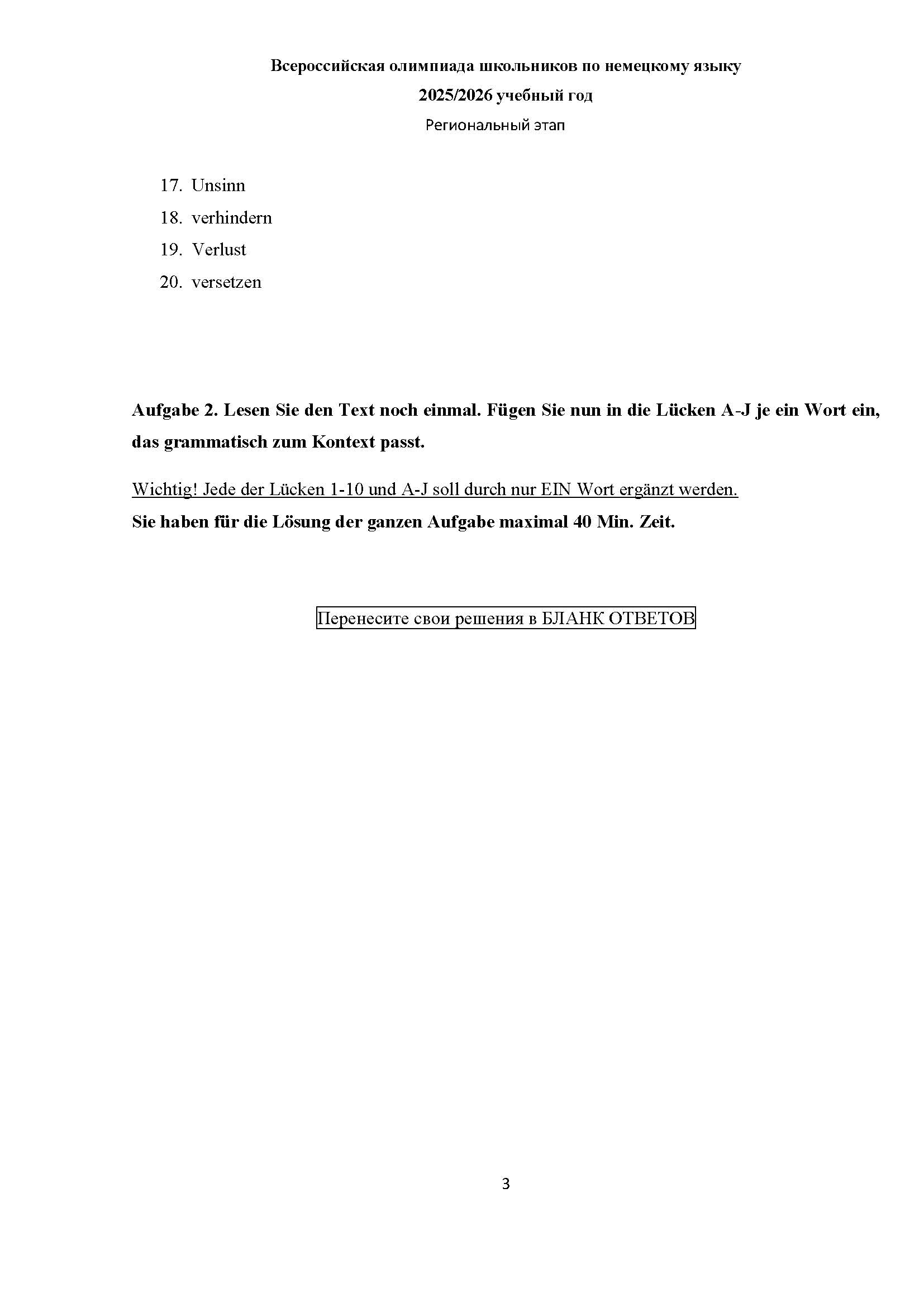 Всероссийская олимпиада школьников (ВсОШ) регионального этапа по Немецкому языку. Официальные задания, ответы и решения для 9 (девятого) класса (задания и ответы)