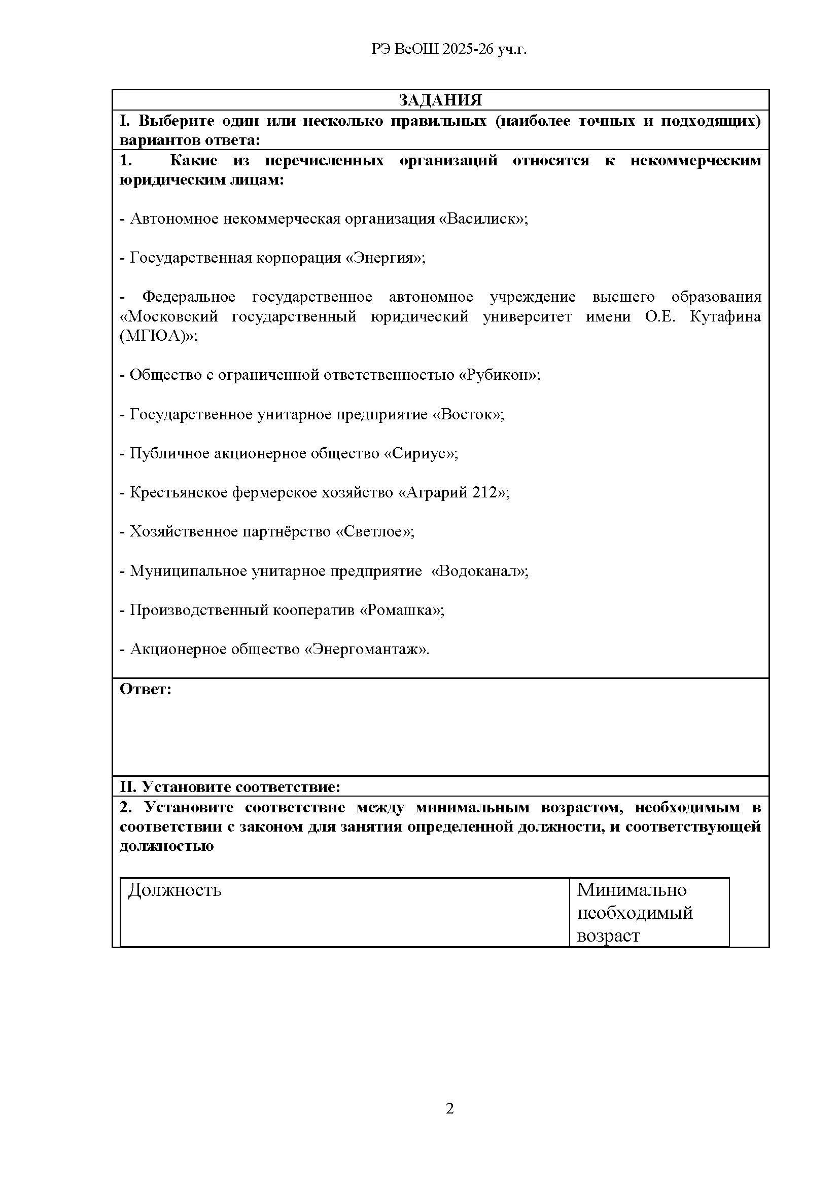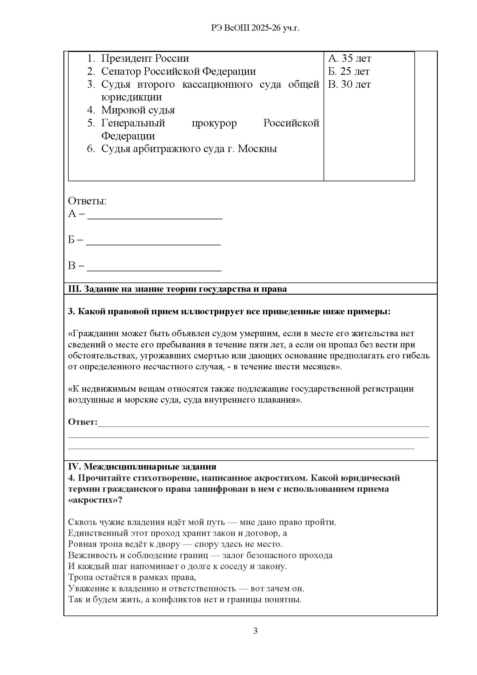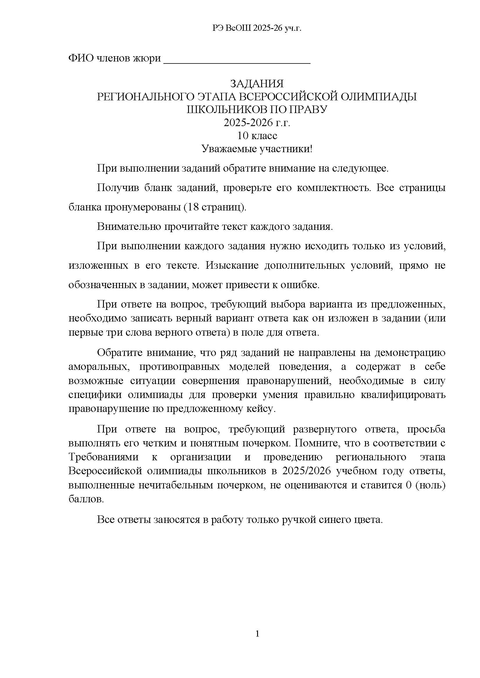 Всероссийская олимпиада школьников (ВсОШ) регионального этапа по Праву. Официальные задания, ответы и решения для 10 (десятого) класса (задания и ответы)