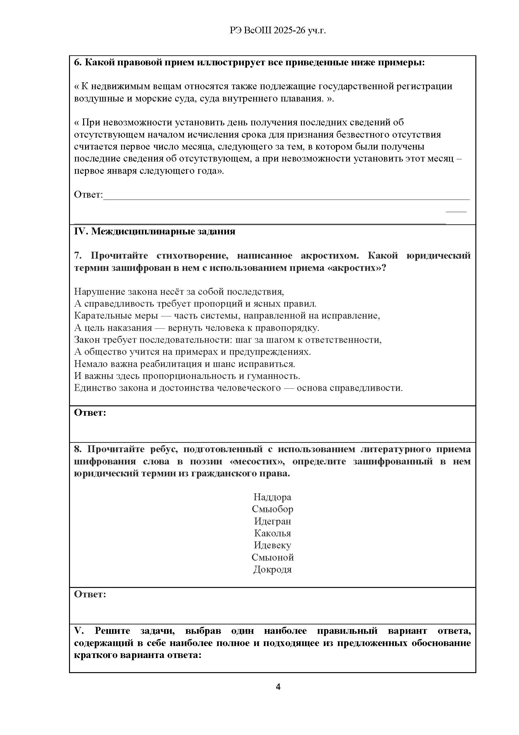 Задания, ответы и решения на этой страницы предоставлены в ознакомительных целях и лишь показывают специфику и структуру олимпиады по Праву. Вы можете использоваться ими как тренажёром для подготовки к предстоящей олимпиаде. Тренируйся, участвуй и побеждай!