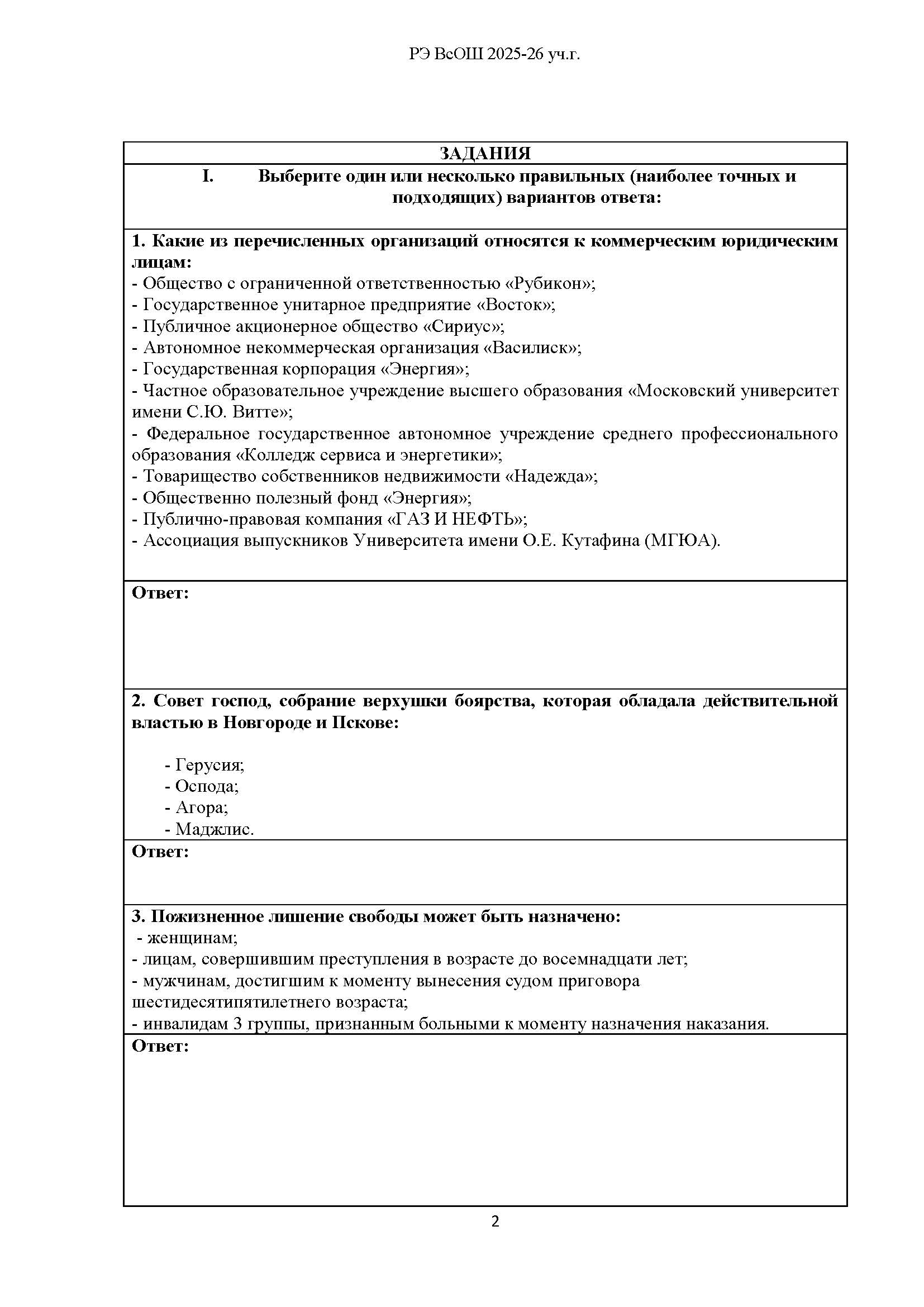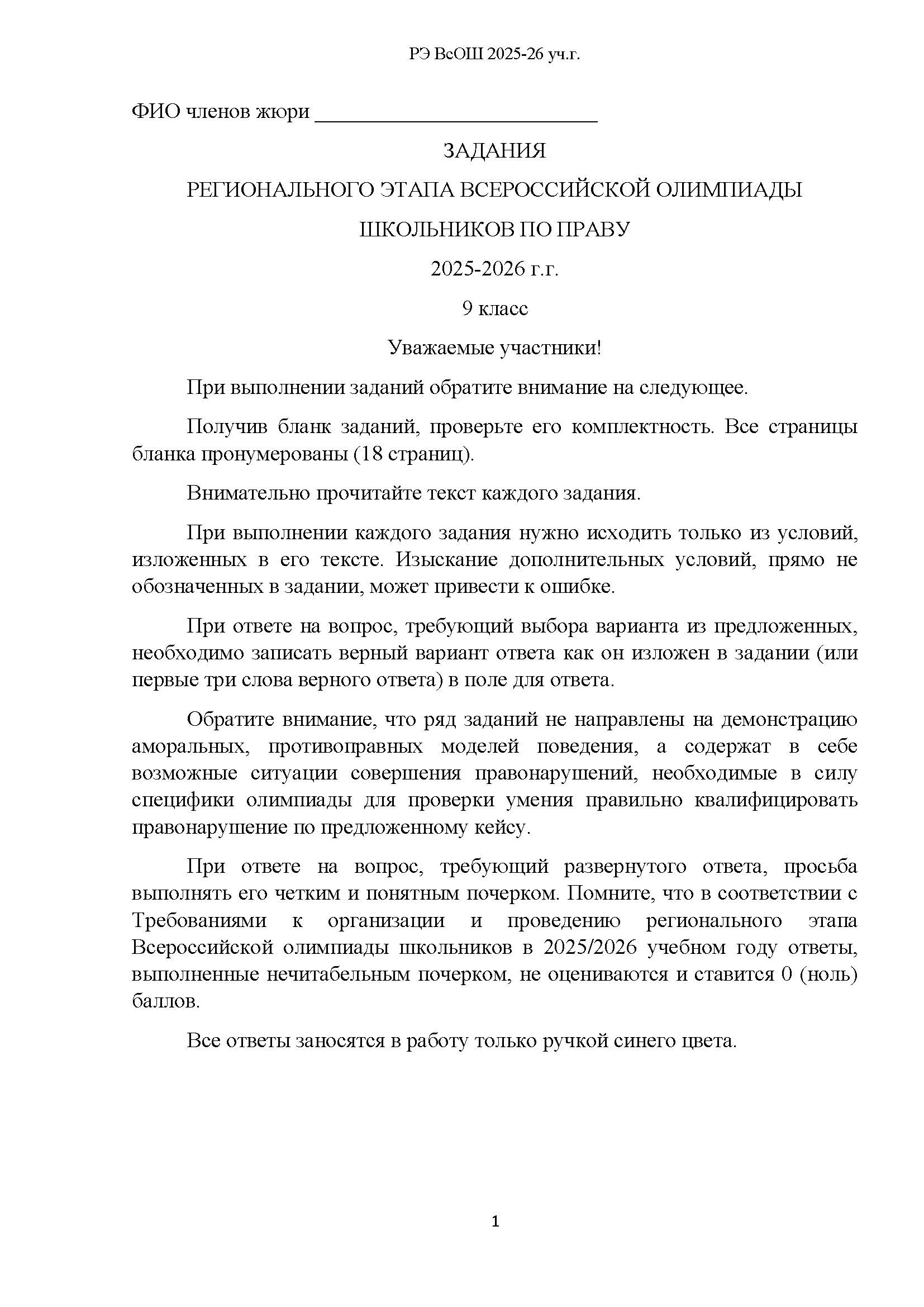 Всероссийская олимпиада школьников (ВсОШ) регионального этапа по Праву. Официальные задания, ответы и решения для 9 (девятого) класса (задания и ответы)