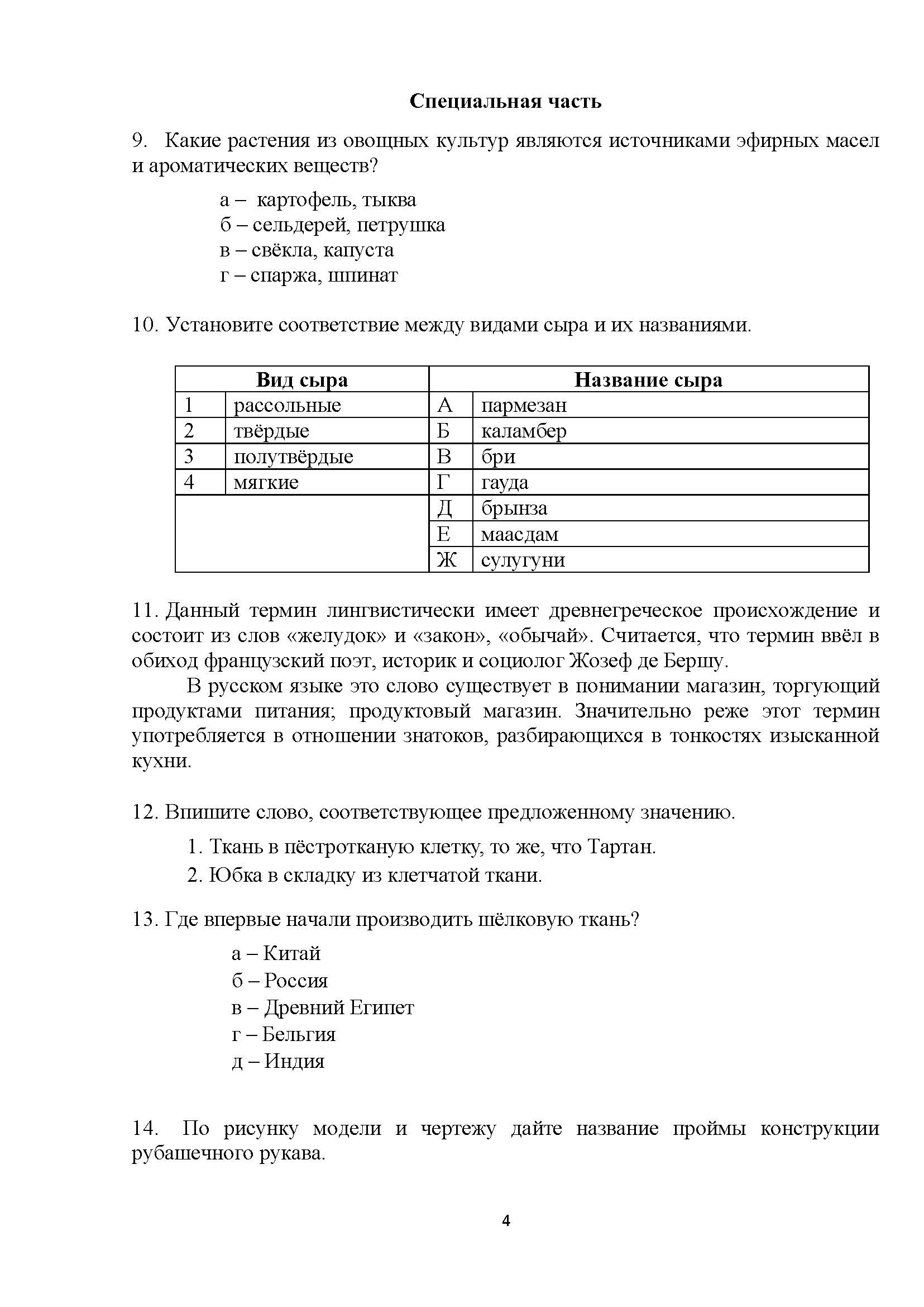 Всероссийская олимпиада школьников (ВсОШ) регионального этапа по Технологии. Официальные задания, ответы и решения для 10 (десятого) класса (задания и ответы)