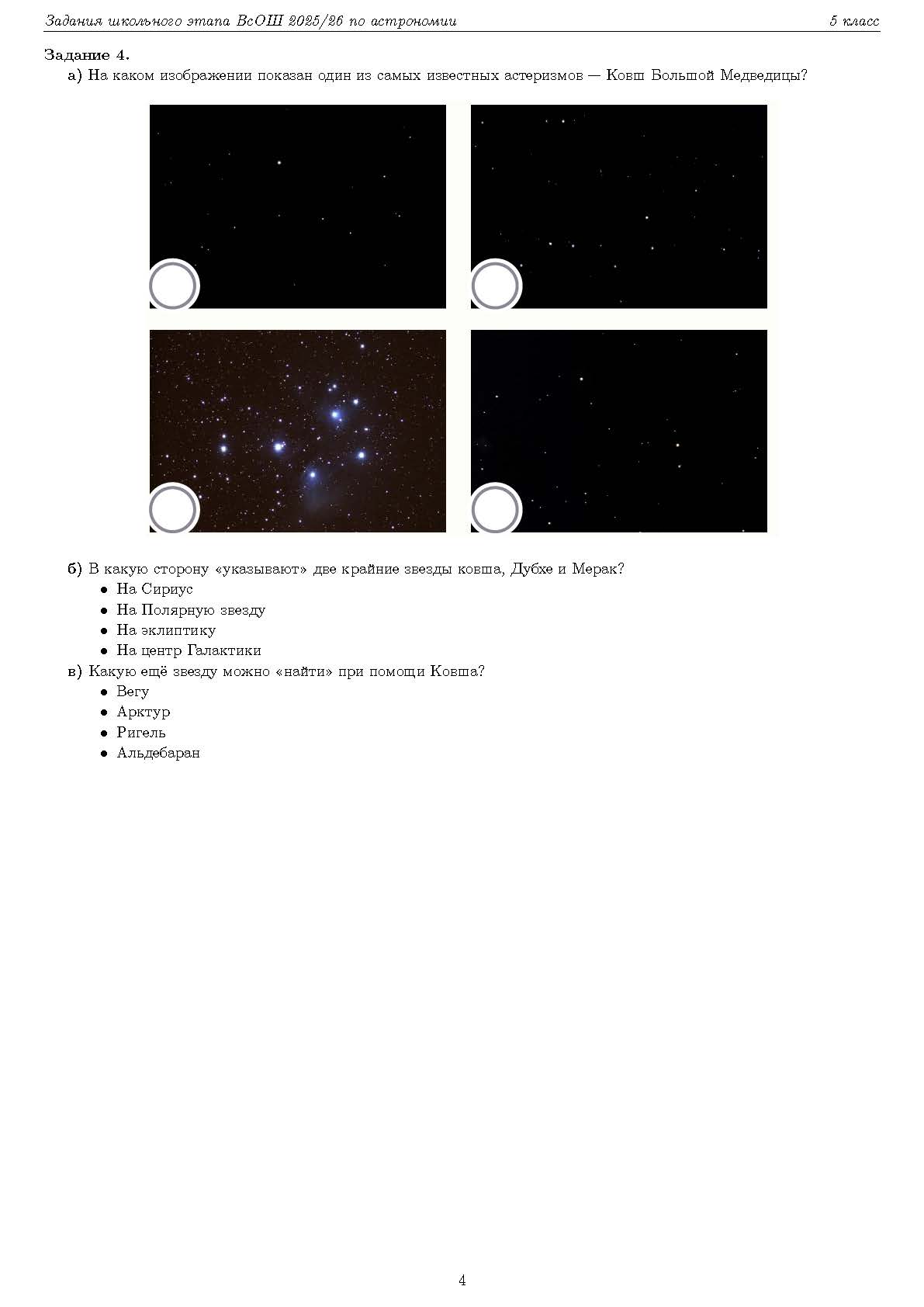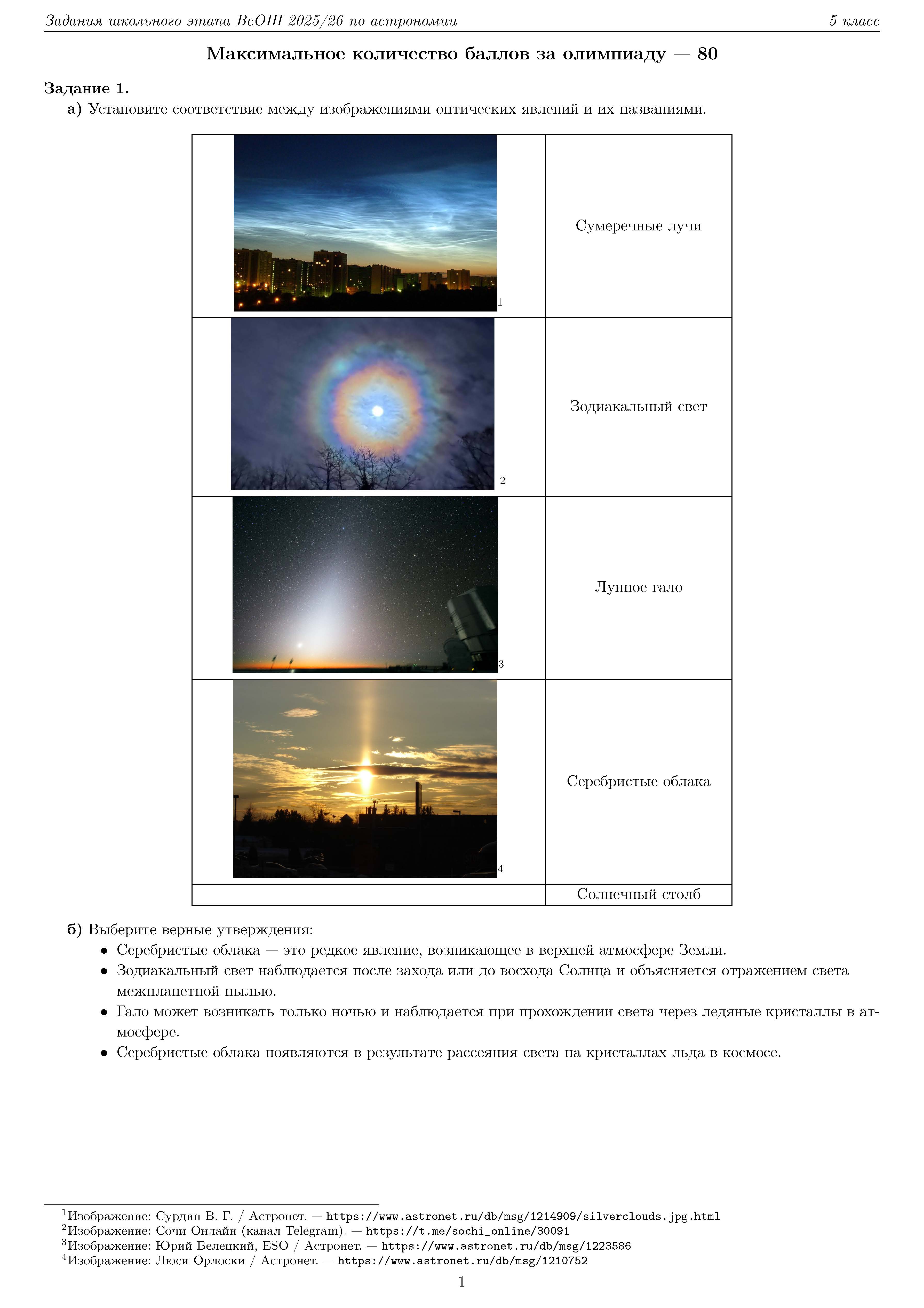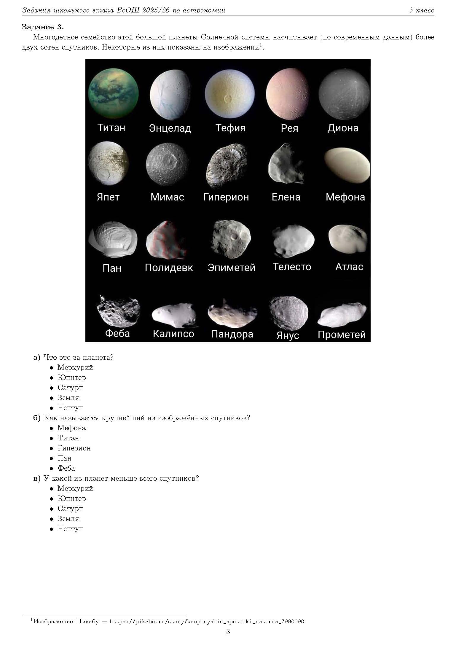 Всероссийская олимпиада школьников (ВсОШ) школьного этапа по Астрономии. Официальные задания, ответы и решения для 5 (пятого) класса (задания и ответы)