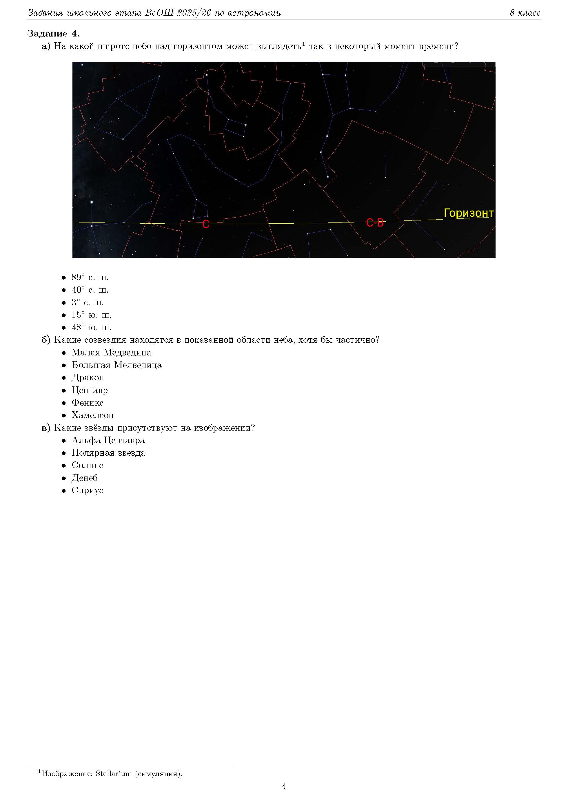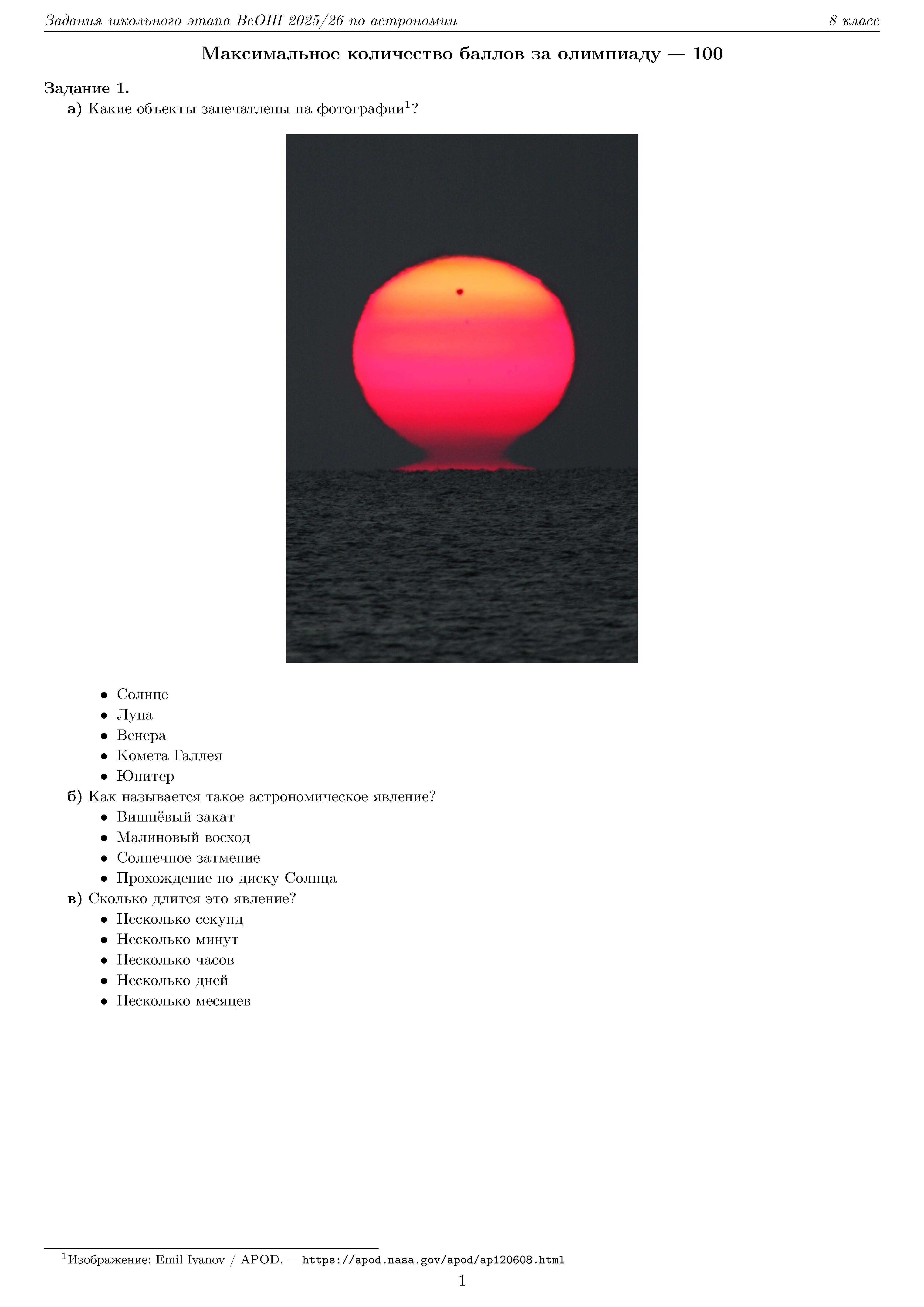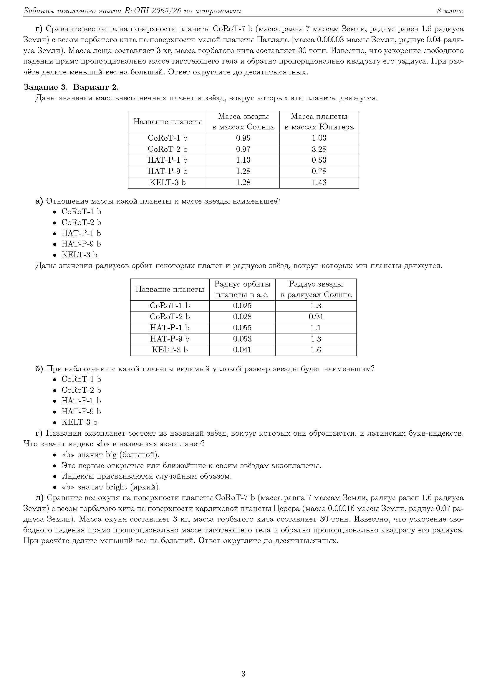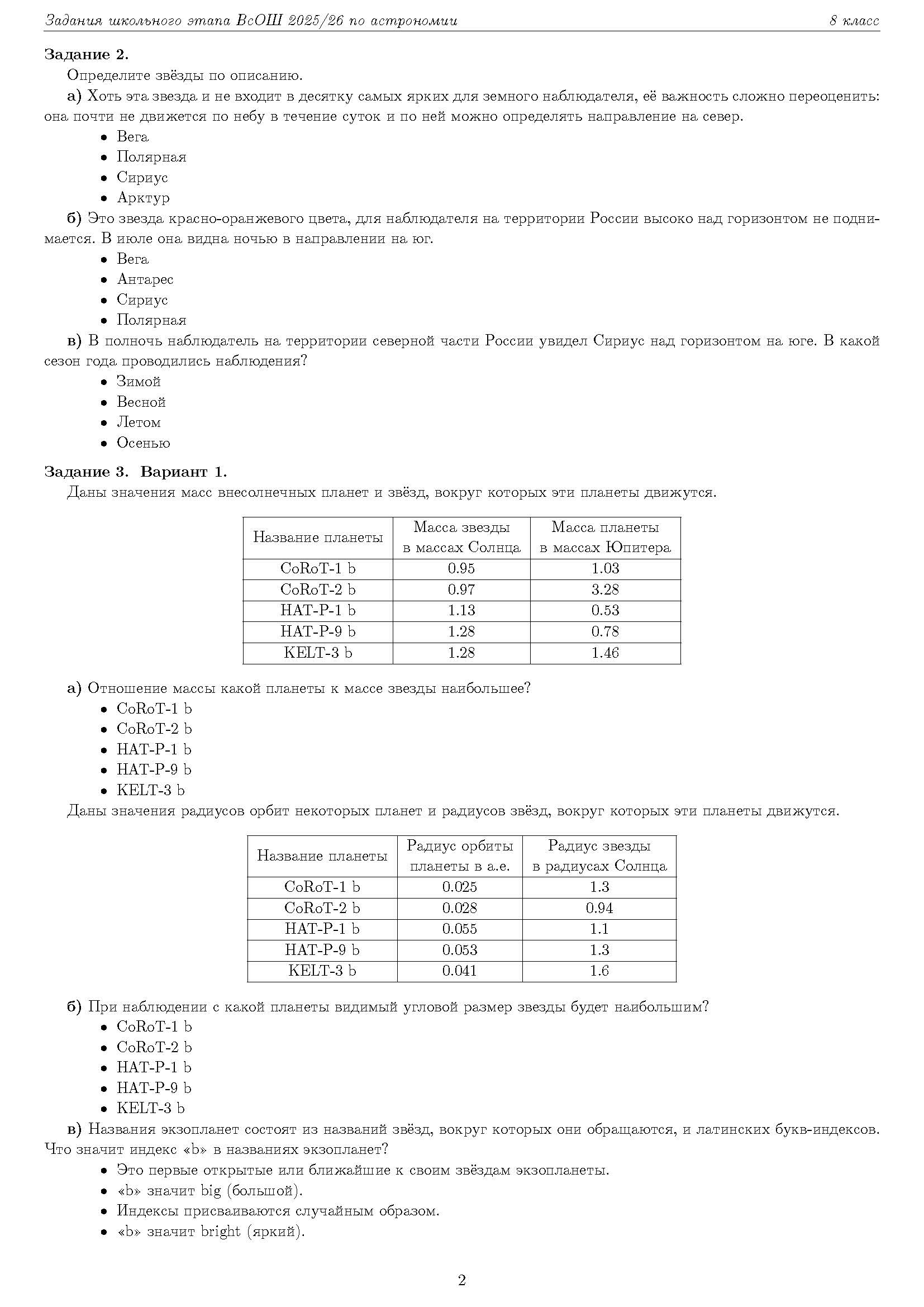 Всероссийская олимпиада школьников (ВсОШ) школьного этапа по Астрономии. Официальные задания, ответы и решения для 8 (восьмого) класса (задания и ответы)