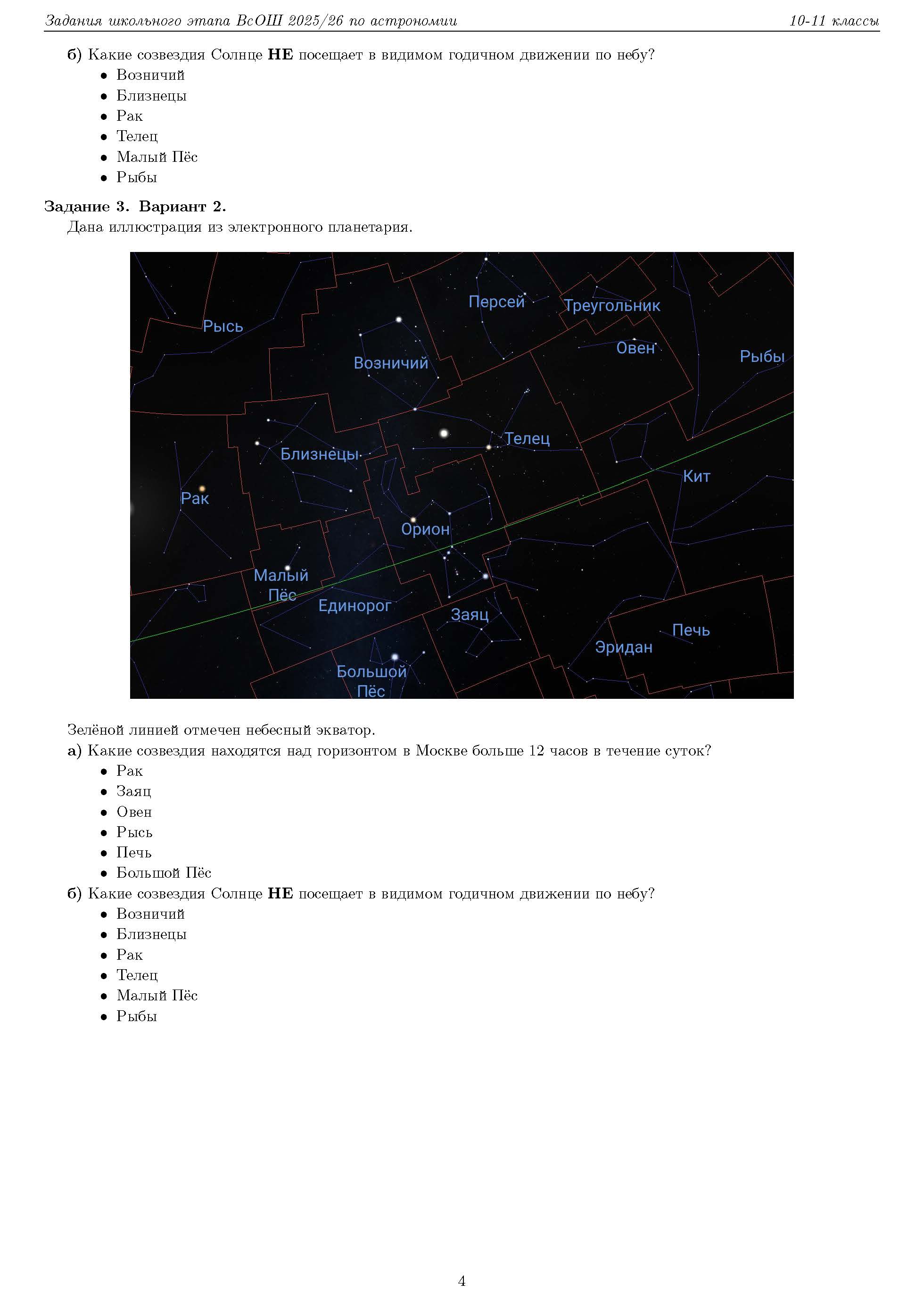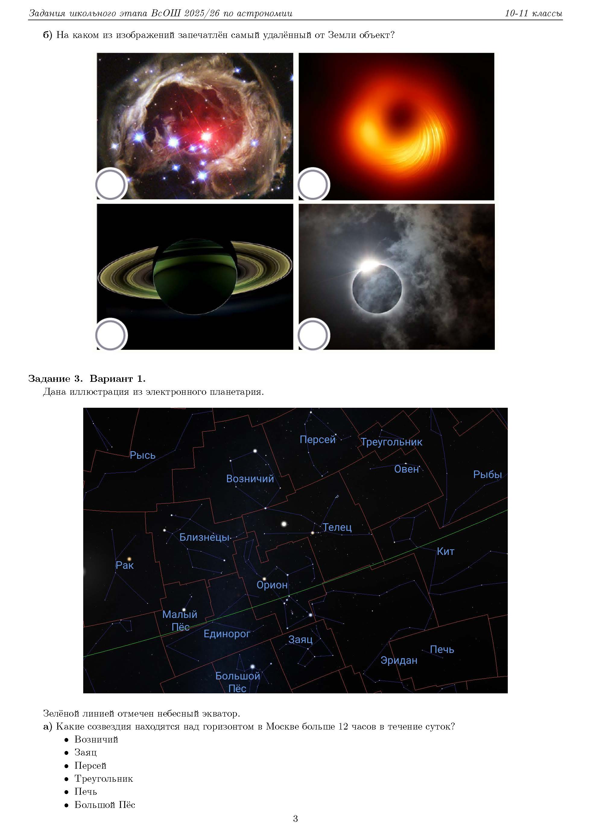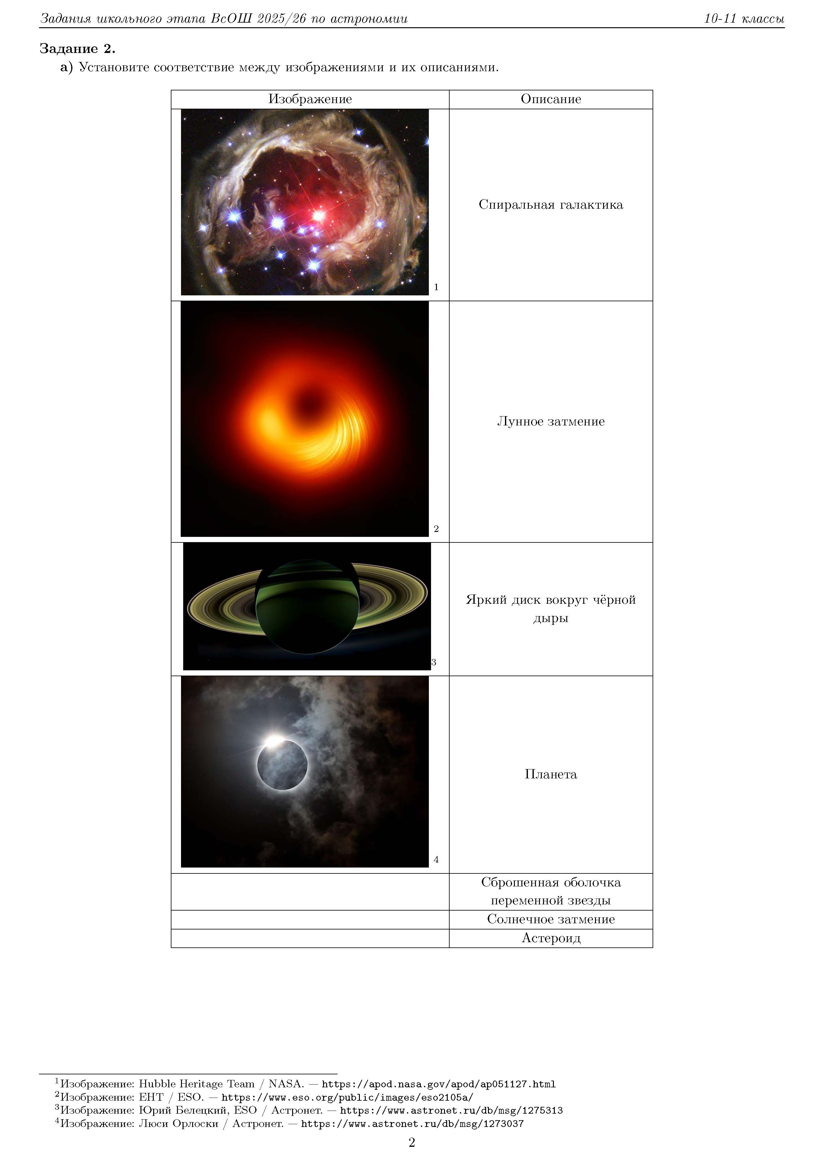 Всероссийская олимпиада школьников (ВсОШ) школьного этапа по Астрономии. Официальные задания, ответы и решения для 10 (десятого) класса (задания и ответы)