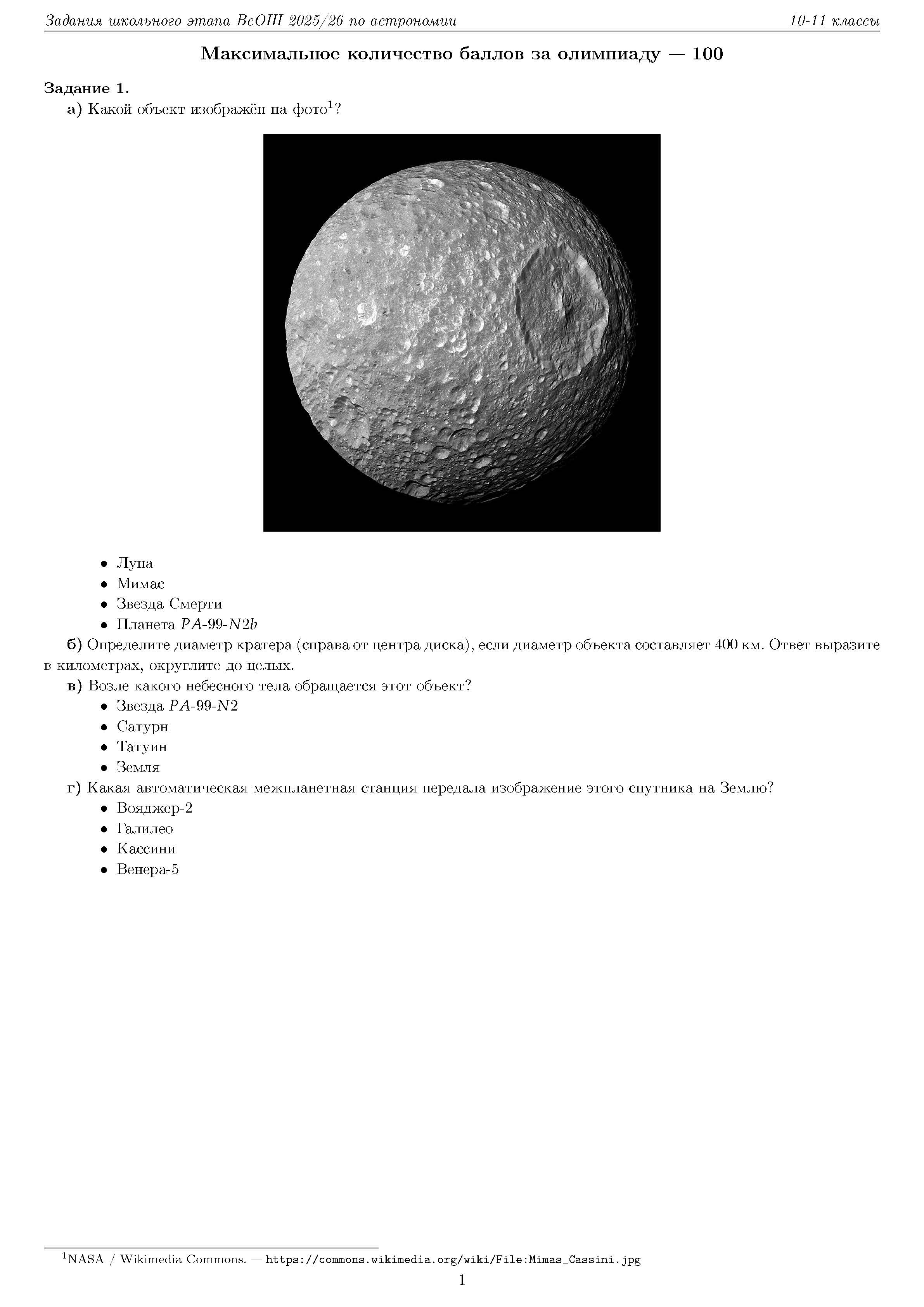 Всероссийская олимпиада школьников (ВсОШ) школьного этапа по Астрономии. Официальные задания, ответы и решения для 11 (одиннадцатого) класса (задания и ответы)