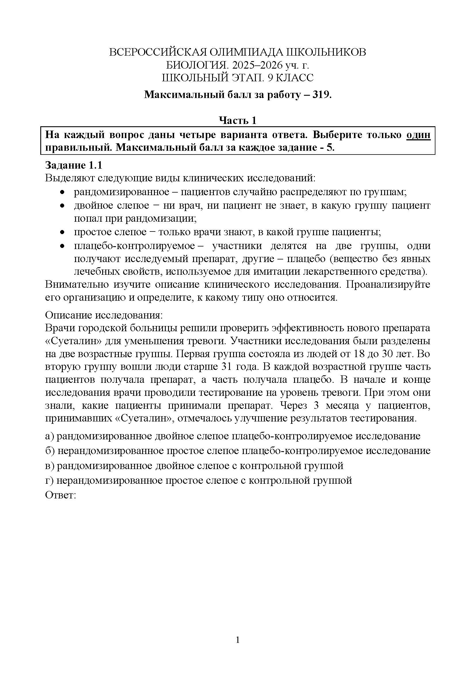 Участие в Олимпиаде для школьников дает возможность получить массу бонусов для ученического портфолио, а победителям финального этапа предоставляет право поступления в любые вузы без экзаменов. Для того, чтобы справиться с решением олимпиадных задач по биологии для 9 класса наиболее успешно, мы рекомендуем воспользоваться представленными у нас тренировочными материалами. Они представляют собой оригинальные вопросы прошлых лет и полностью отражают их сложность и структуру. Идущие с ними ответы на задания Олимпиады по биологии за 9 класс позволяют выполнять как подготовку с учителем или репетитором, так и самоподготовку.