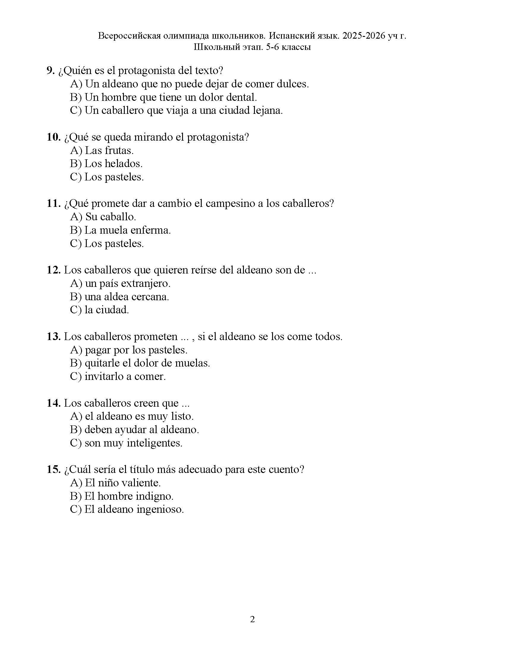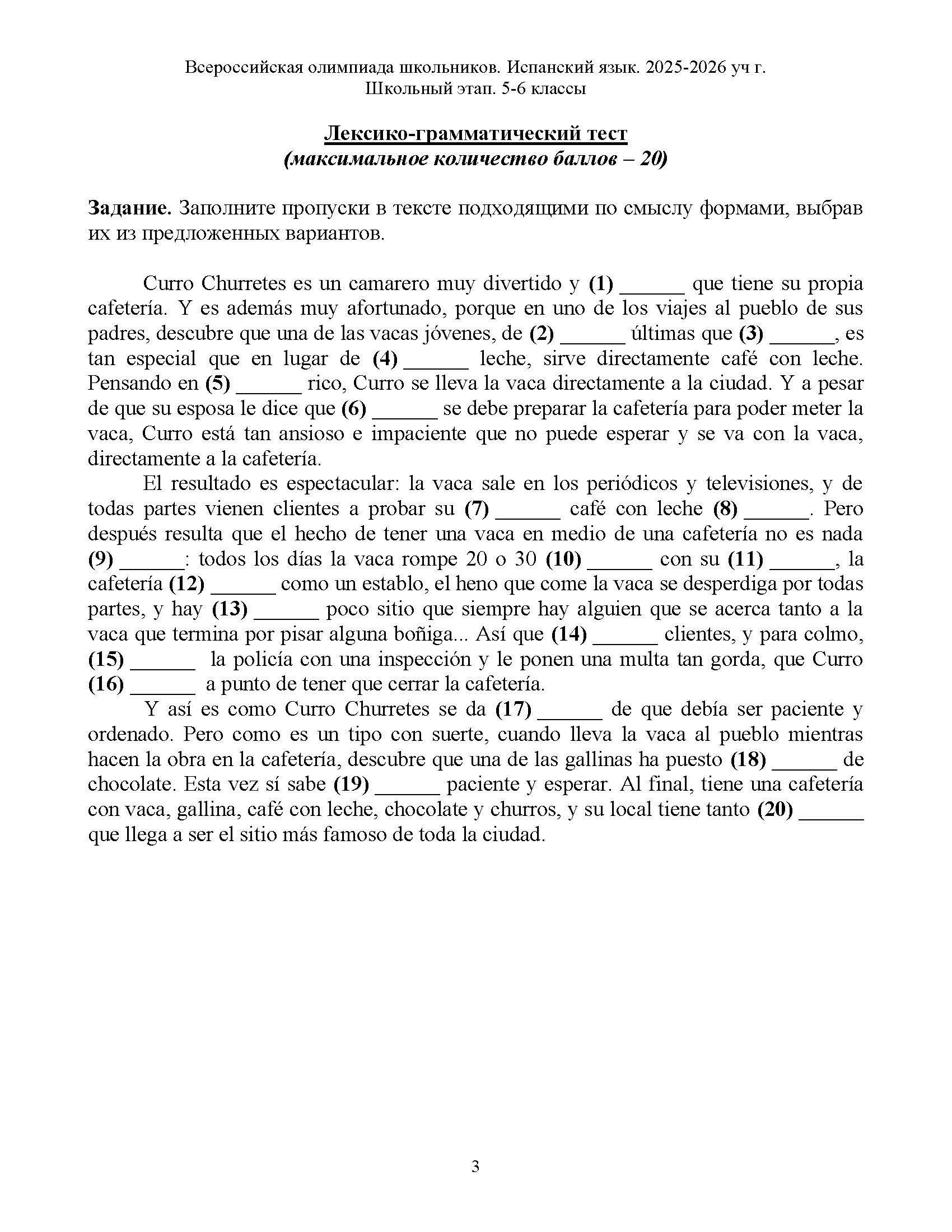 Всероссийская олимпиада школьников (ВсОШ) школьного этапа по Испанскому языку. Официальные задания, ответы и решения для 5 (пятого) класса (задания и ответы)