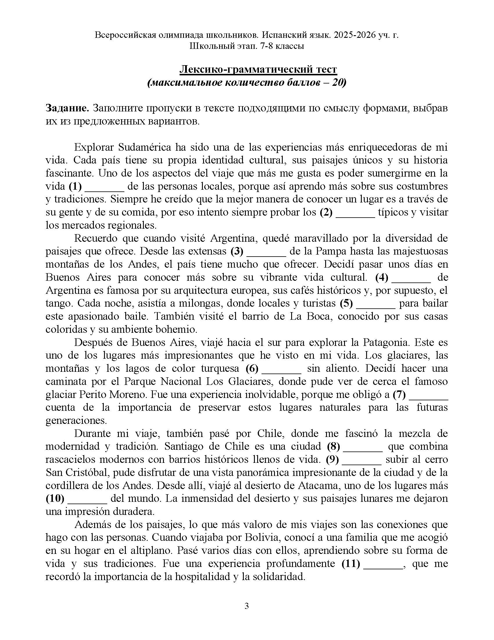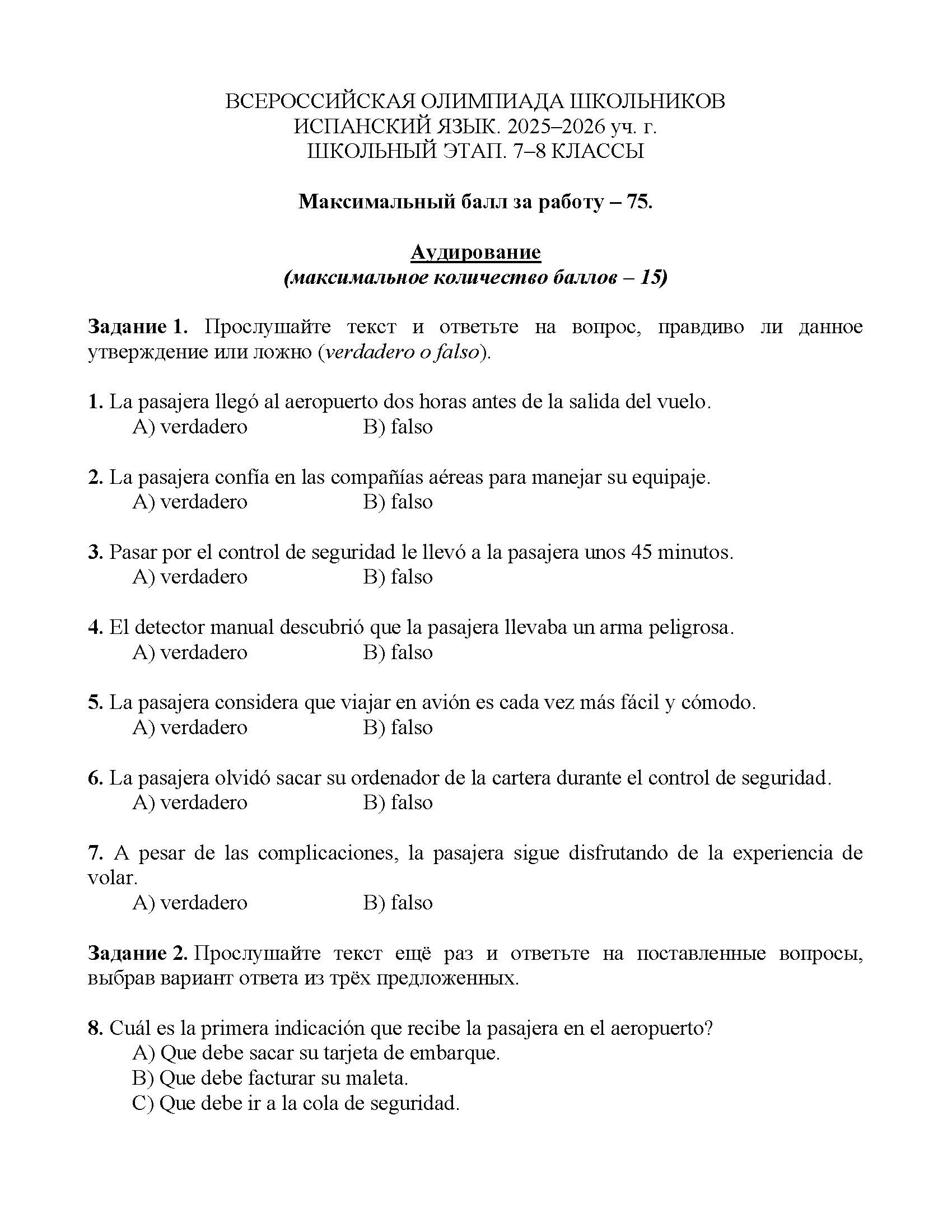 Задания, ответы и решения на этой страницы предоставлены в ознакомительных целях и лишь показывают специфику и структуру олимпиады по Испанскому языку. Вы можете использоваться ими как тренажёром для подготовки к предстоящей олимпиаде. Тренируйся, участвуй и побеждай!