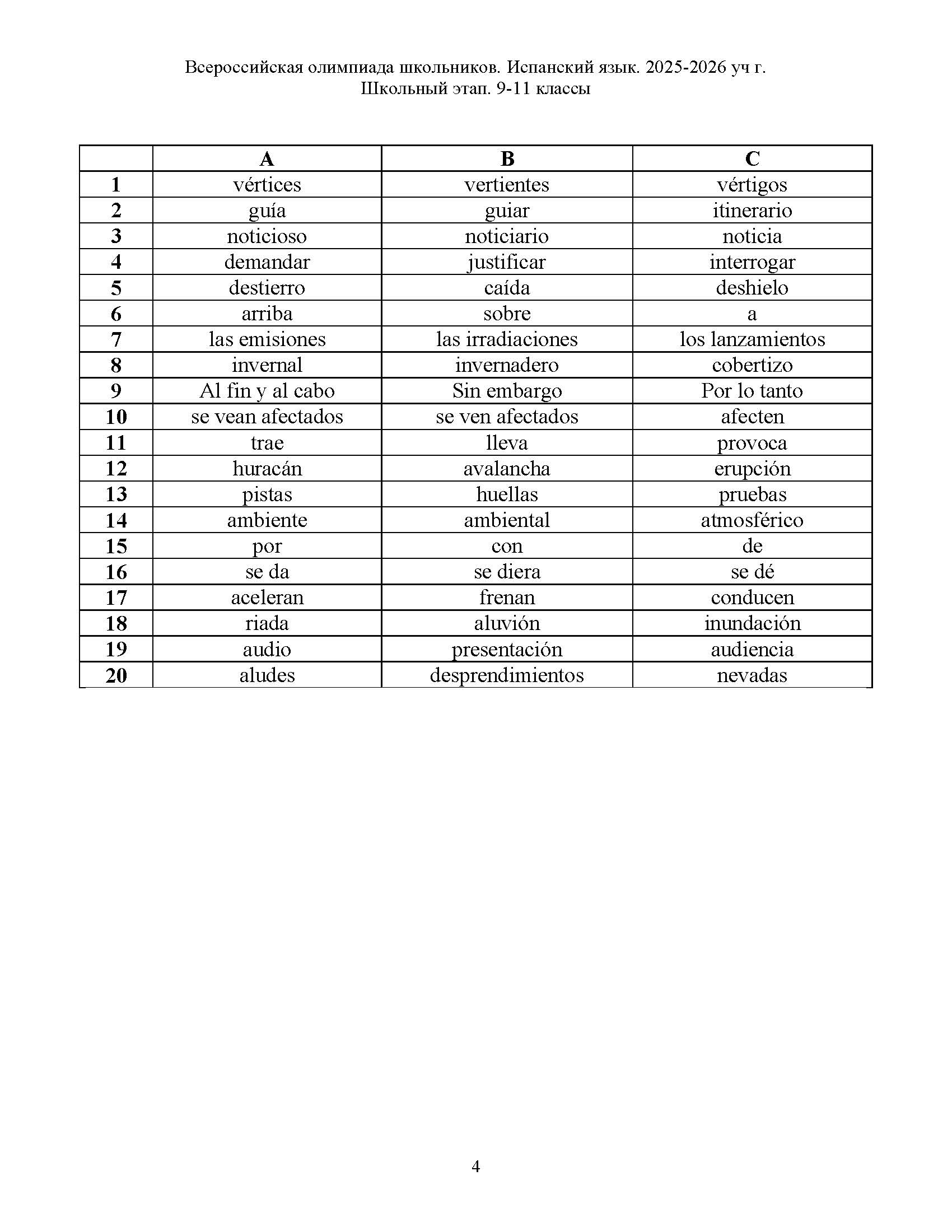 Всероссийская олимпиада школьников (ВсОШ) школьного этапа по Испанскому языку. Официальные задания, ответы и решения для 9 (девятого) класса (задания и ответы)