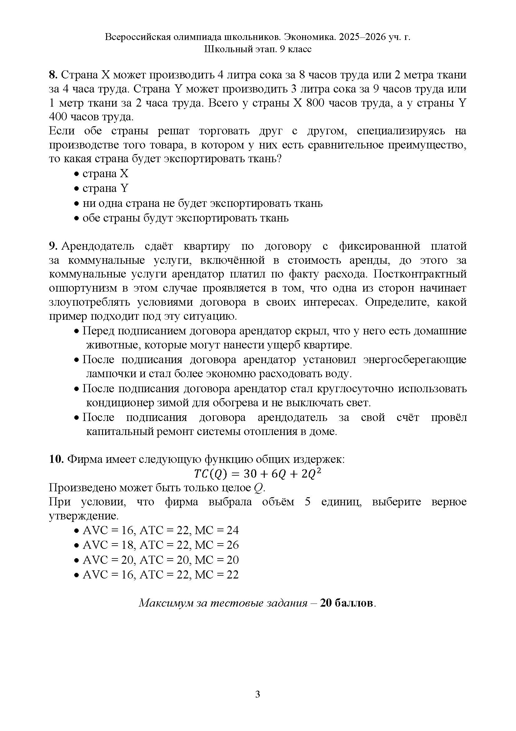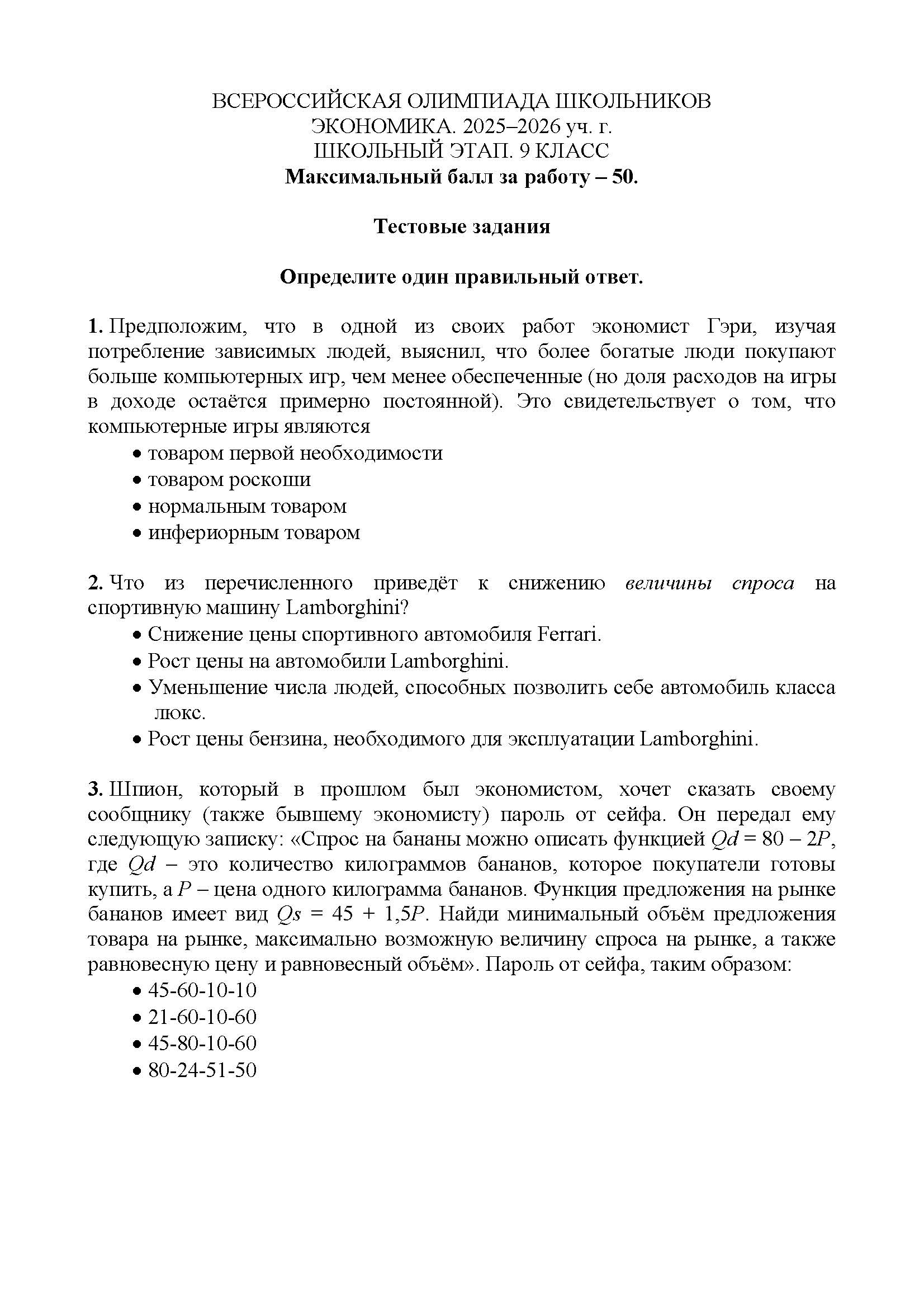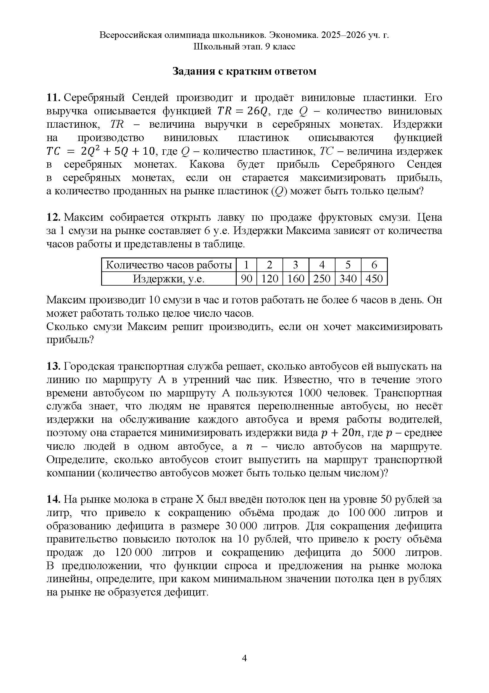 Школьная Олимпиада – это конкурс, предоставляющий победителям большие бонусы при последующем поступлении в техникумы или вузы. Учащиеся, занявшие первые места, принимаются на профильные отделения вне общей очереди и без экзаменов. Для того, чтобы повысить свои шансы на успех и решить задания Олимпиады по экономике за 9 класс наиболее успешно, мы советуем использовать представленные на нашем сайте материалы. Они являются оригиналами работ прошлых лет и содержат всю необходимую информацию, включая официальные ответы. Готовые решения, идущие вместе с олимпиадными задачами по экономике для 9 класса, позволяют выполнять подготовку самостоятельно.