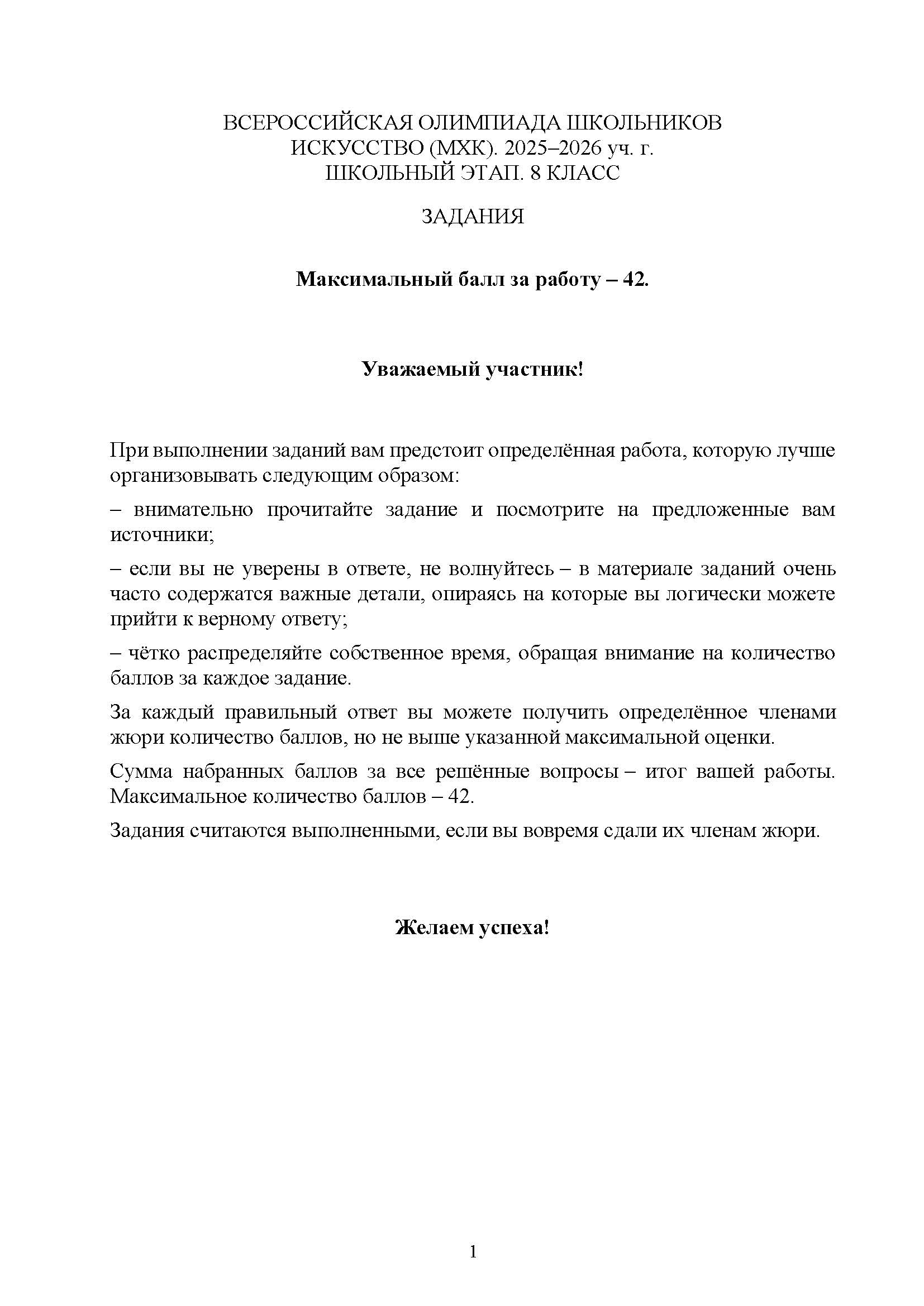 Всероссийская олимпиада школьников (ВсОШ) школьного этапа по МХК. Официальные задания, ответы и решения для 8 (восьмого) класса (задания и ответы)