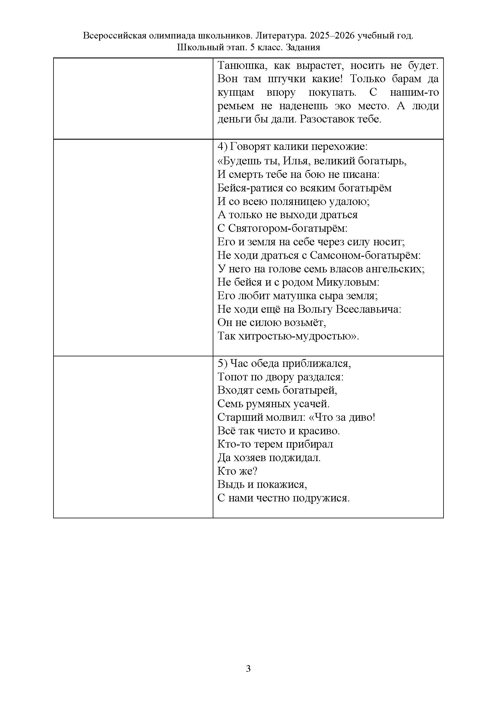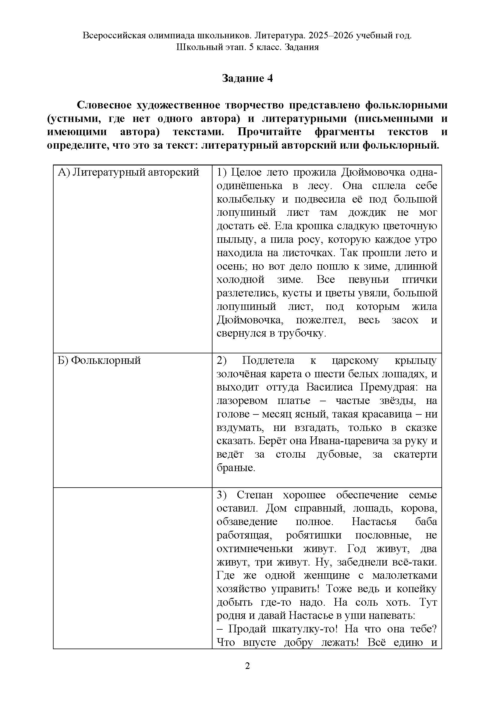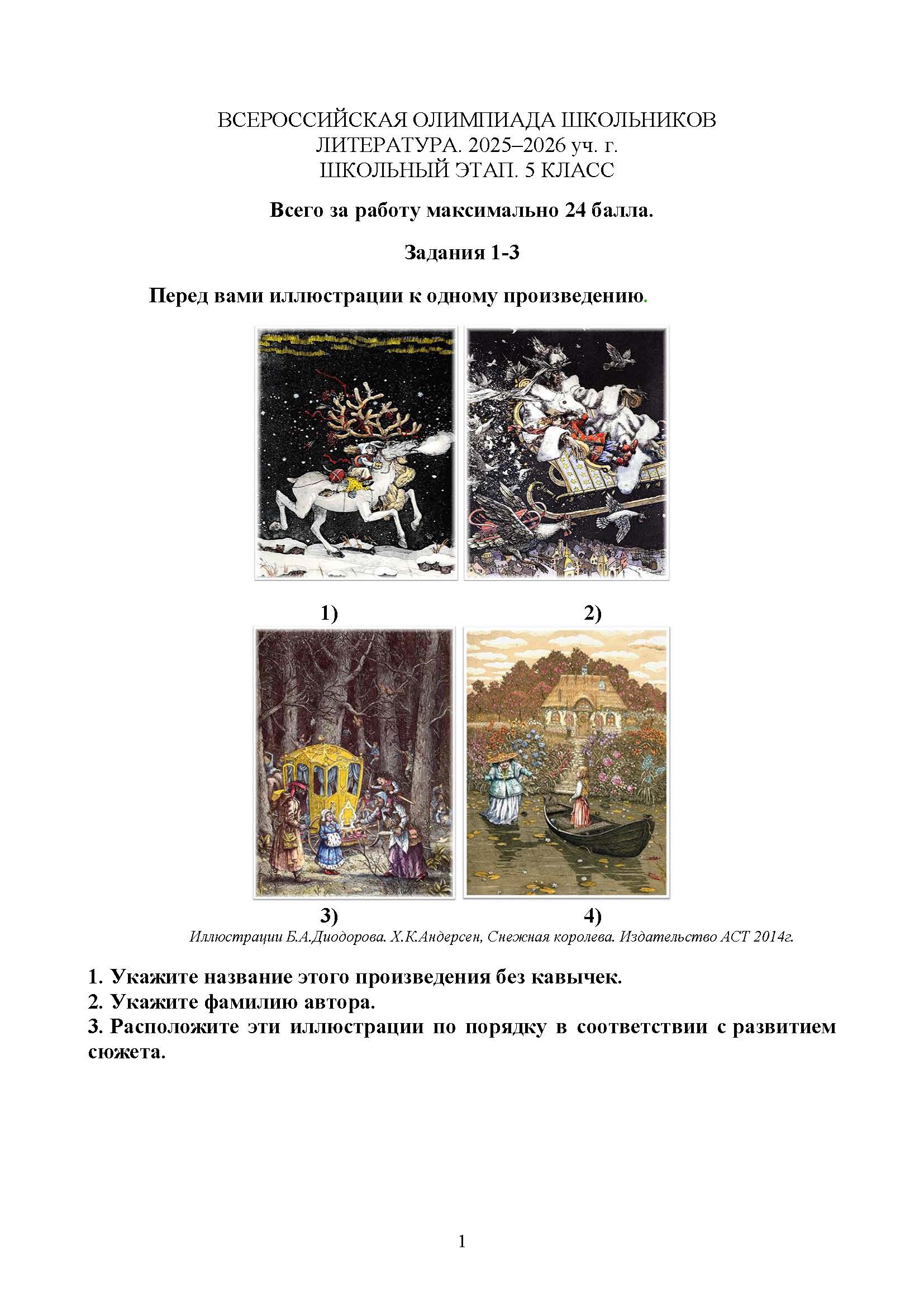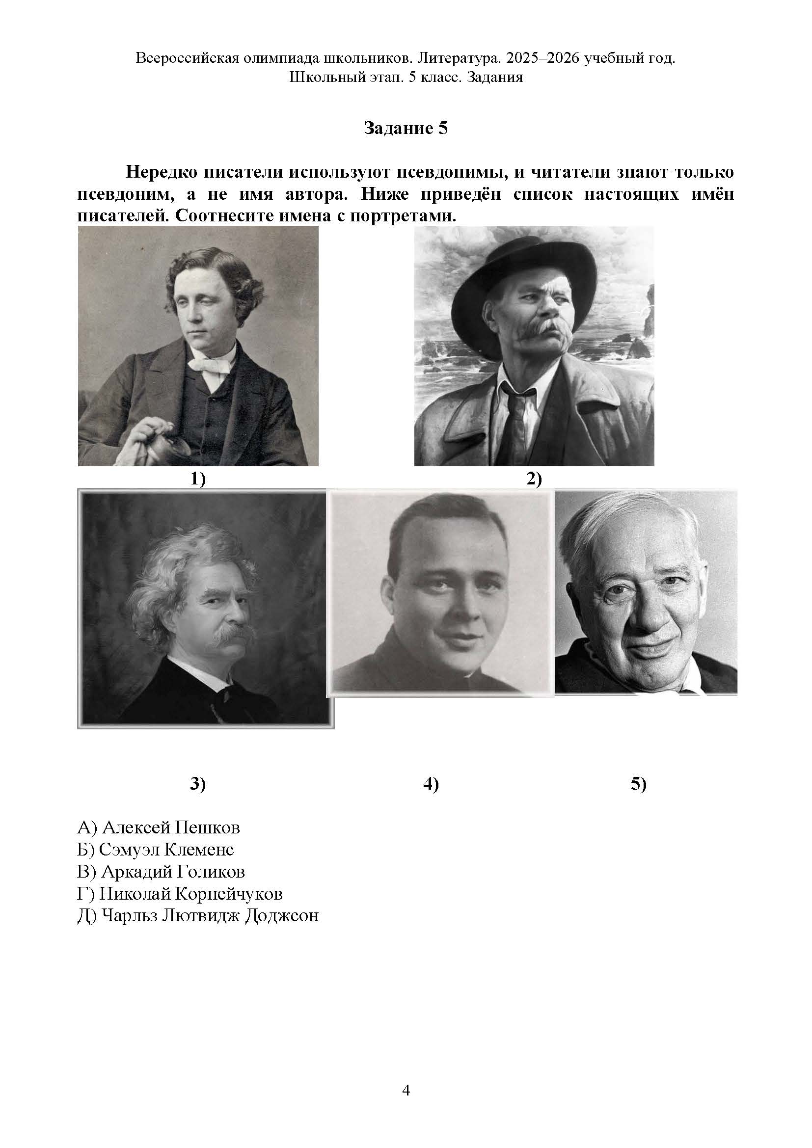Всероссийская олимпиада школьников (ВсОШ) школьного этапа по Литературе. Официальные задания, ответы и решения для 5 (пятого) класса (задания и ответы)