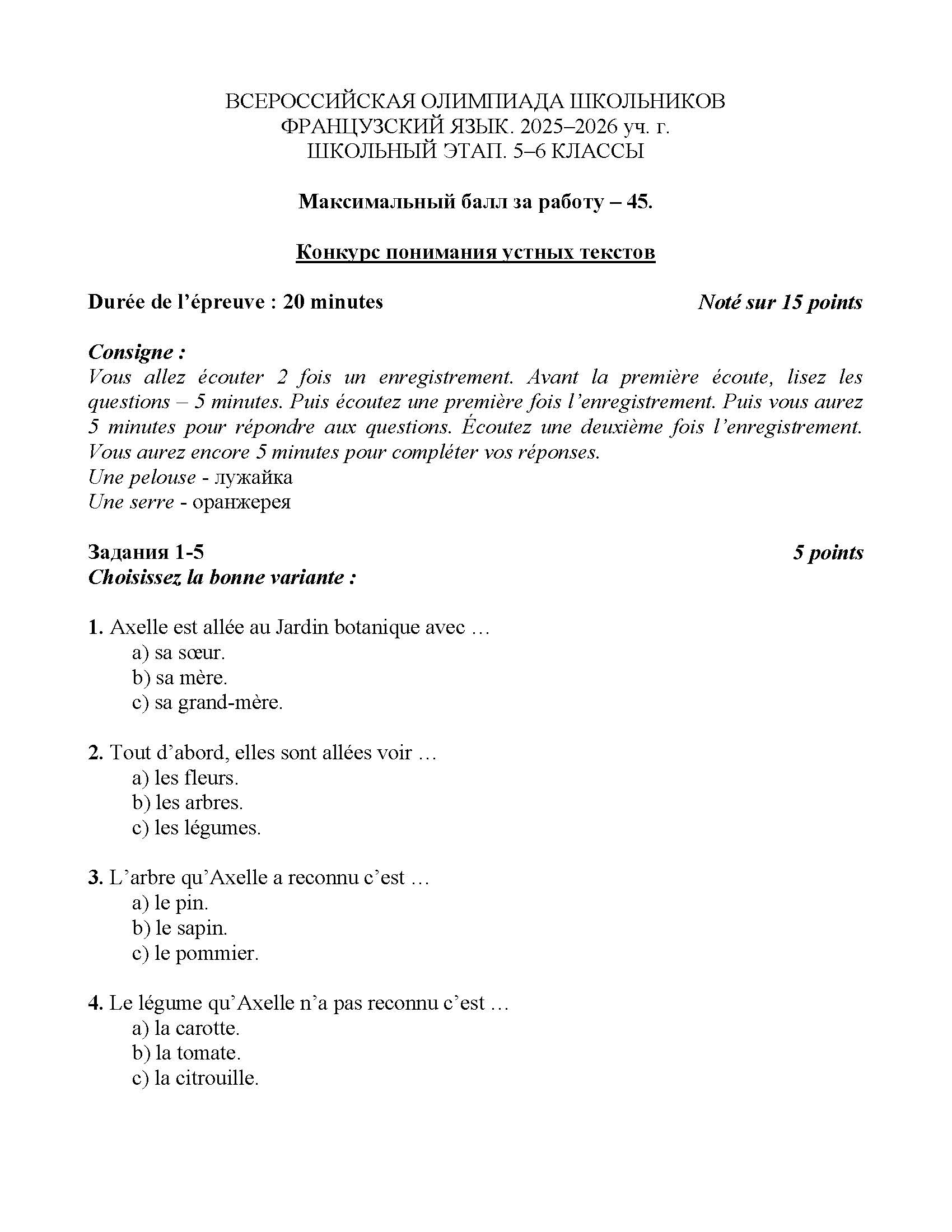 Задания, ответы и решения на этой страницы предоставлены в ознакомительных целях и лишь показывают специфику и структуру олимпиады по Французскому языку. Вы можете использоваться ими как тренажёром для подготовки к предстоящей олимпиаде. Тренируйся, участвуй и побеждай!