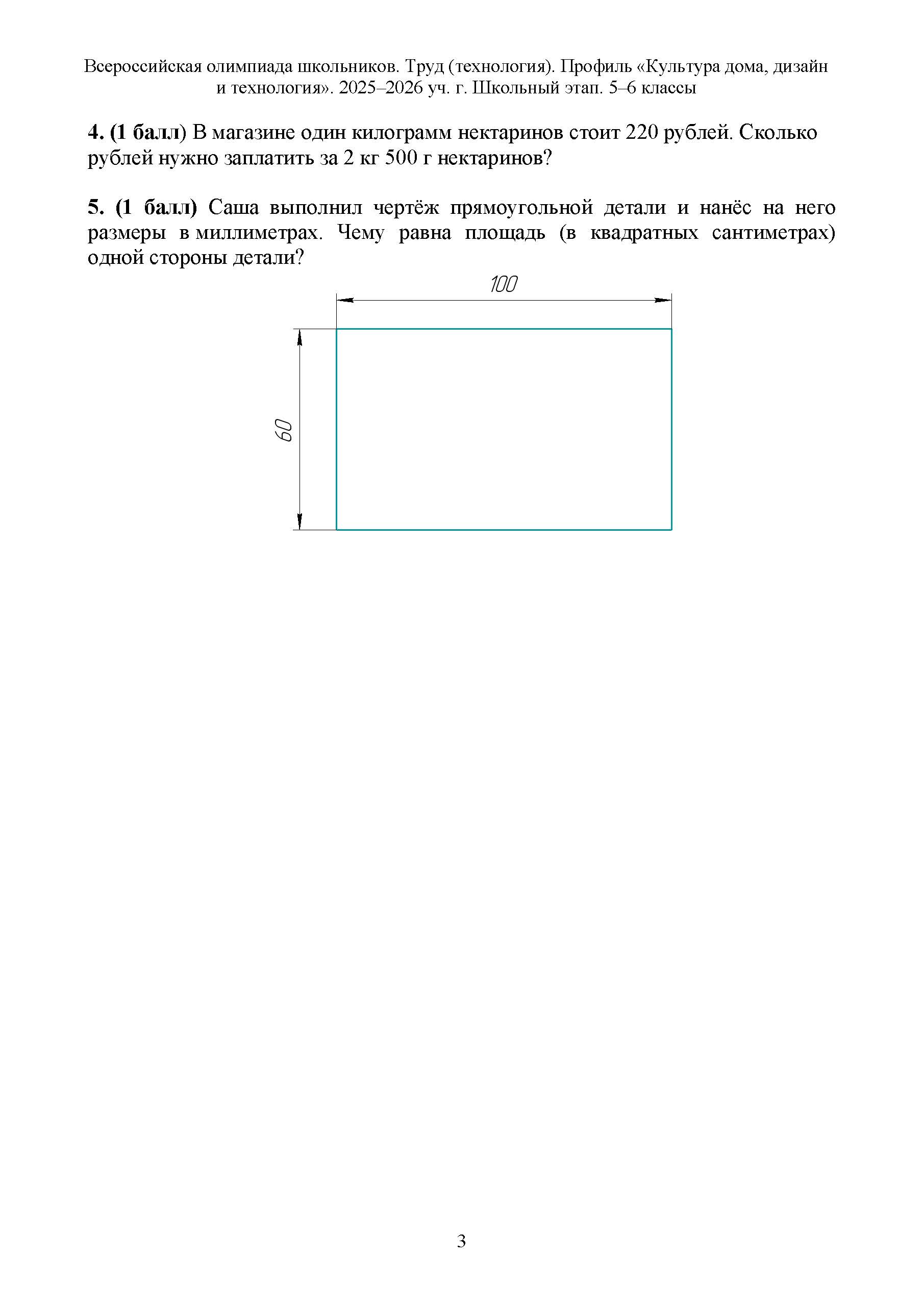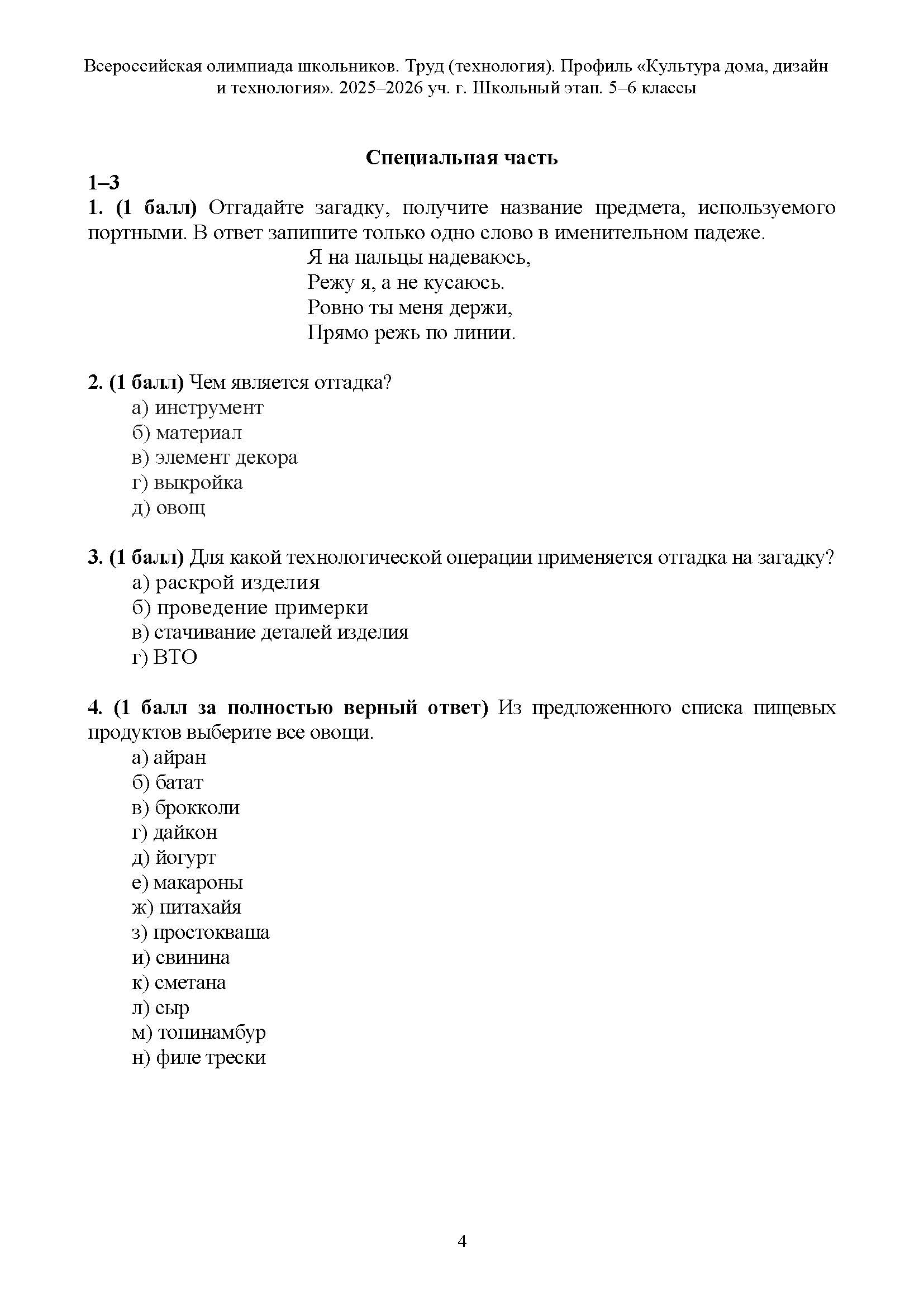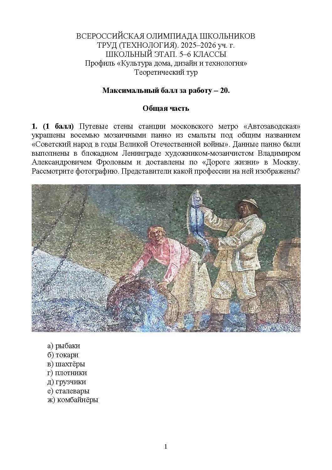 Всероссийская олимпиада школьников (ВсОШ) школьного этапа по Технологии. Официальные задания, ответы и решения для 6 (шестого) класса (задания и ответы)