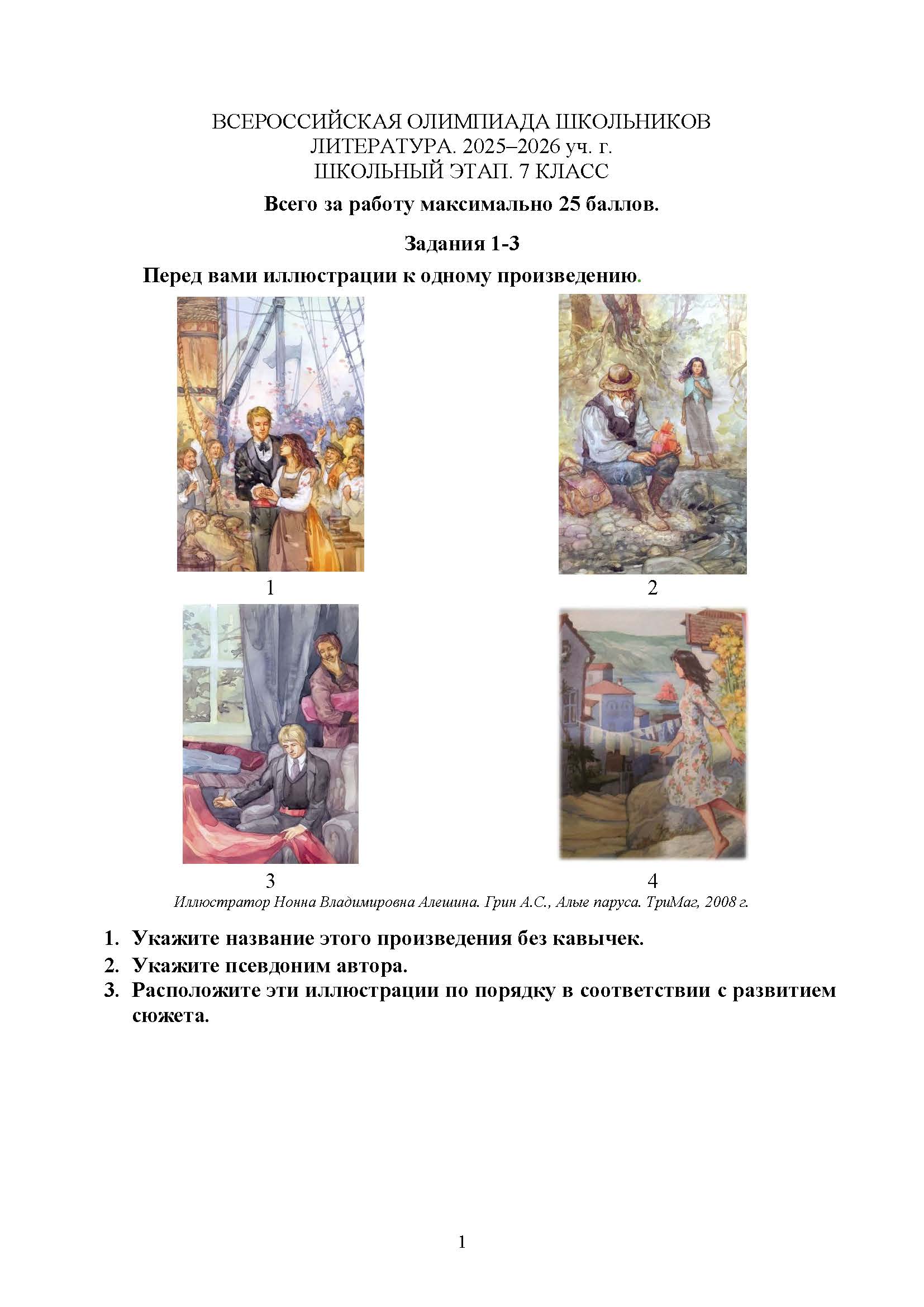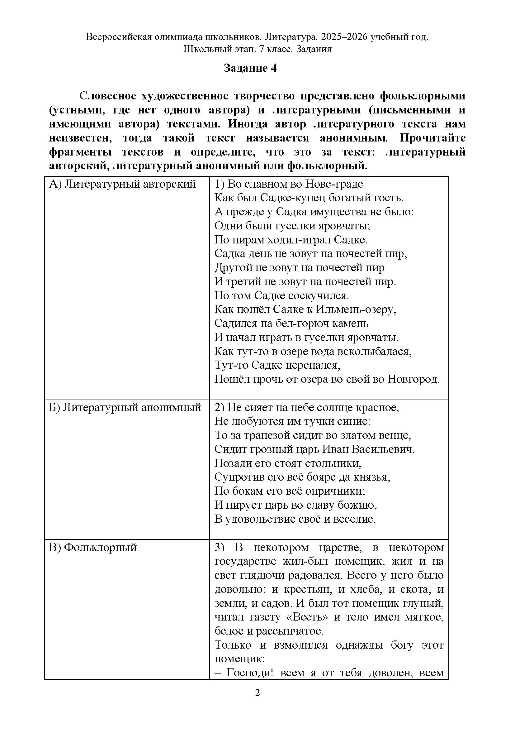 Всероссийская олимпиада школьников (ВсОШ) школьного этапа по Литературе. Официальные задания, ответы и решения для 7 (седьмого) класса (задания и ответы)