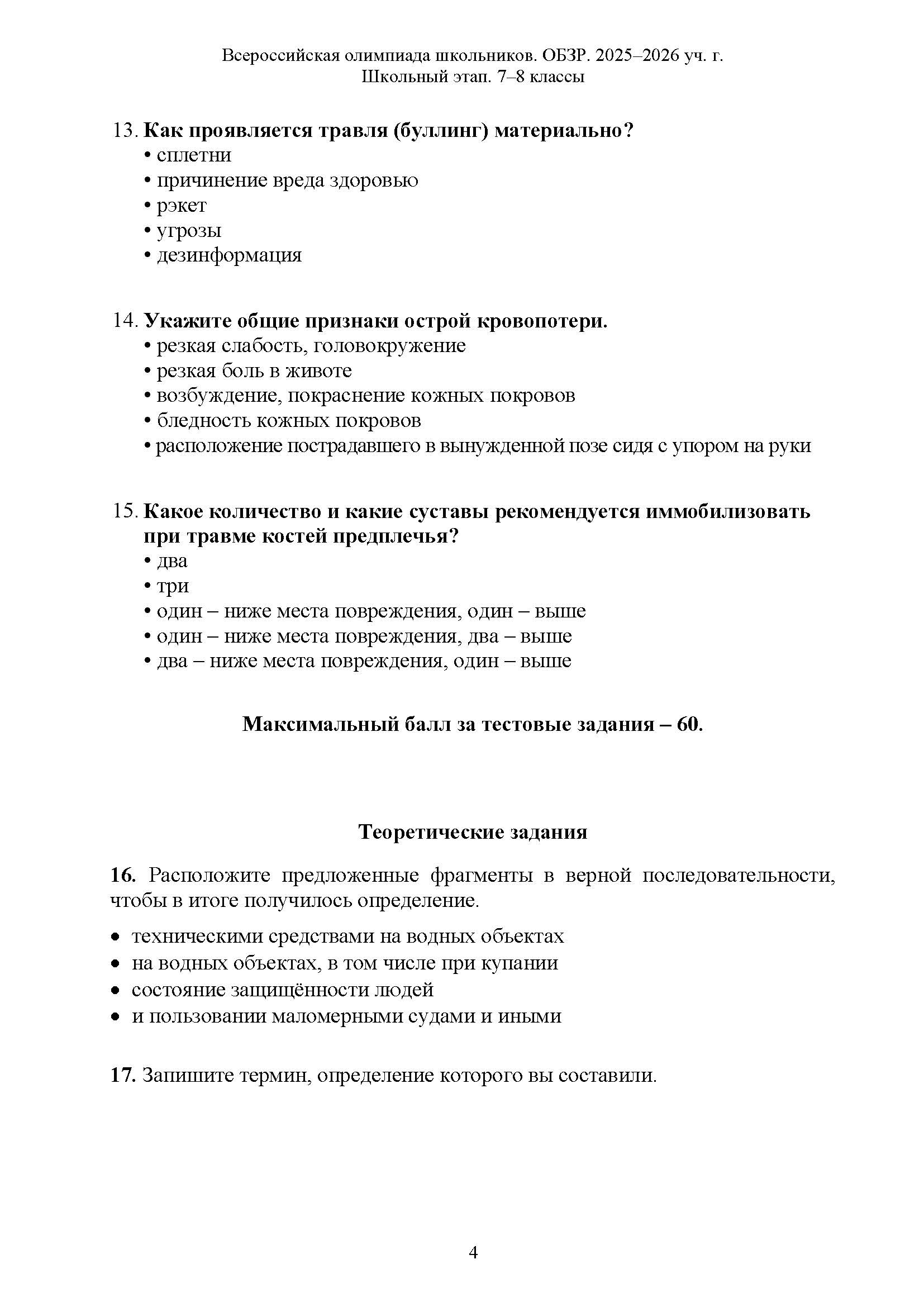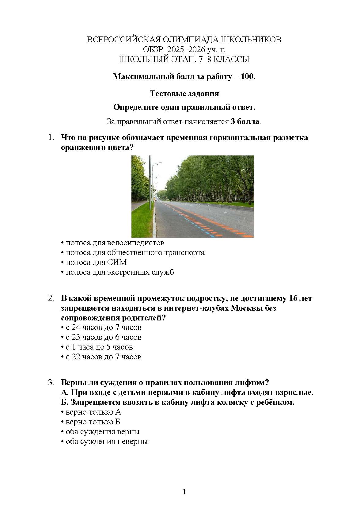 Всероссийская олимпиада школьников (ВсОШ) школьного этапа по ОБЗР. Официальные задания, ответы и решения для 7 (седьмого) класса (задания и ответы)
