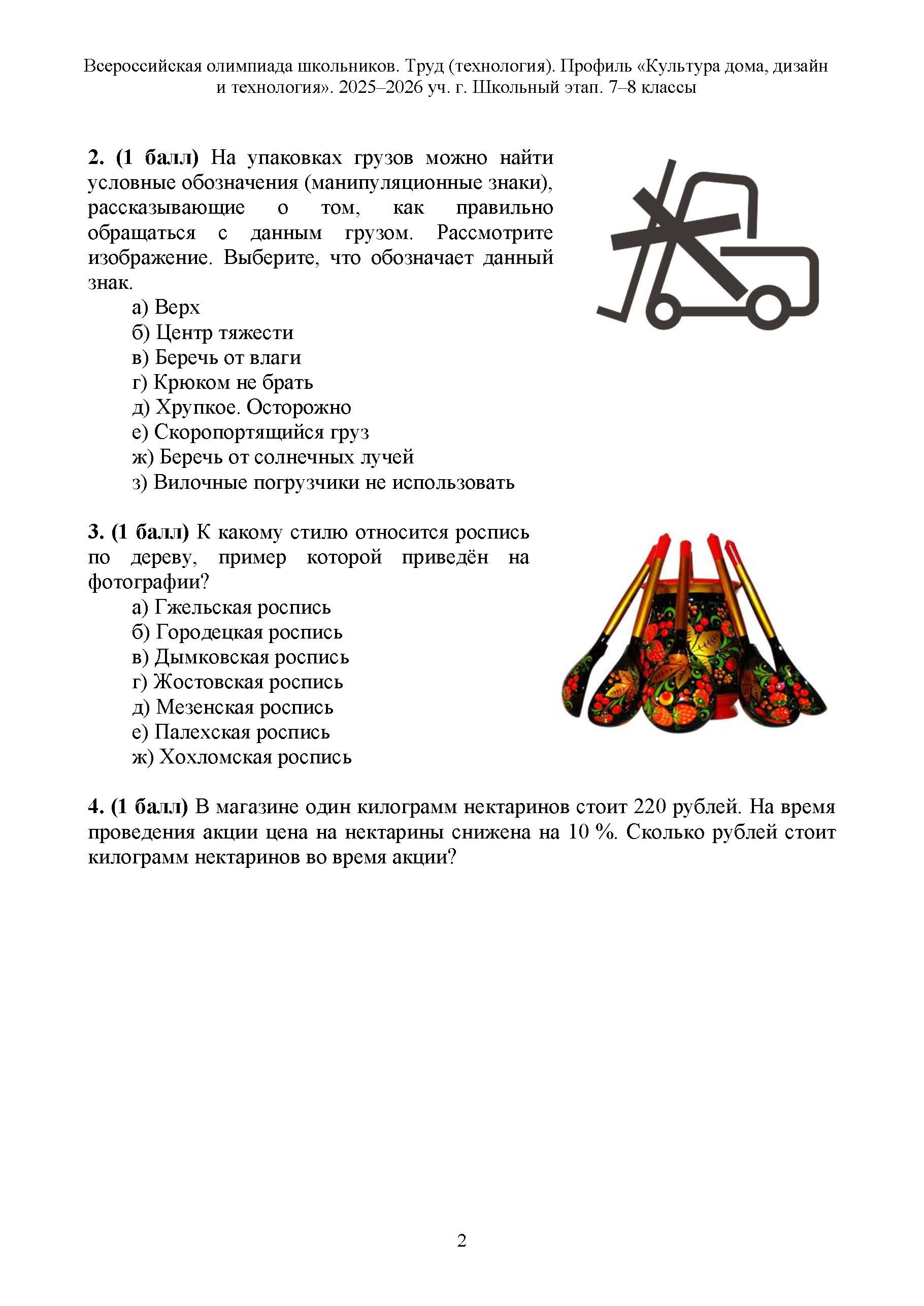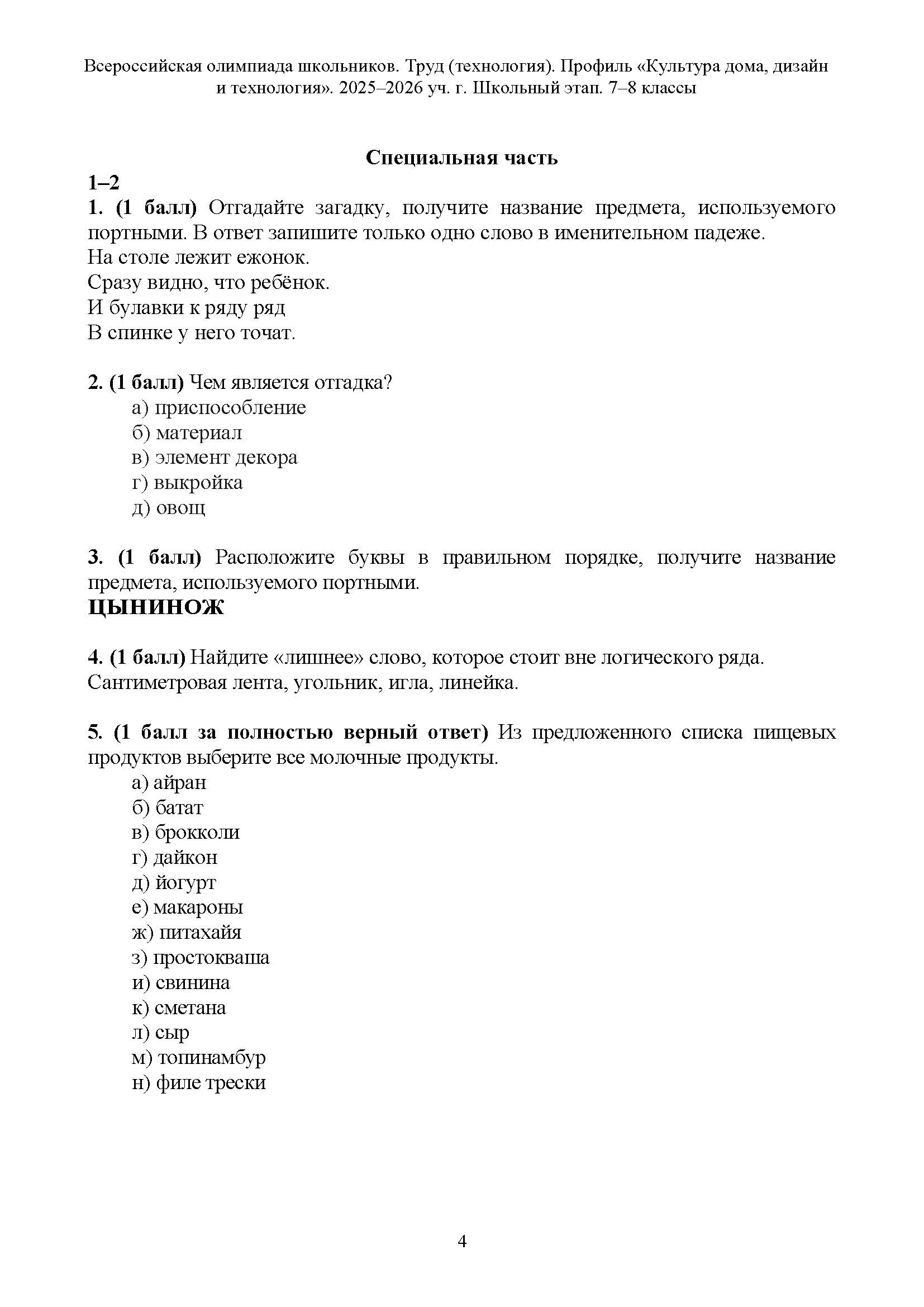 Всероссийская олимпиада школьников (ВсОШ) школьного этапа по Технологии. Официальные задания, ответы и решения для 7 (седьмого) класса (задания и ответы)