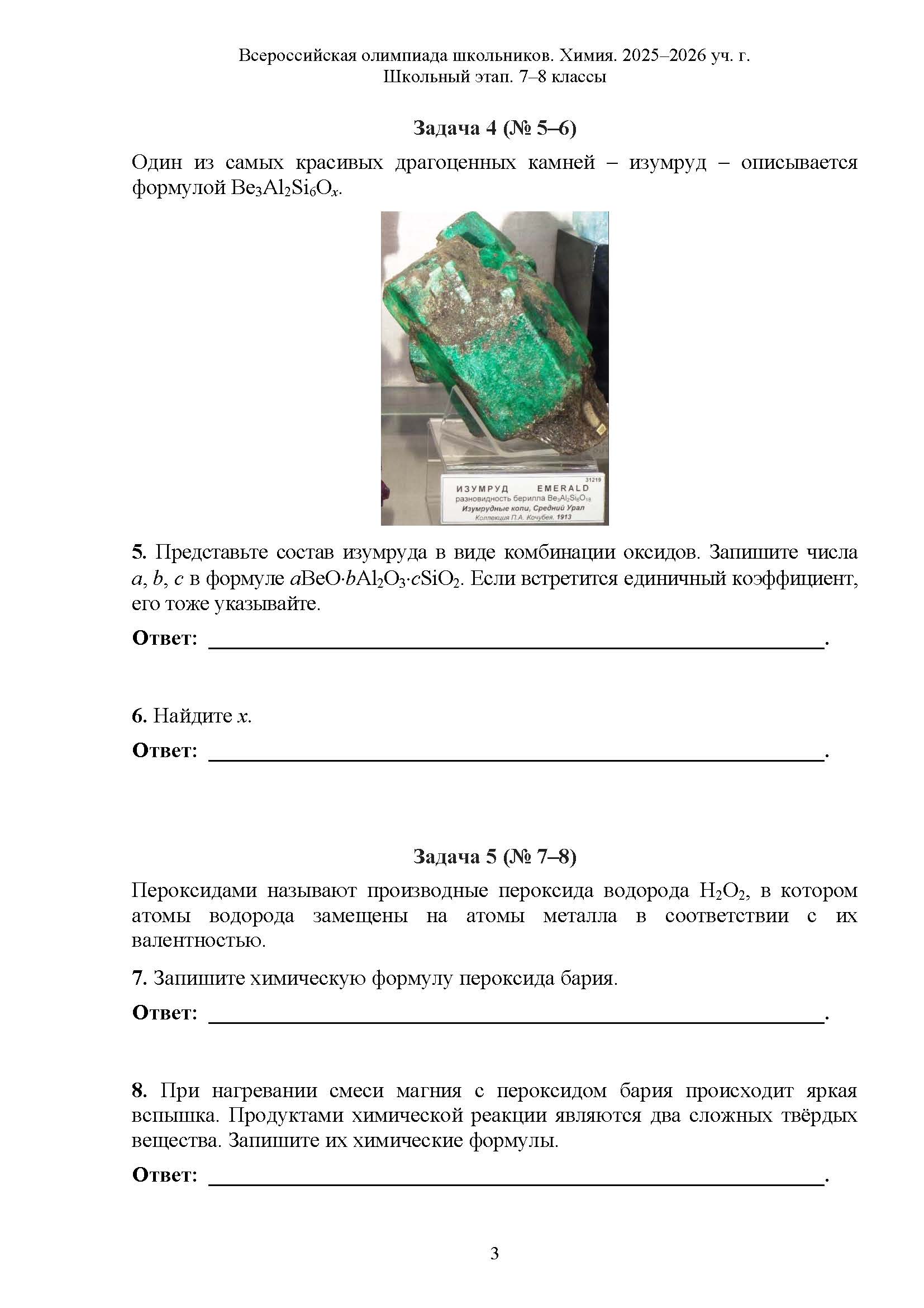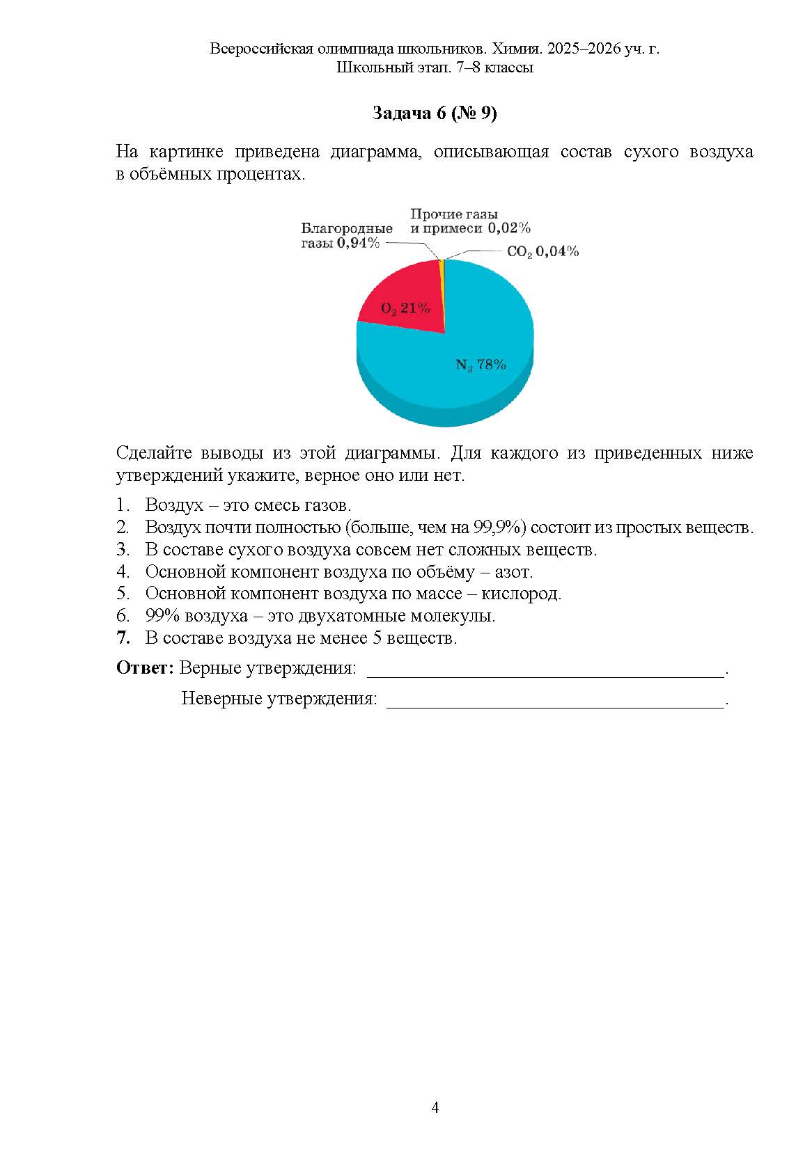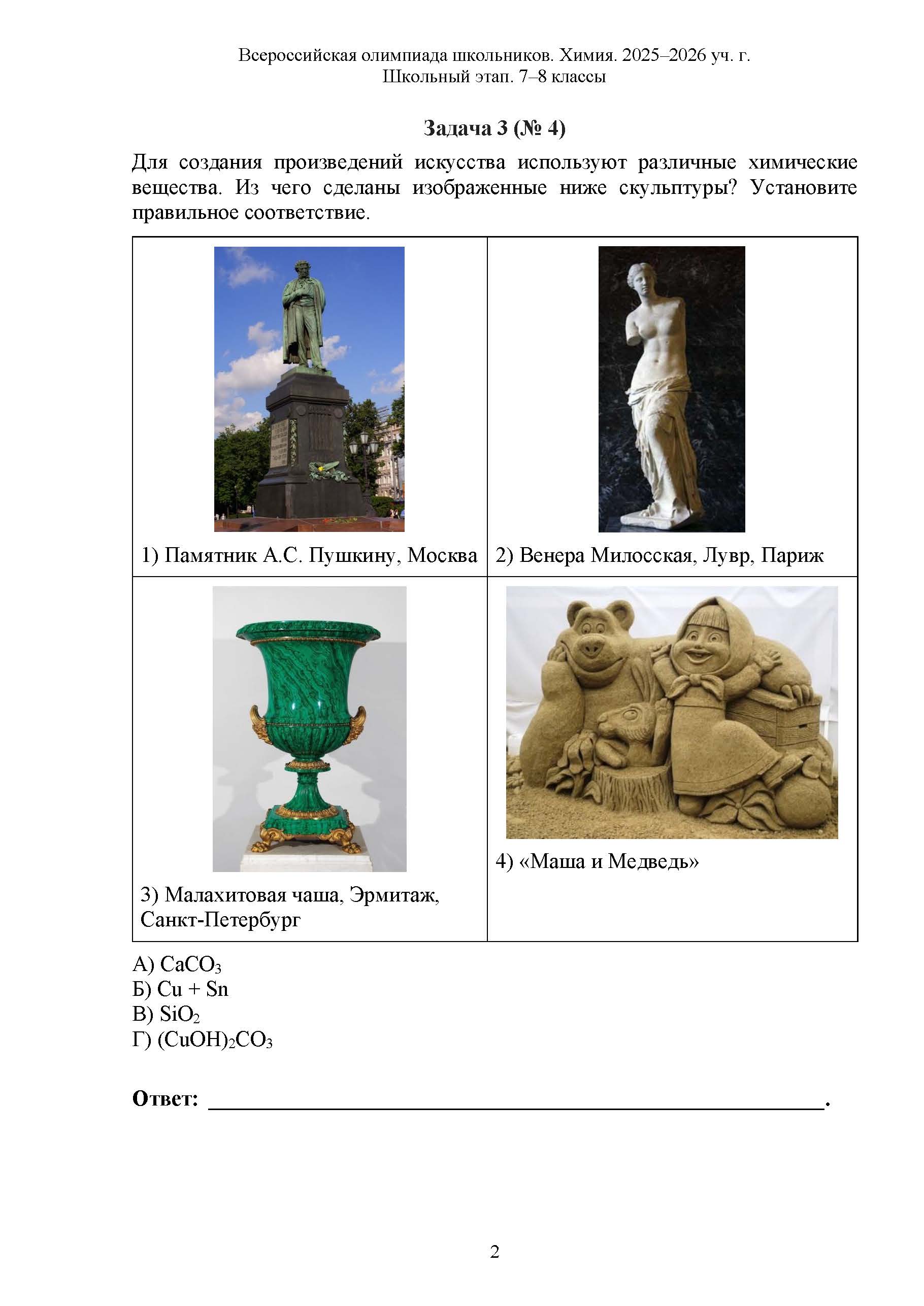 Всероссийская олимпиада школьников (ВсОШ) школьного этапа по Химии. Официальные задания, ответы и решения для 7 (седьмого) класса (задания и ответы)