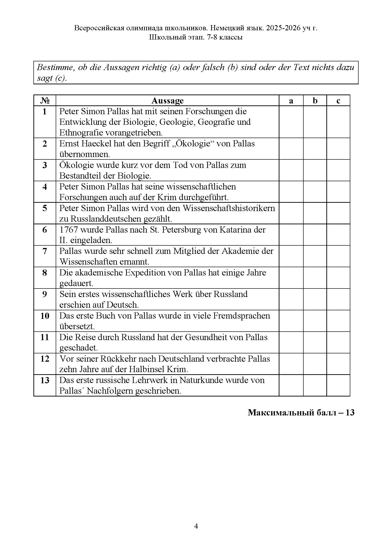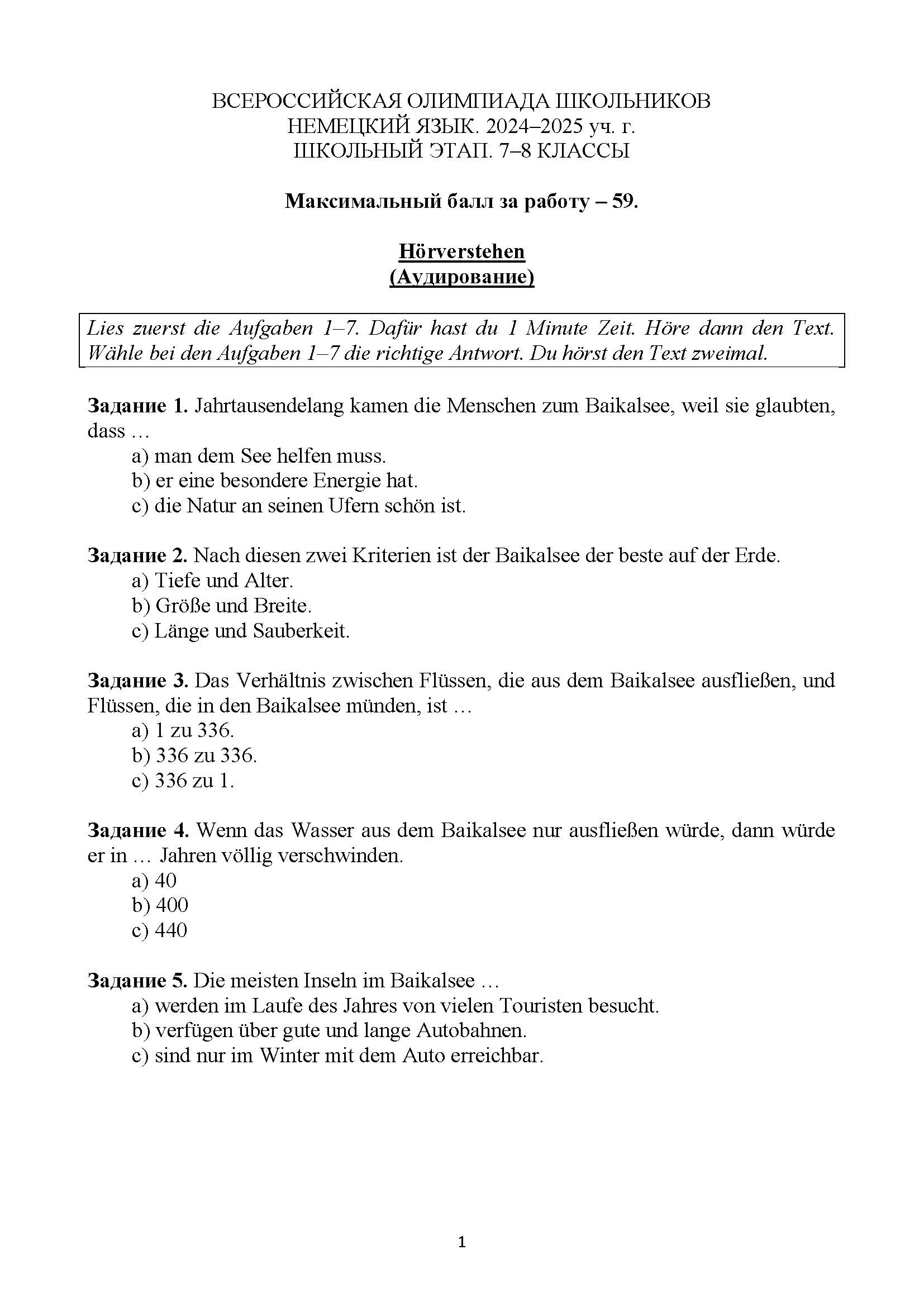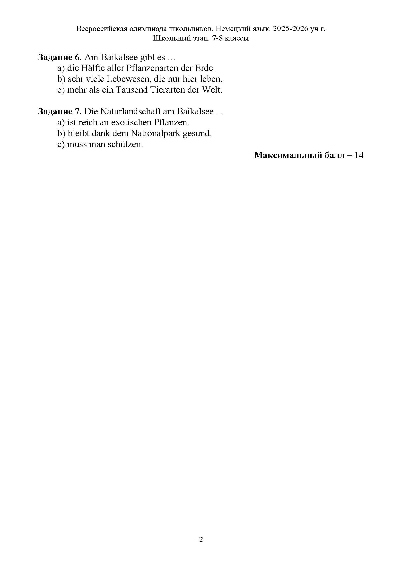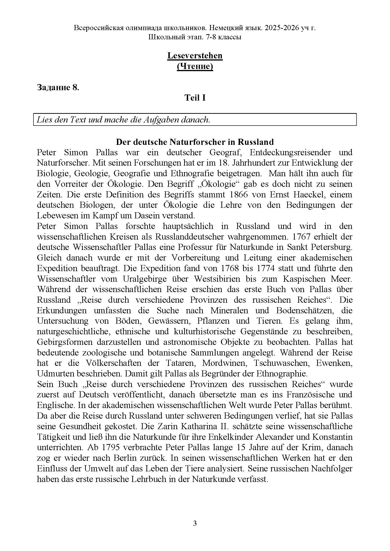 Всероссийская олимпиада школьников (ВсОШ) школьного этапа по Немецкому языку. Официальные задания, ответы и решения для 8 (восьмого) класса (задания и ответы)