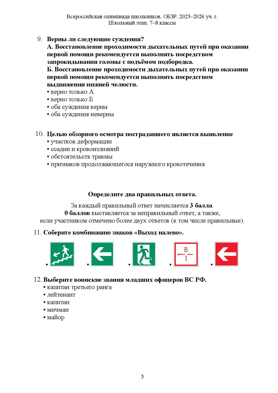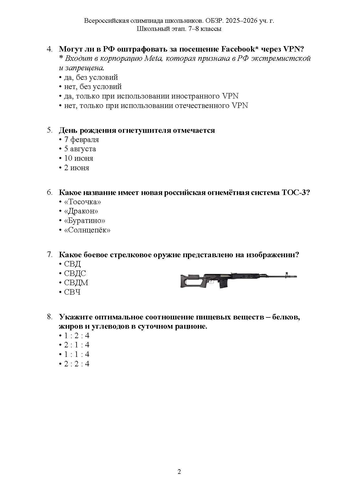 Всероссийская олимпиада школьников (ВсОШ) школьного этапа по ОБЗР. Официальные задания, ответы и решения для 8 (восьмого) класса (задания и ответы)