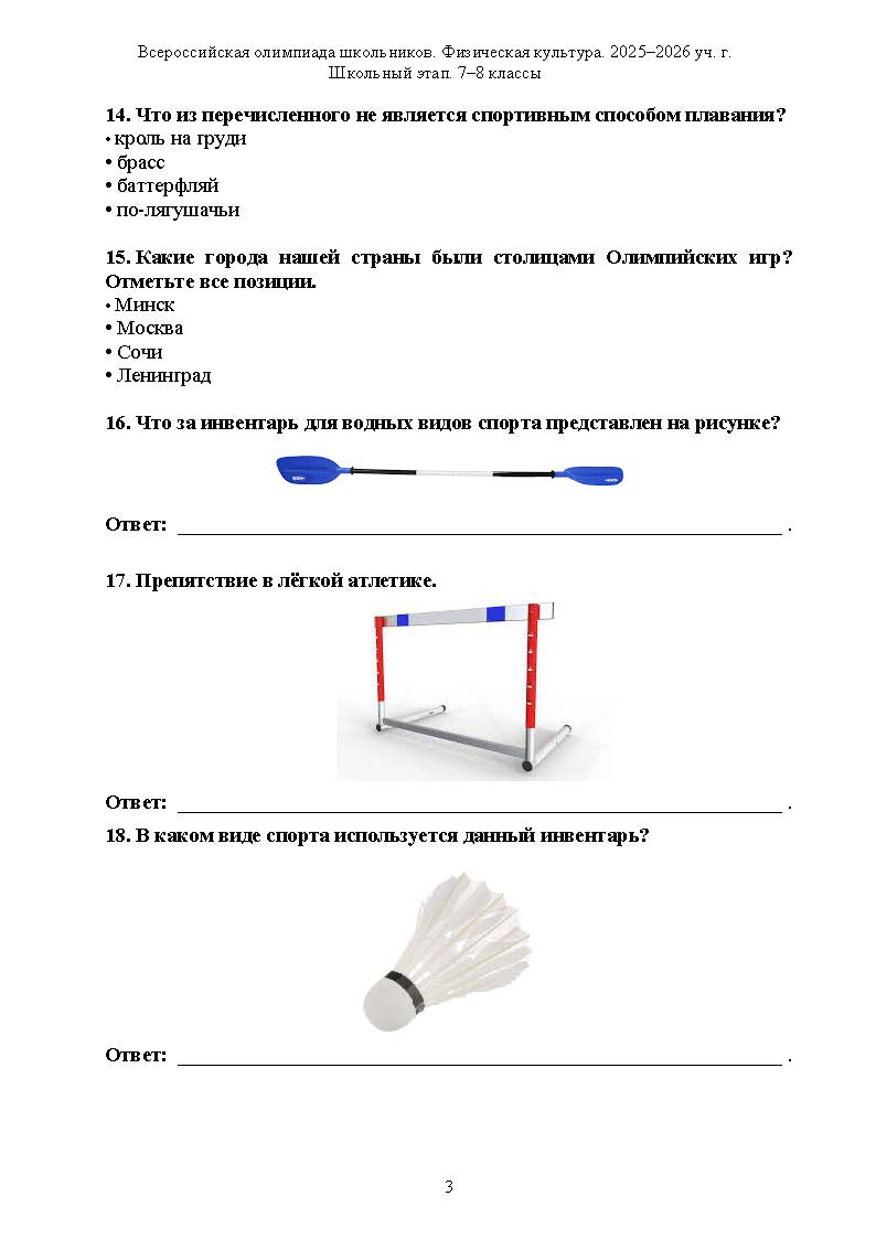 Всероссийская олимпиада школьников (ВсОШ) школьного этапа по Физической культуре. Официальные задания, ответы и решения для 8 (восьмого) класса (задания и ответы)