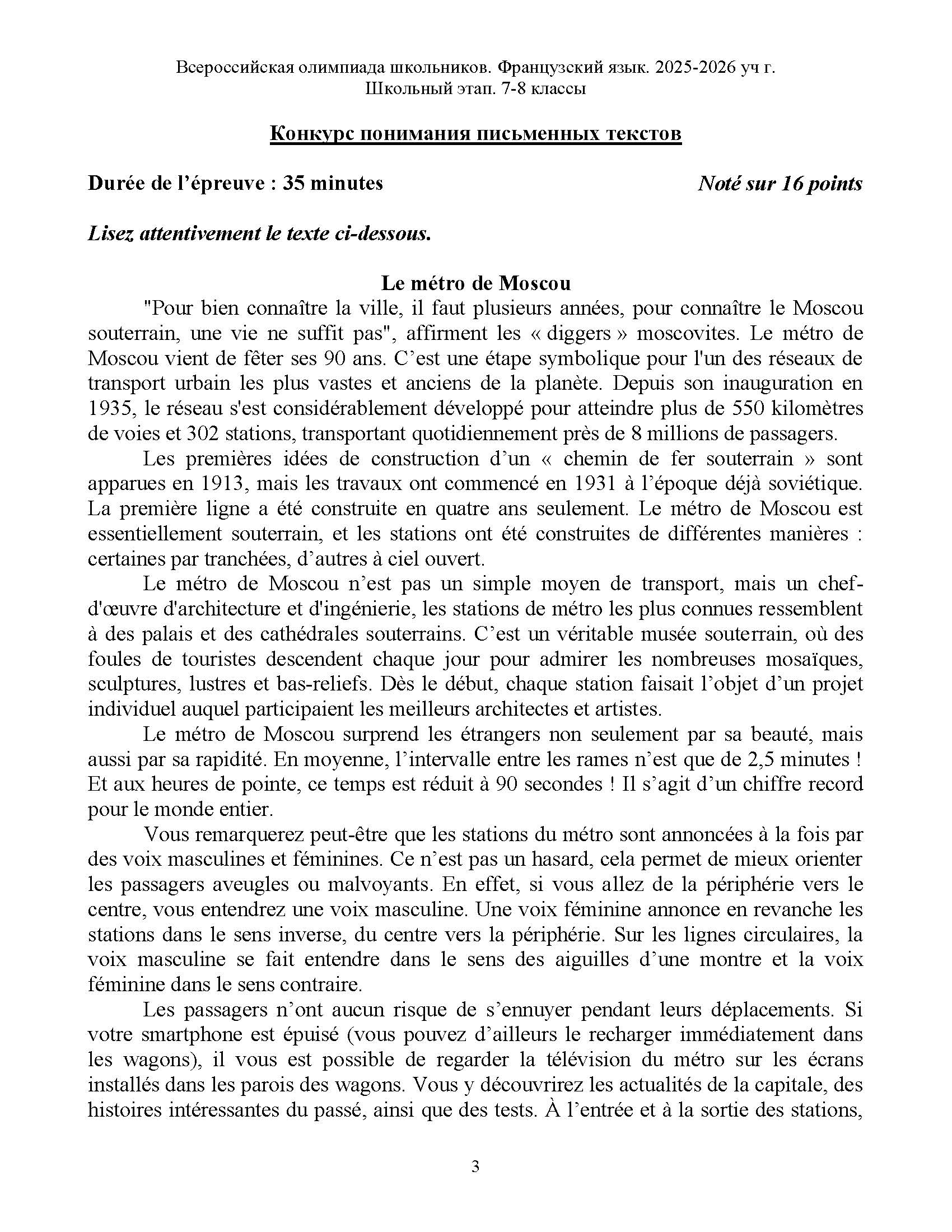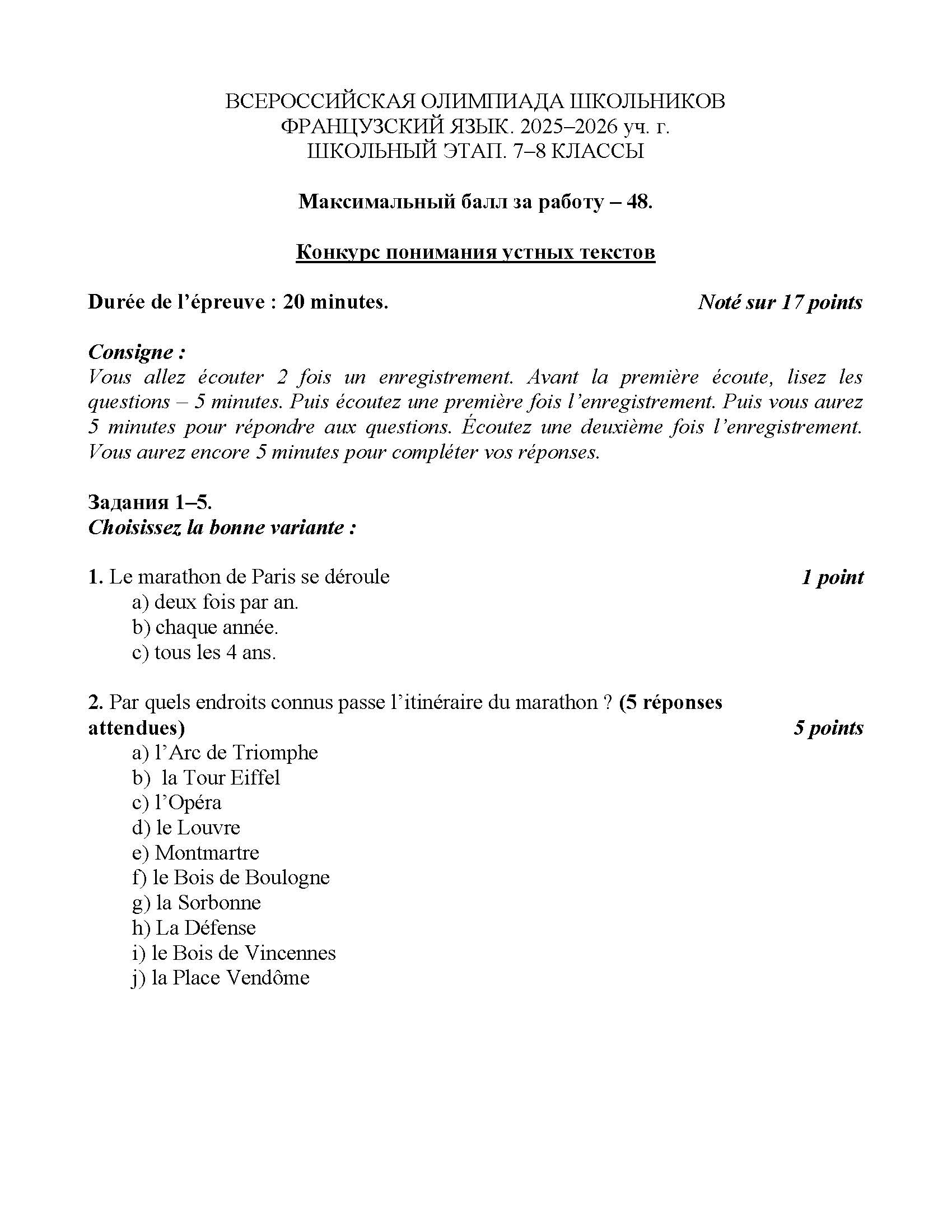 Всероссийская олимпиада школьников (ВсОШ) школьного этапа по Французскому языку. Официальные задания, ответы и решения для 8 (восьмого) класса (задания и ответы)