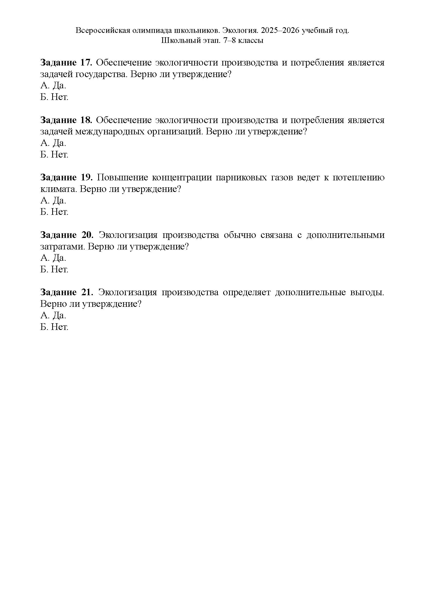 Всероссийская олимпиада школьников (ВсОШ) школьного этапа по Экологии. Официальные задания, ответы и решения для 7 (седьмого) класса (задания и ответы)