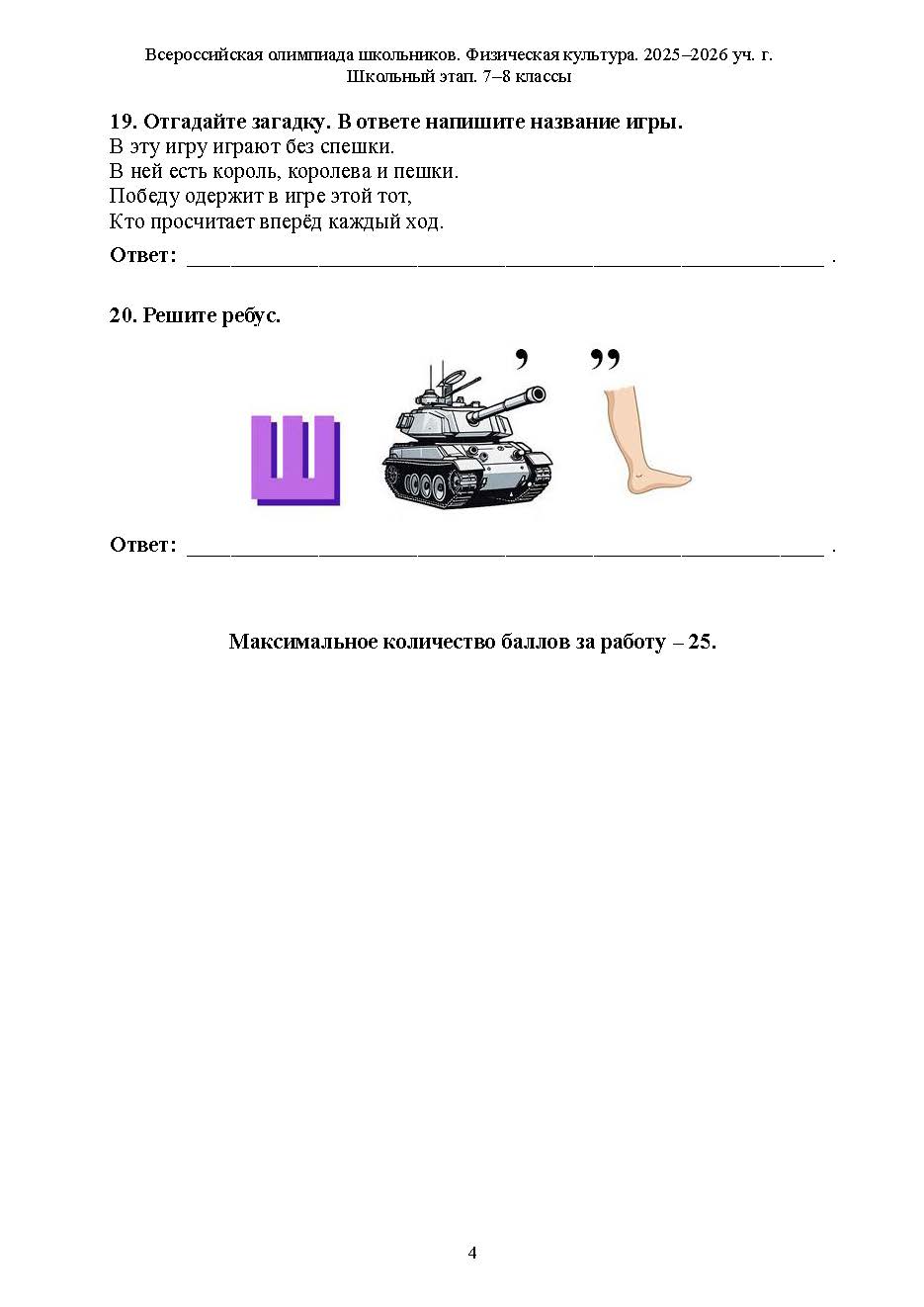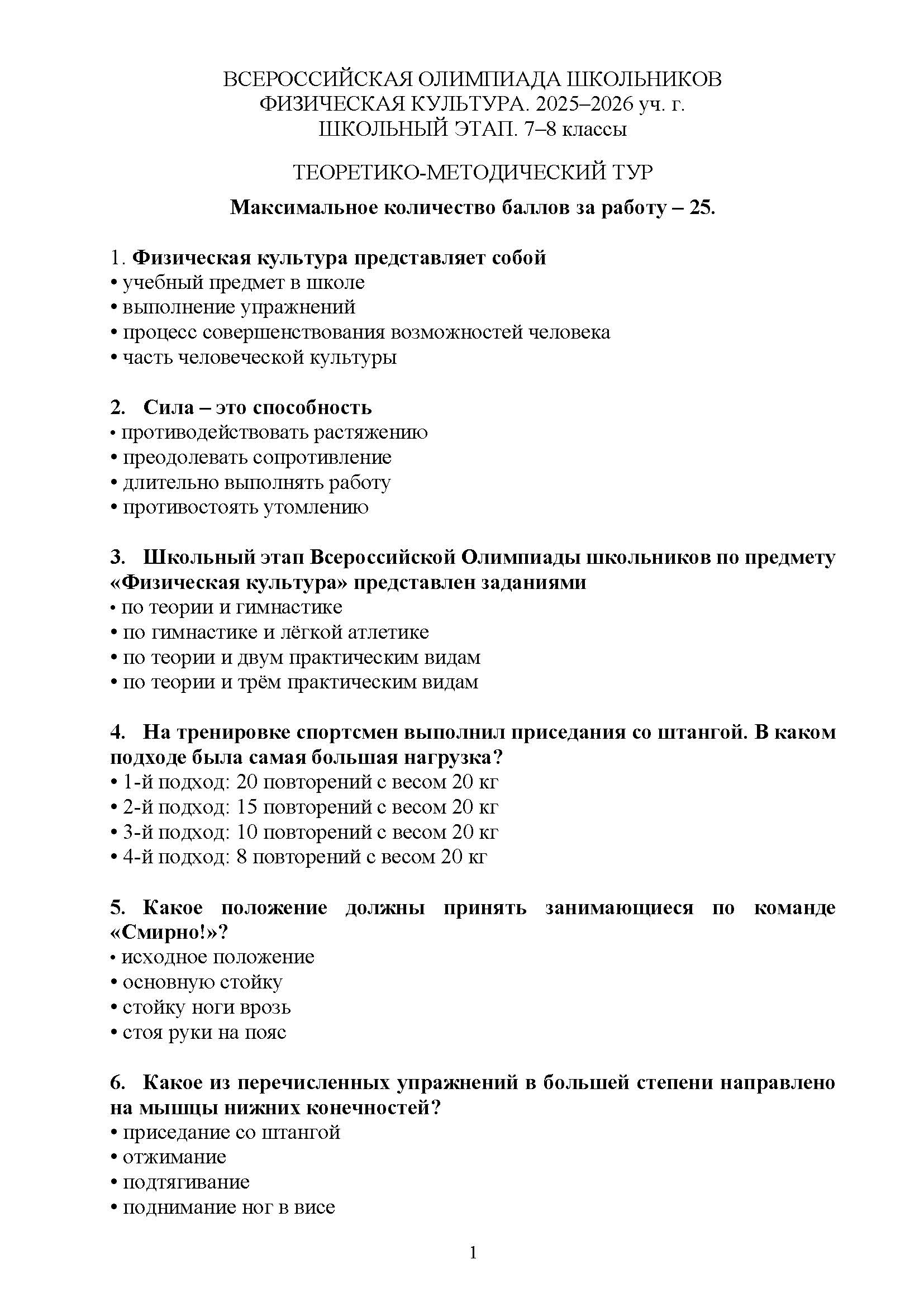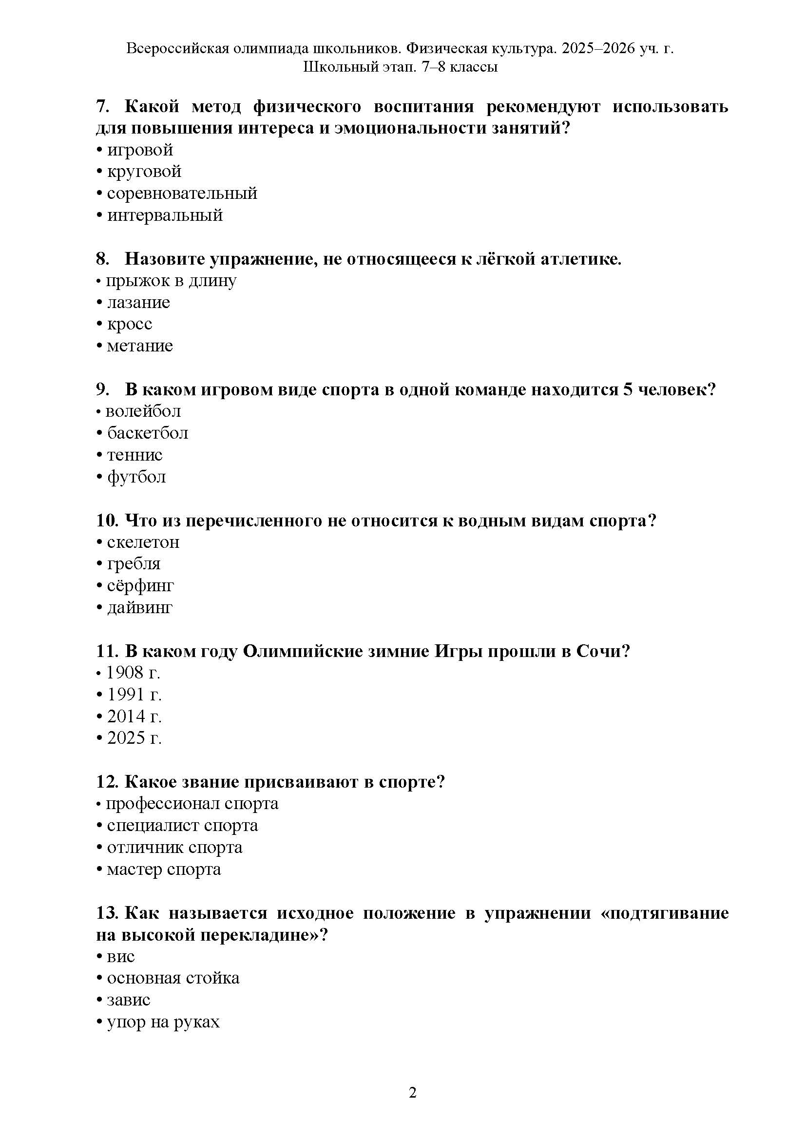 Всероссийская олимпиада школьников (ВсОШ) школьного этапа по Физической культуре. Официальные задания, ответы и решения для 7 (седьмого) класса (задания и ответы)