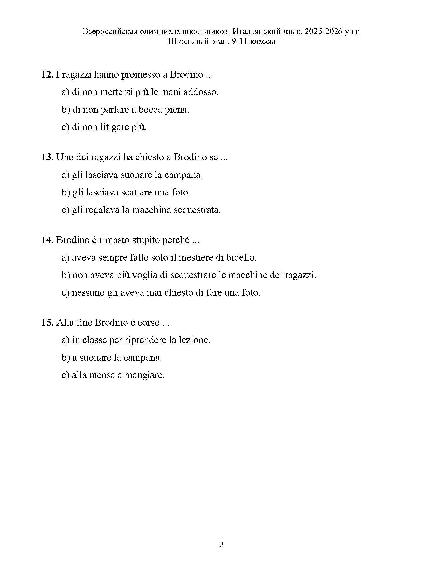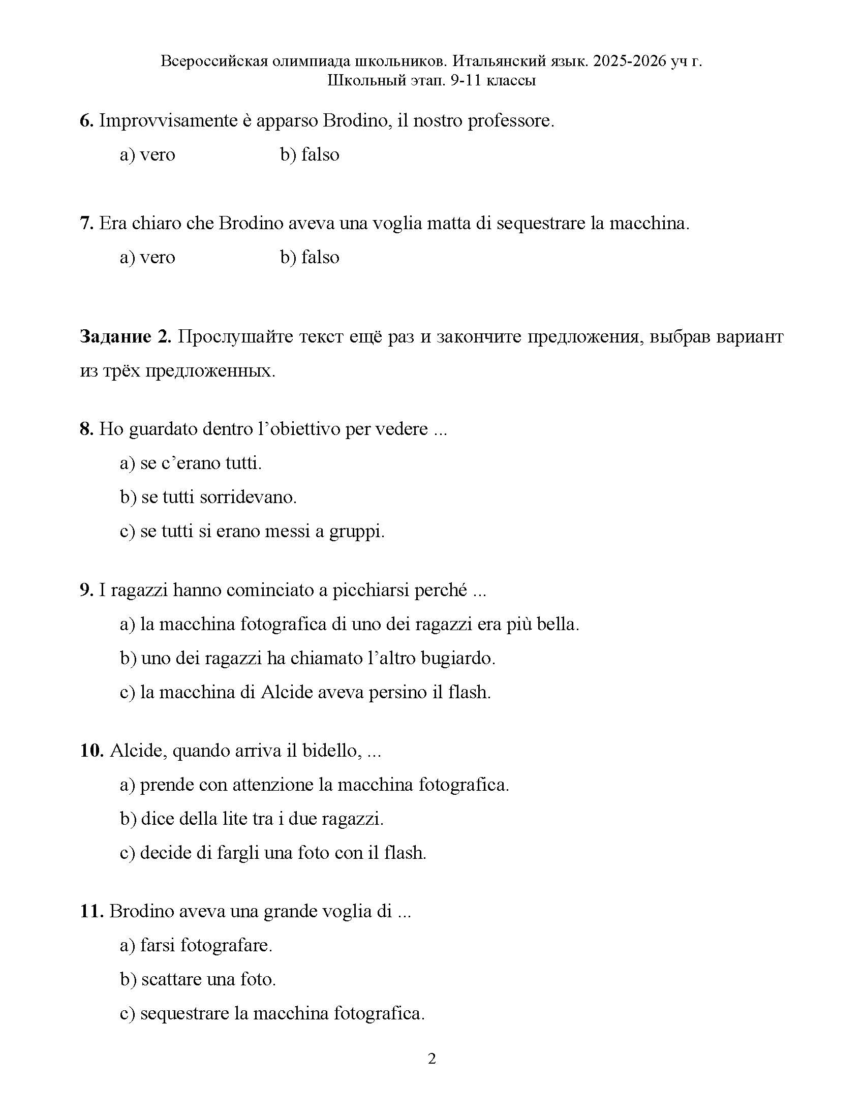 Всероссийская олимпиада школьников (ВсОШ) школьного этапа по Итальянскому языку. Официальные задания, ответы и решения для 10 (десятого) класса (задания и ответы)